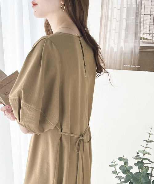 後ろで結ぶとよりリラックス感のあるAラインシルエットに。