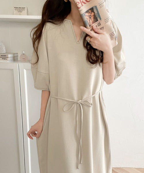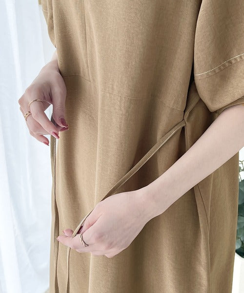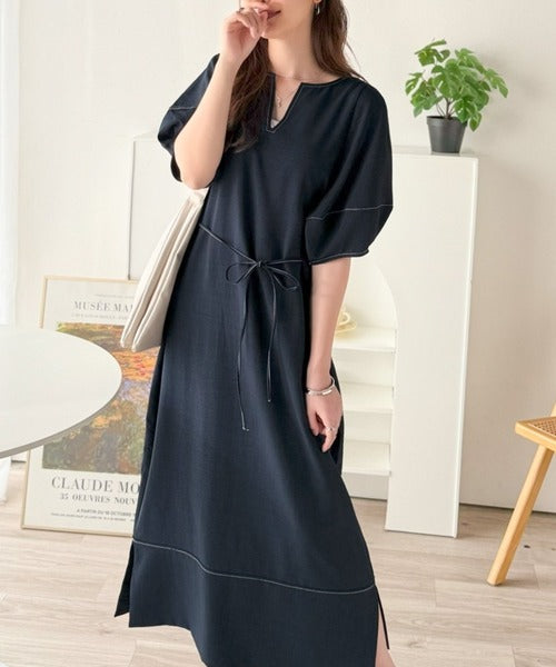 配色ステッチがアクセントの、大人キレイめカジュアルワンピース。