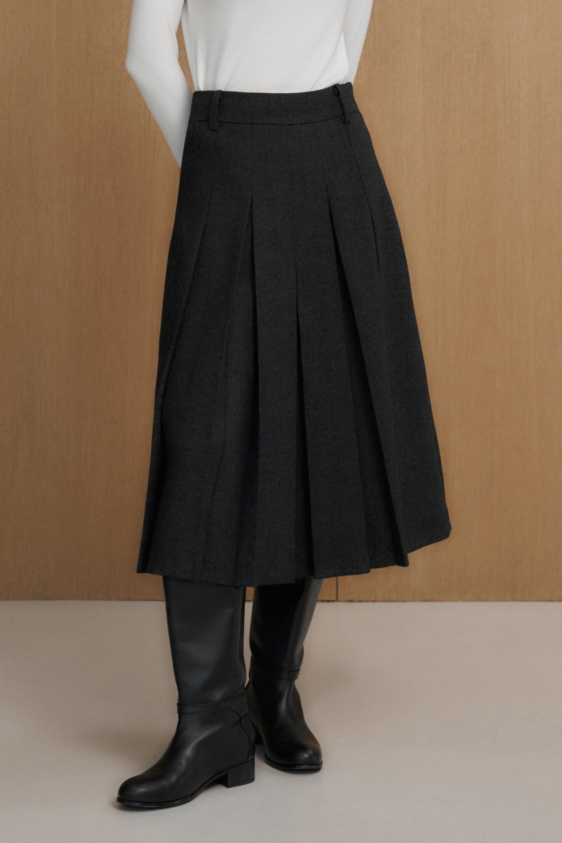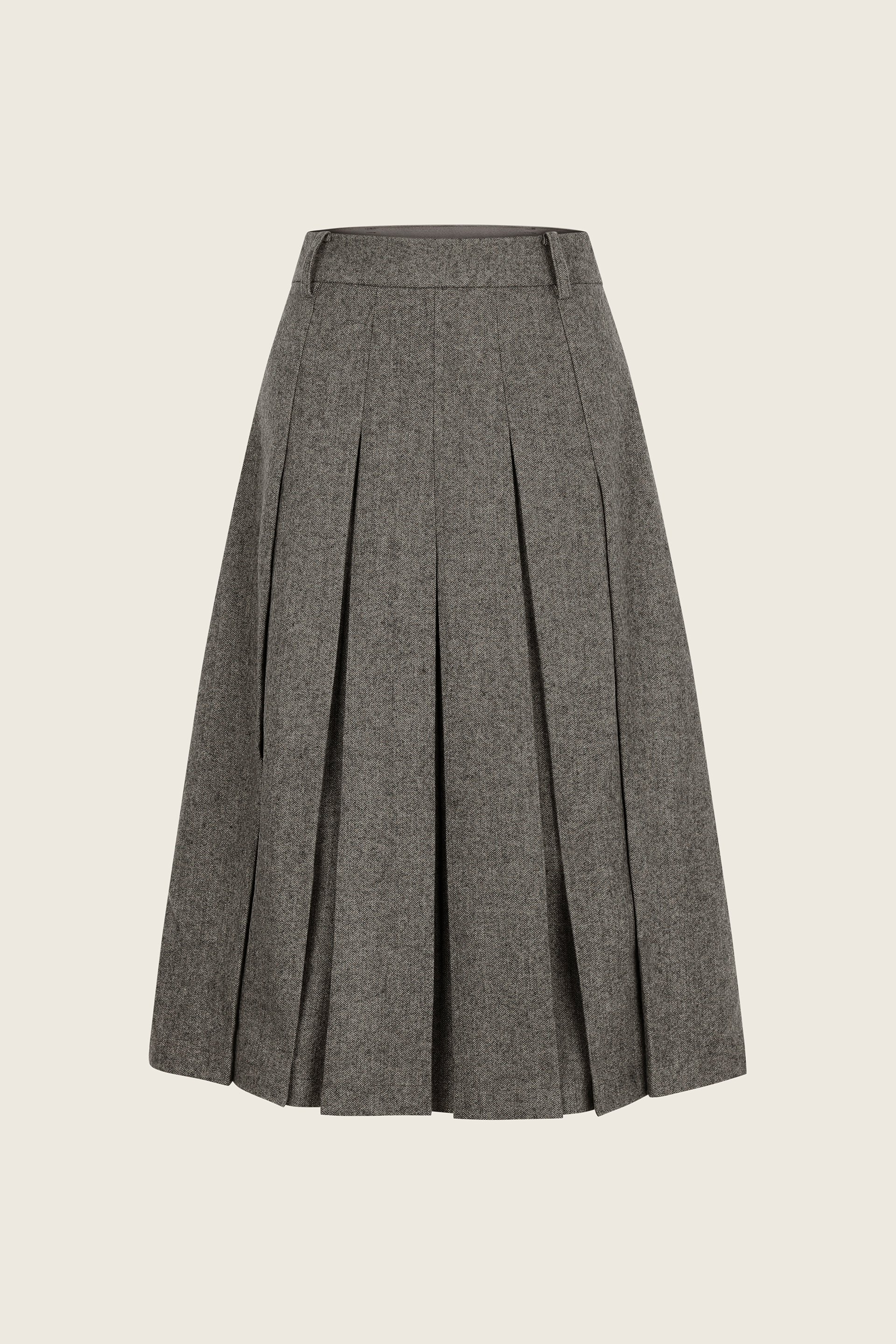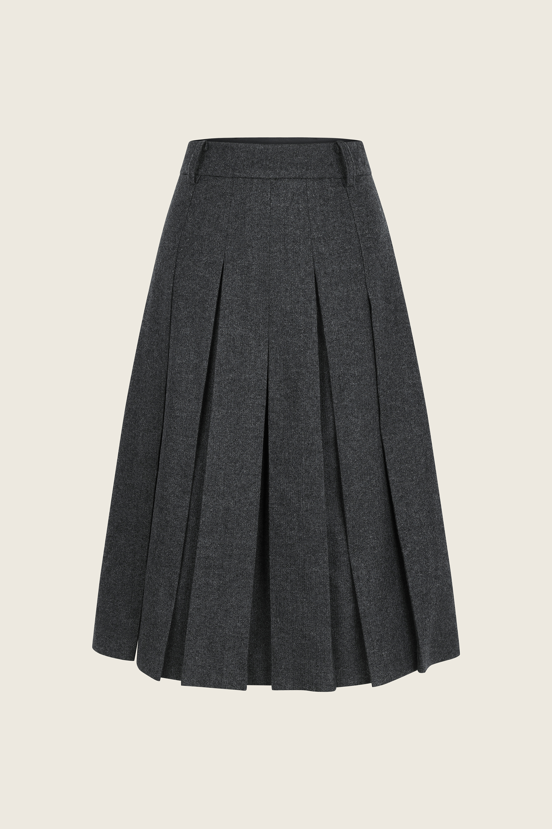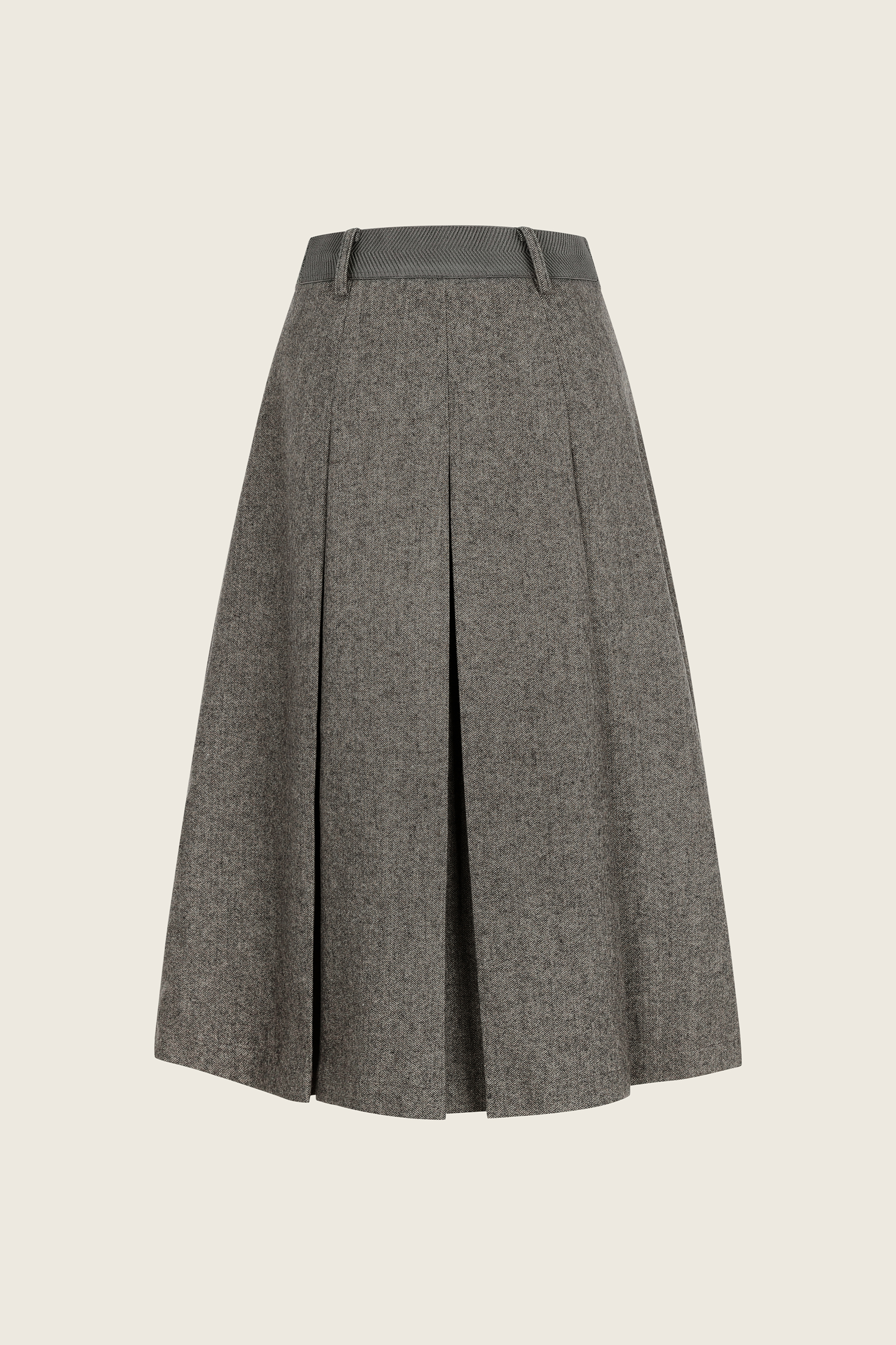 ウール混紡/ヘリンボーンパターン・バックゴム仕様/サイドジッパー&フックの二重留め/サイドスリット/裏地あり
