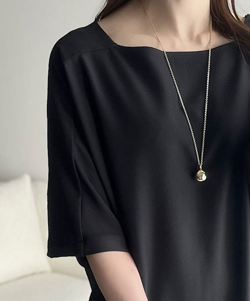 スクエアネックラインで顔周りがすっきりとして見えます。