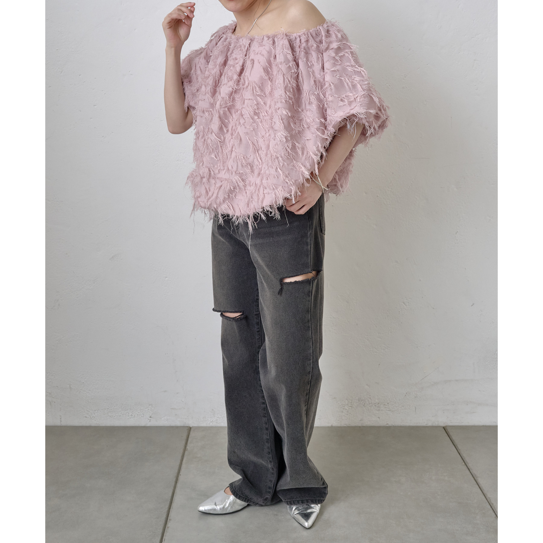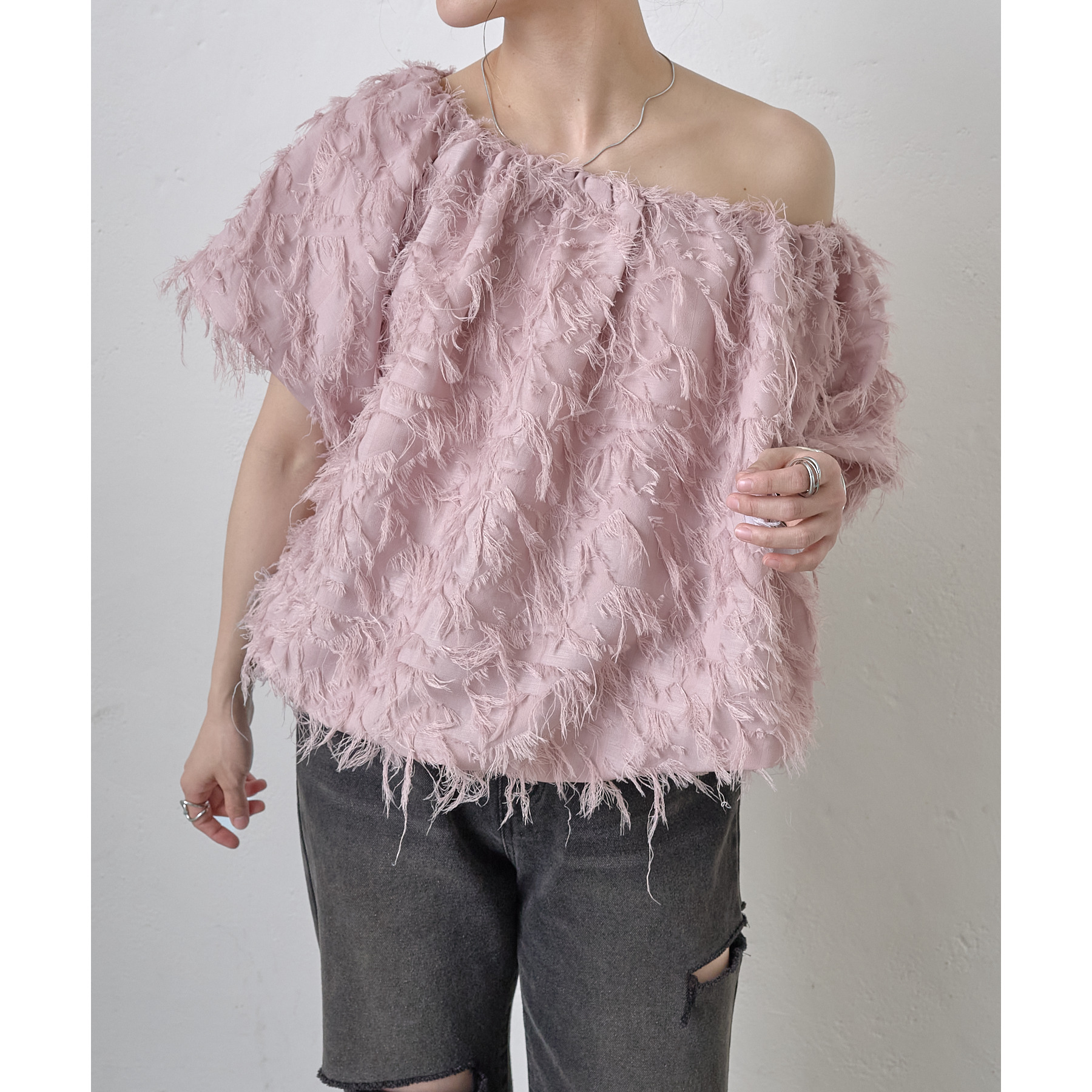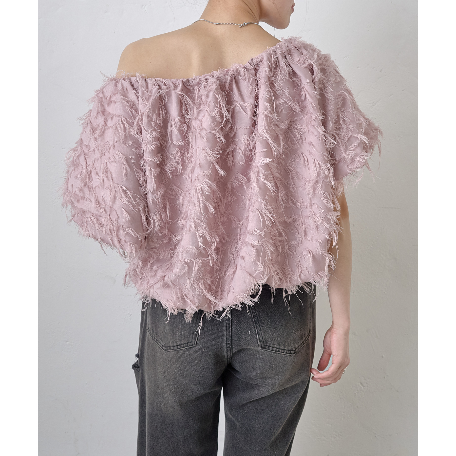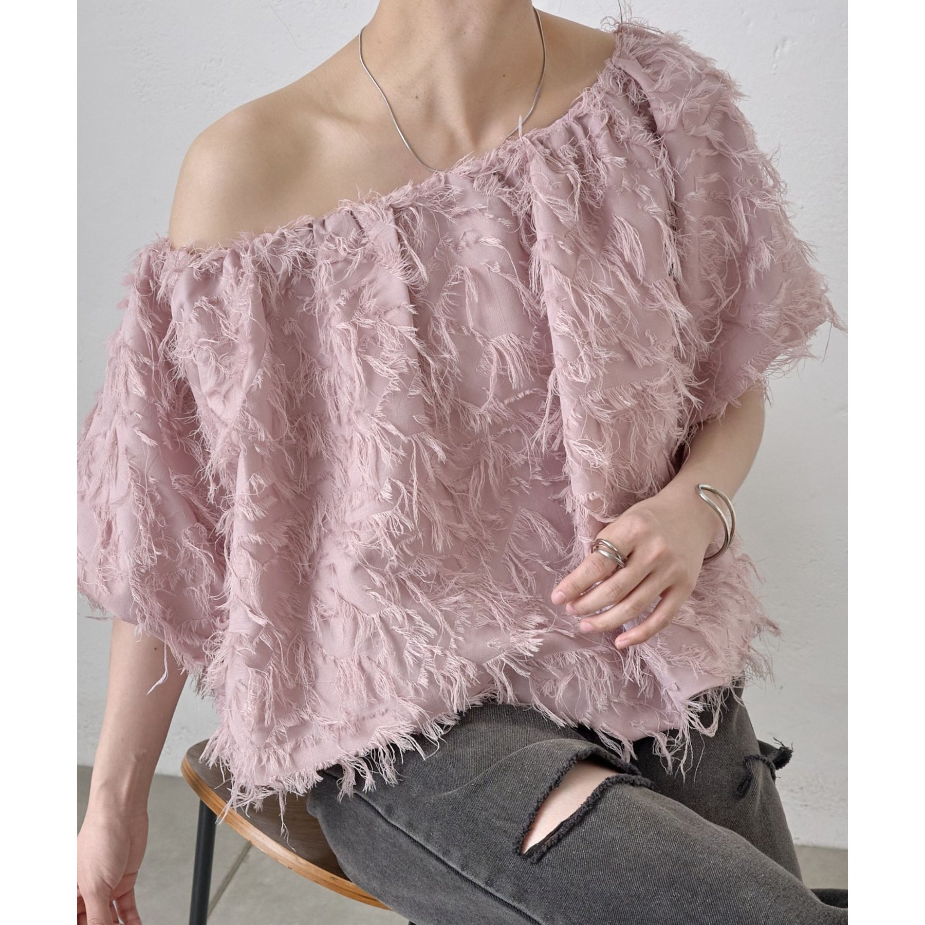 【ヘルシーな肌見せと繊細なフリンジが華やかなオフショルトップス】