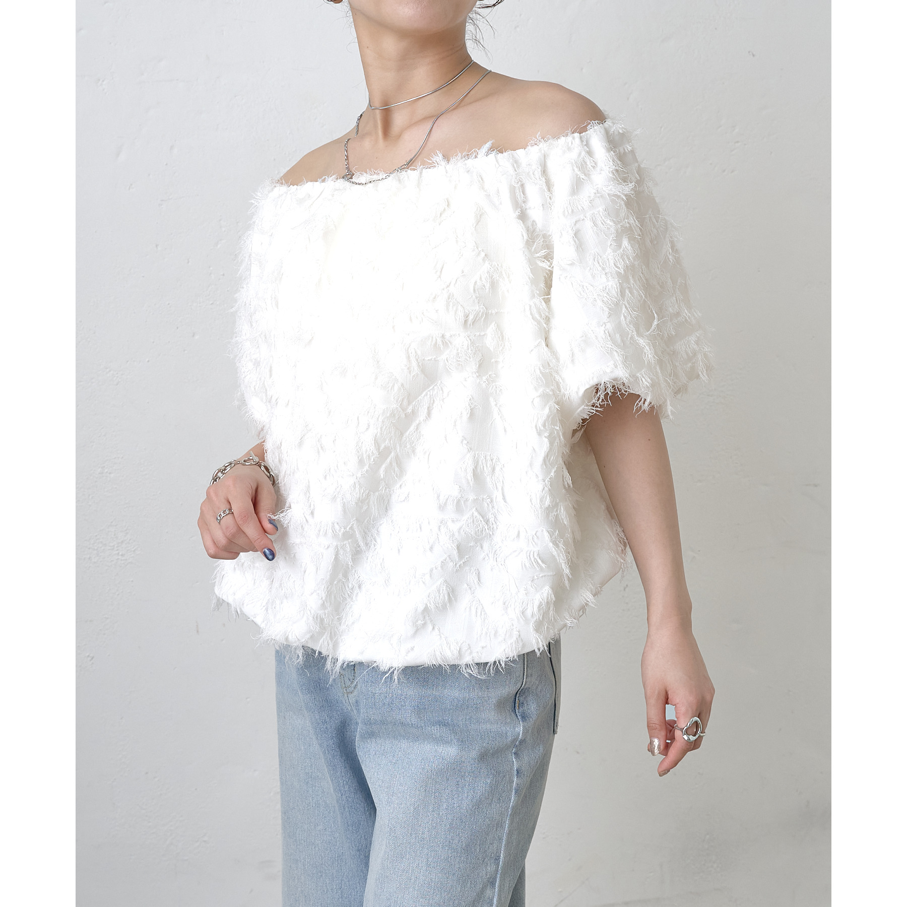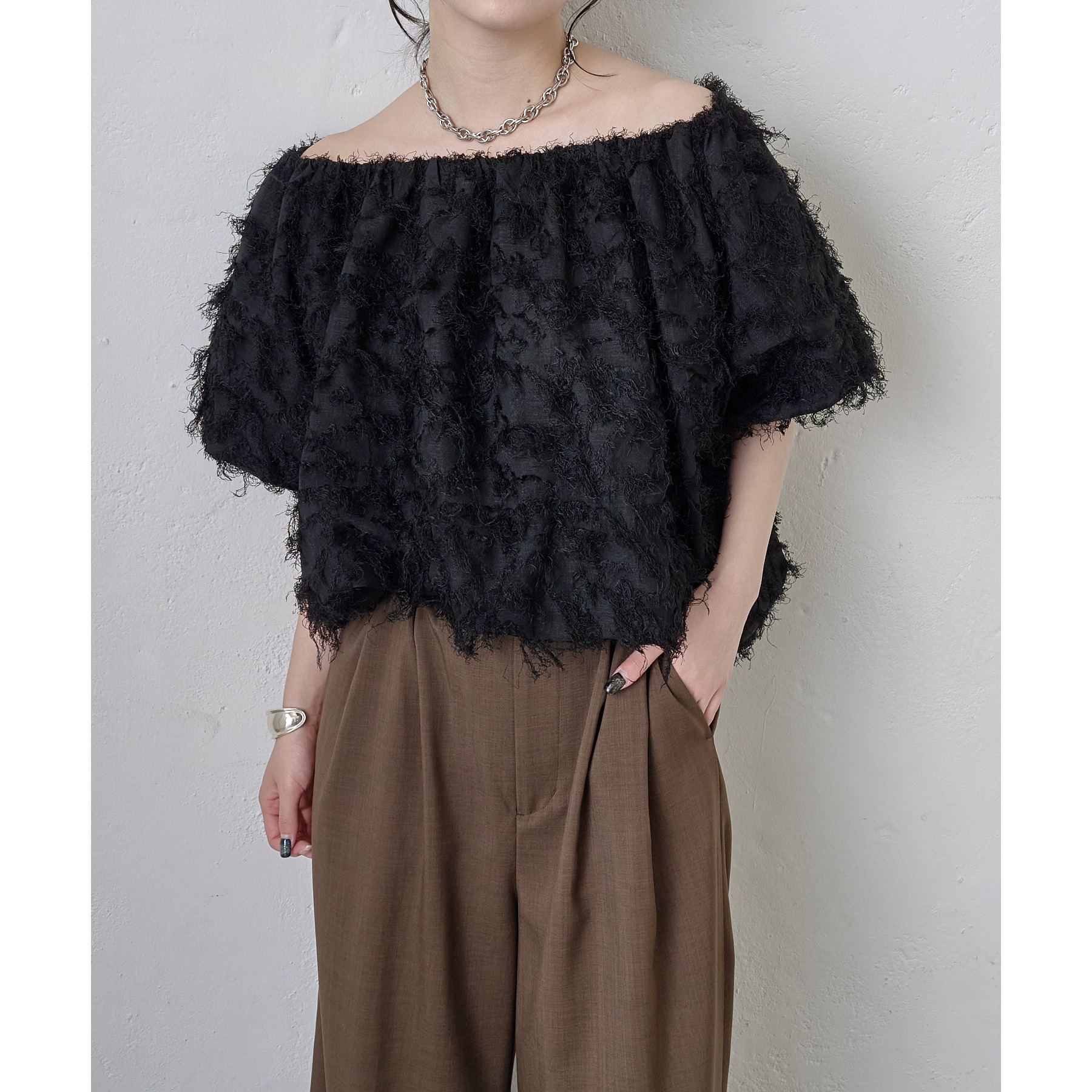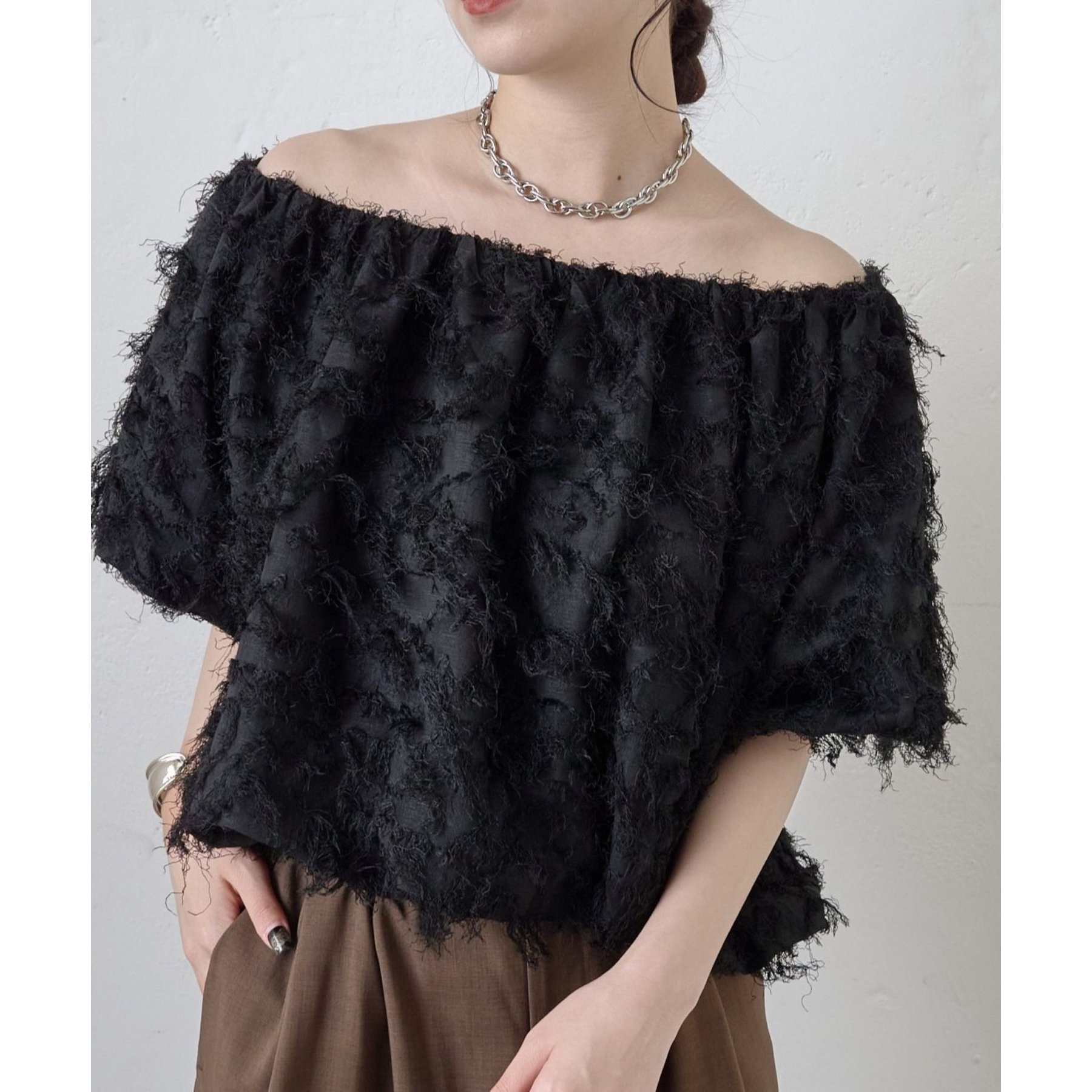 ・CWA1051304A0009 フリンジジャガードオフショルトップス