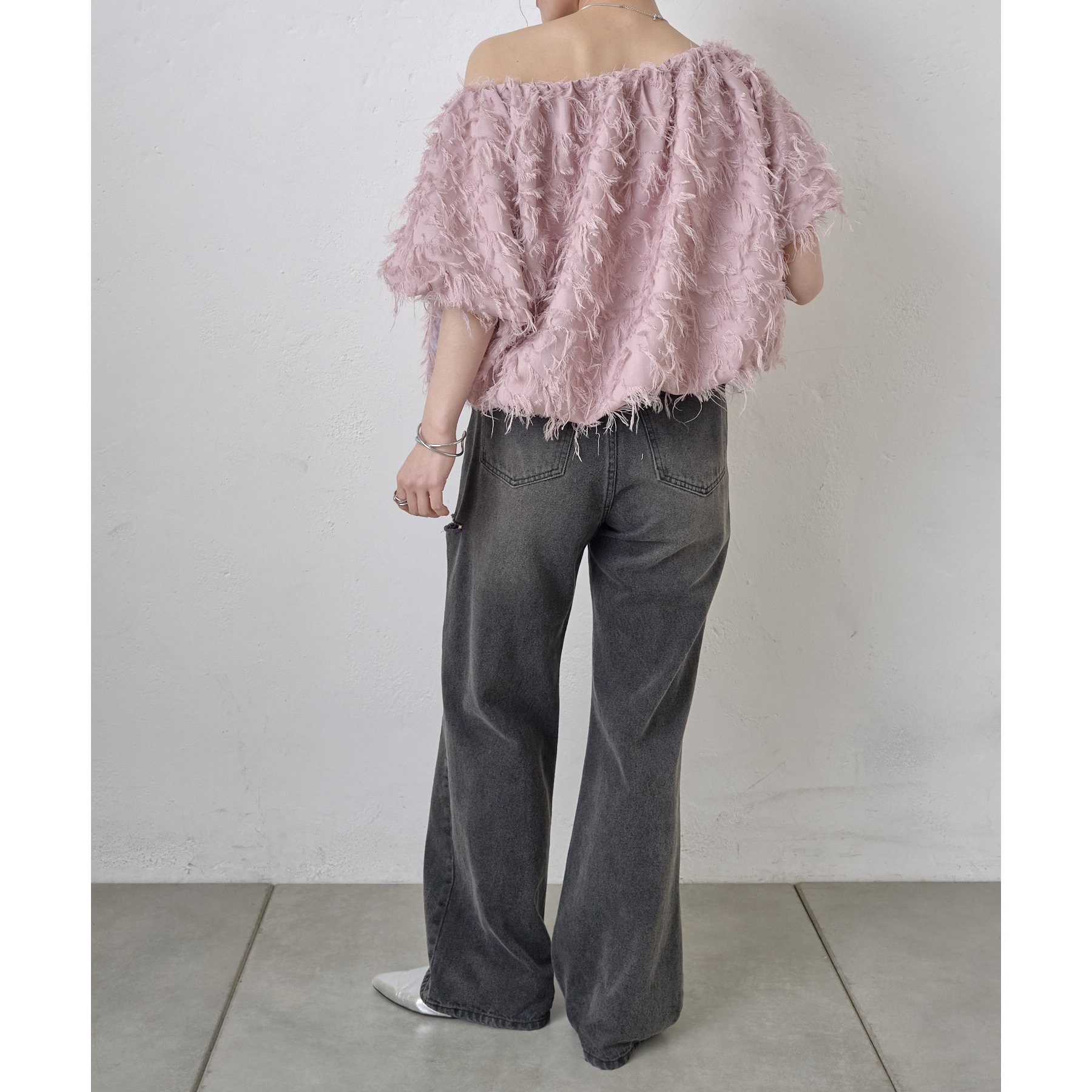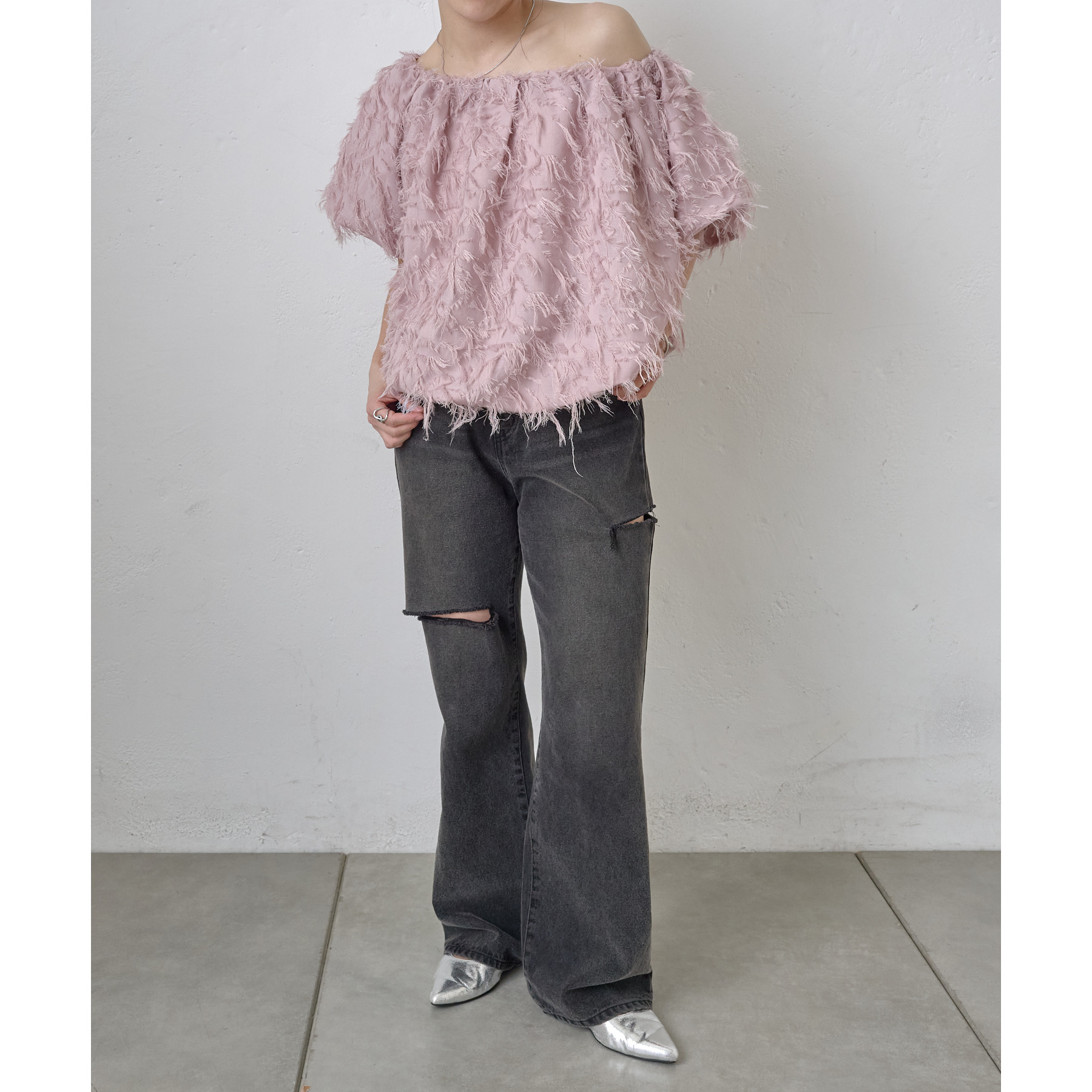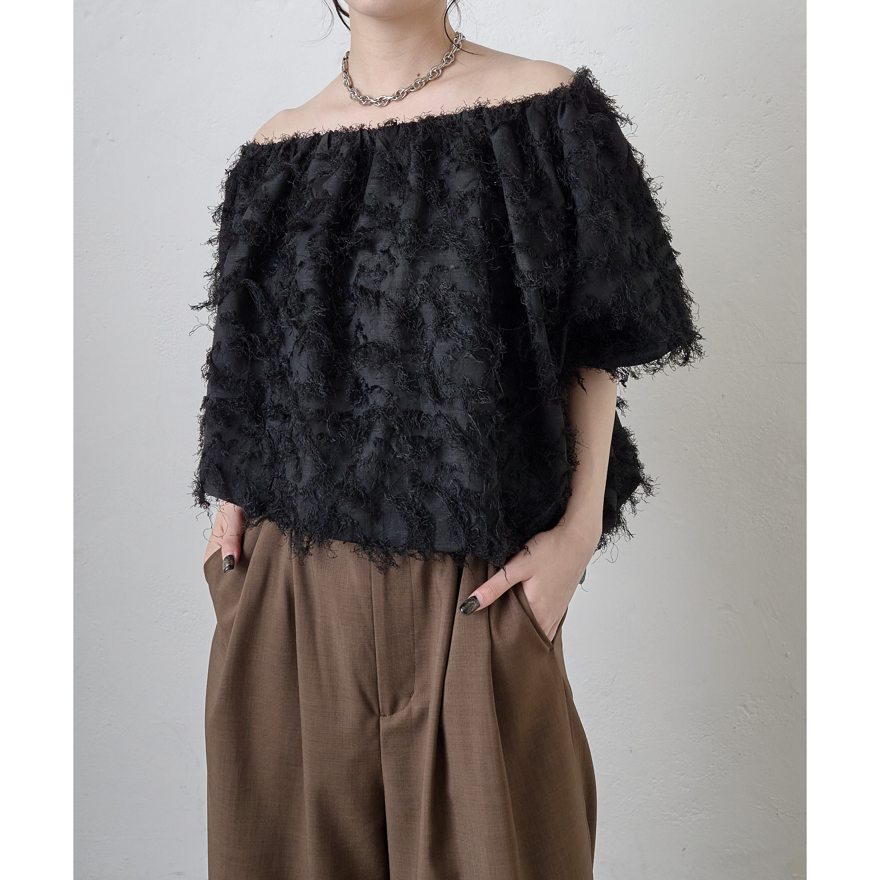 ・CWA1051304A0009 フリンジジャガードオフショルトップス