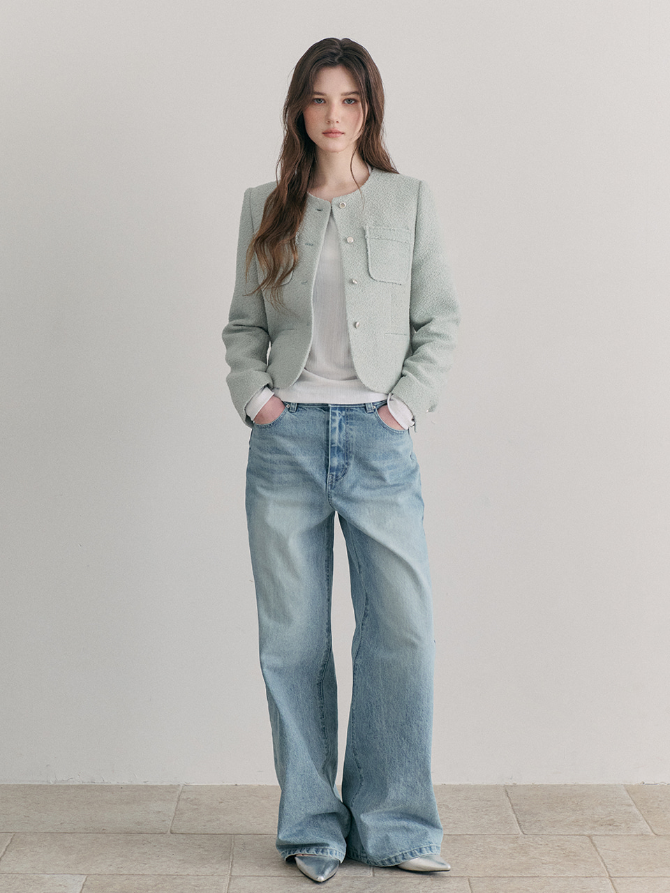Welt Fringe Tweed Jacket, Mint