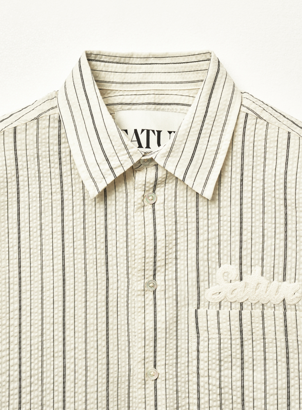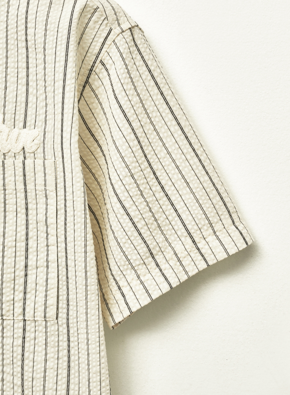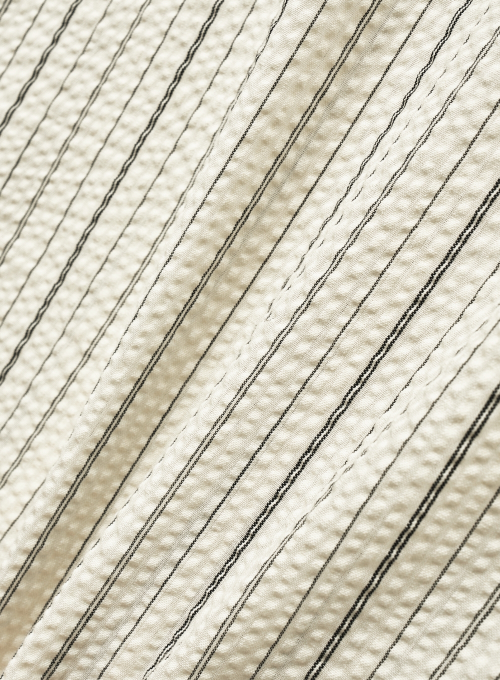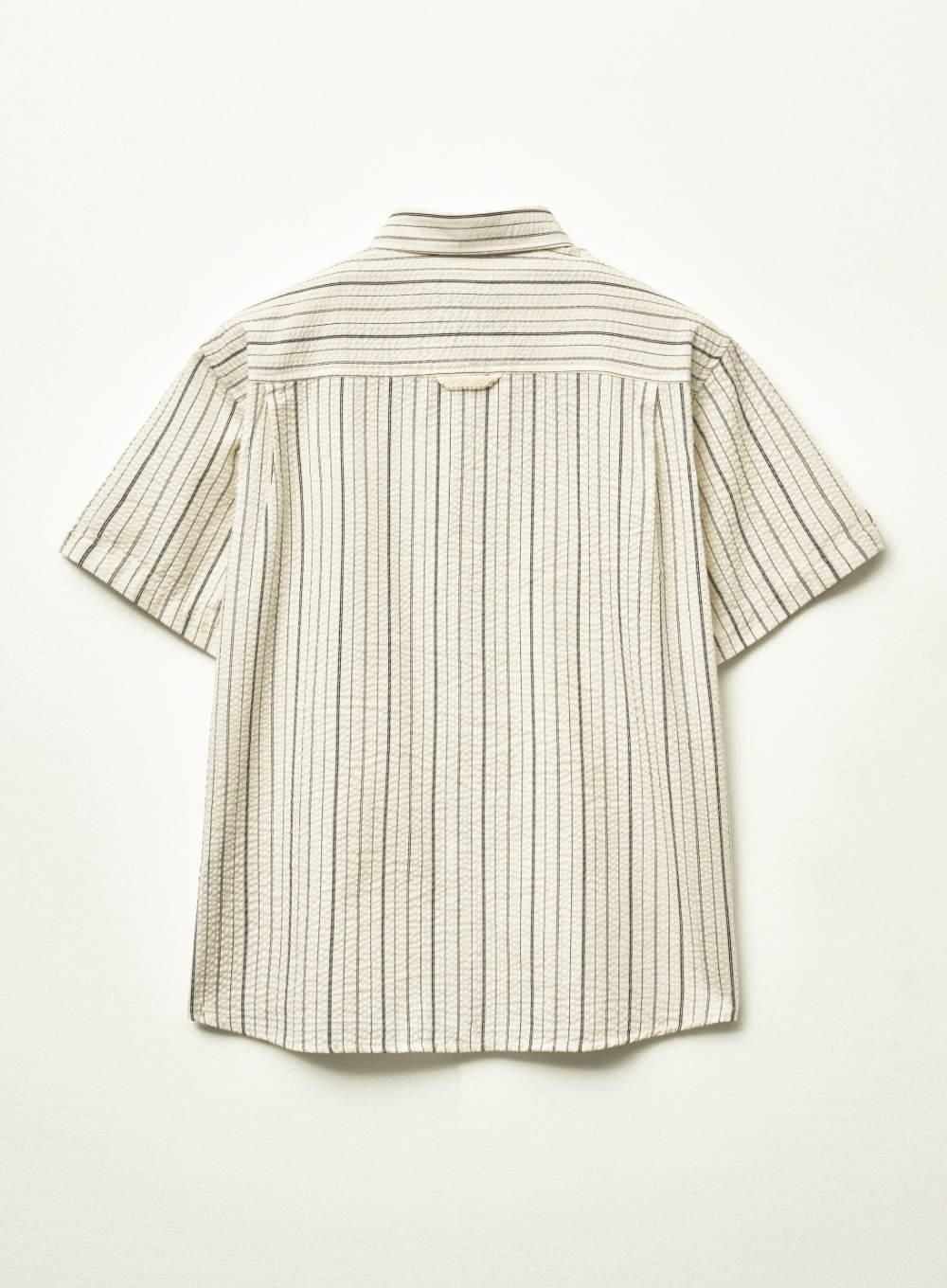 Natural Seersucker Stripe Half Shirt - Black