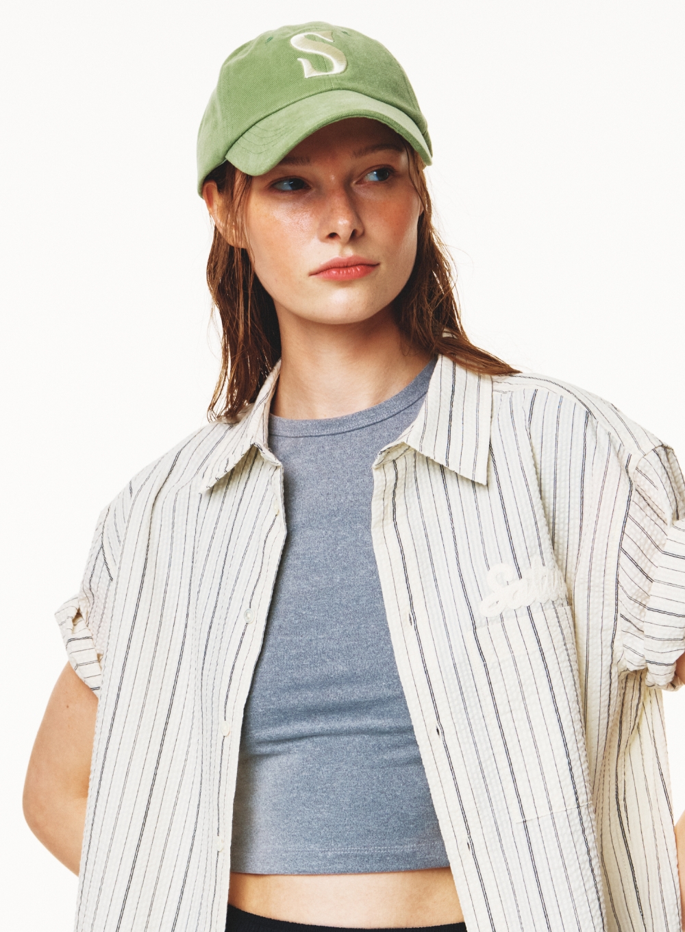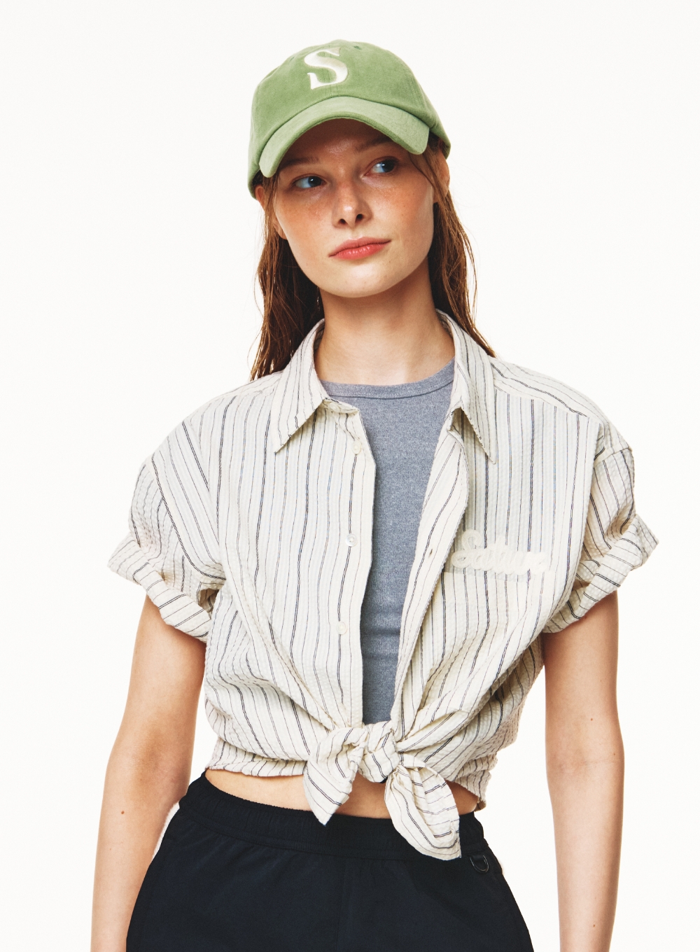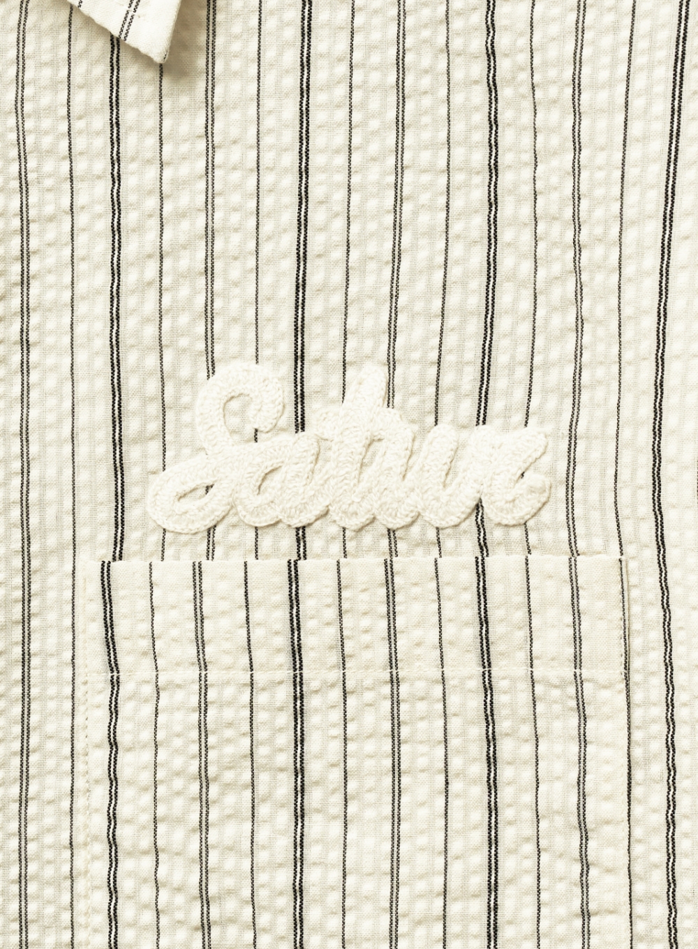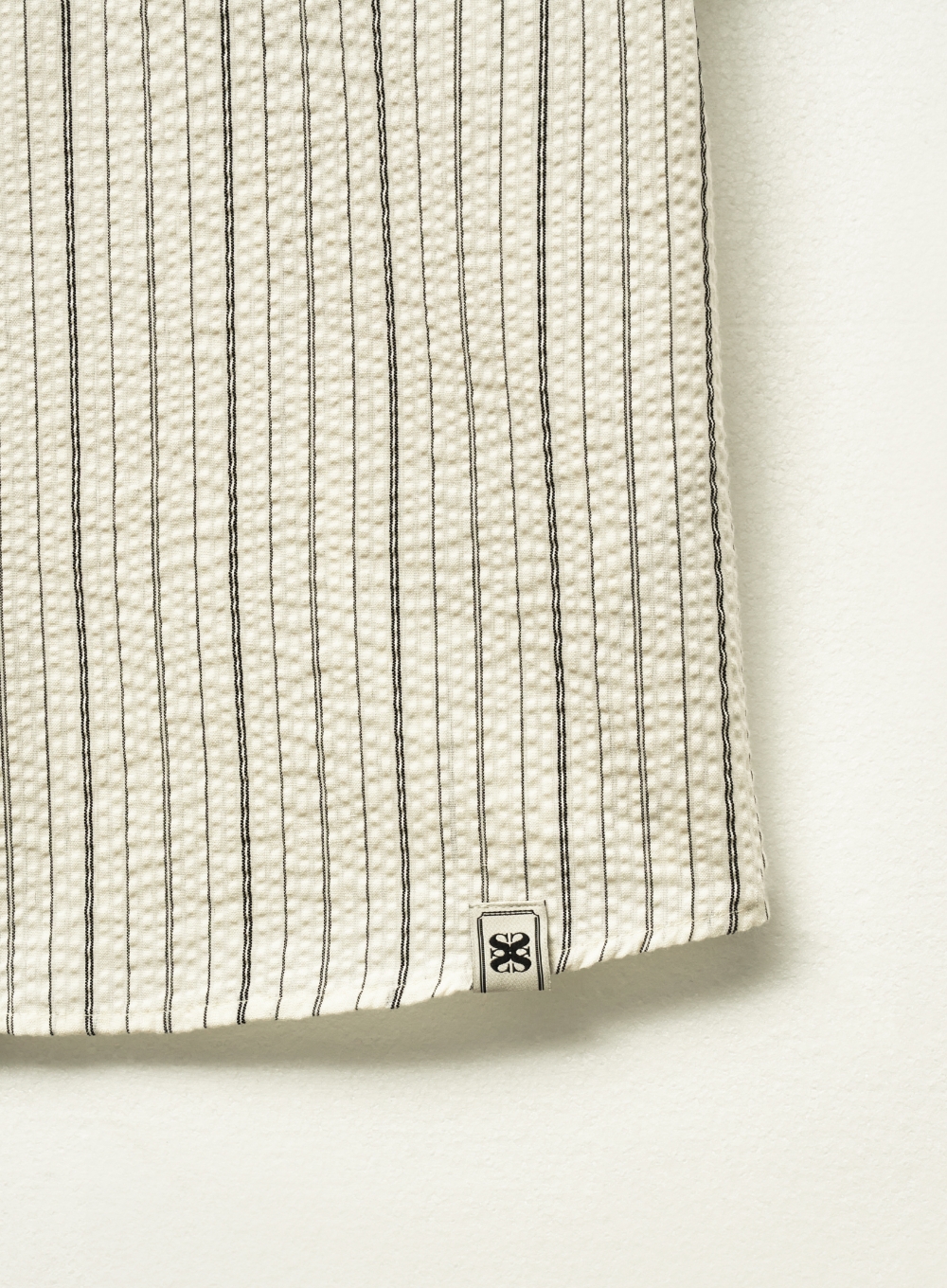Natural Seersucker Stripe Half Shirt - Black