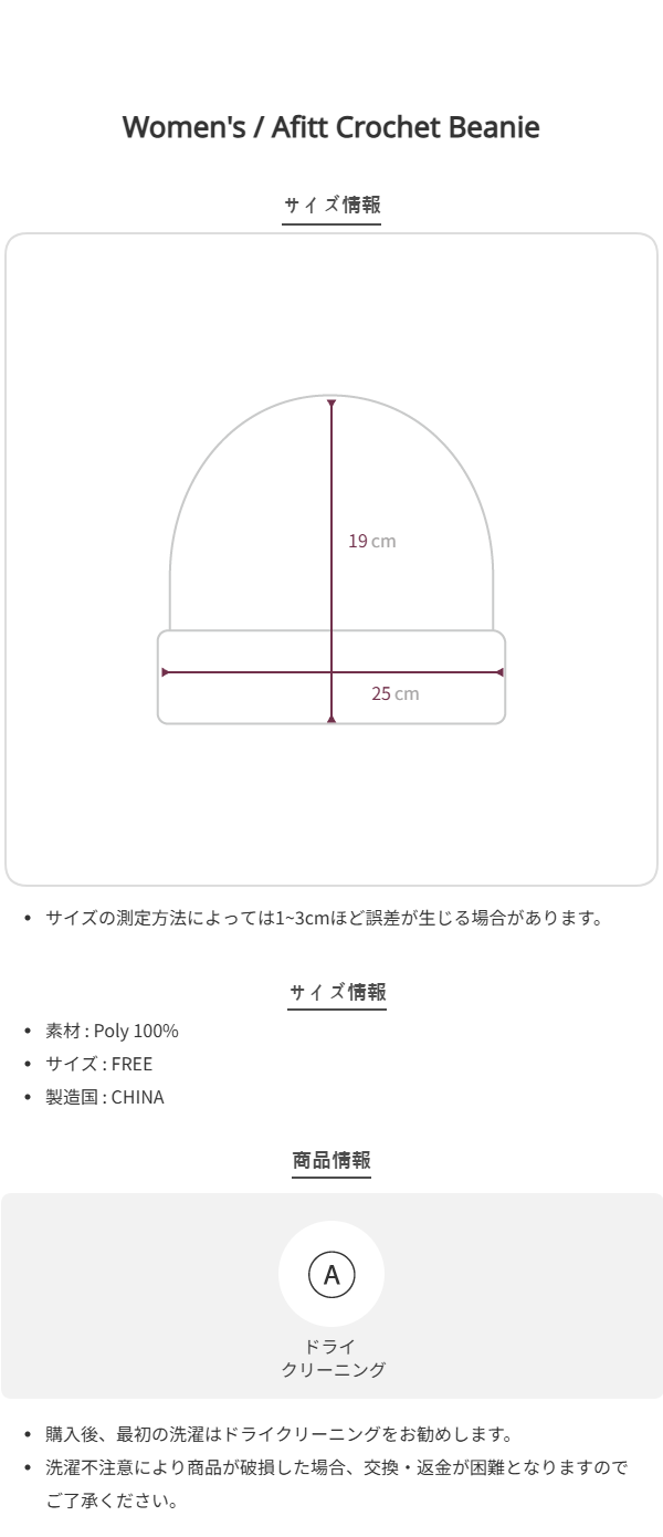 HEIGHT 174cm / BUST 83cm / WAIST 59cm / HIP 89cm