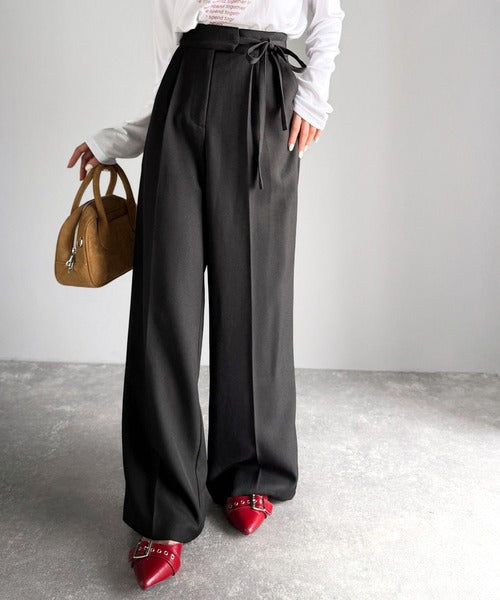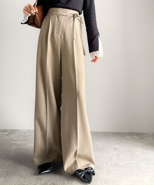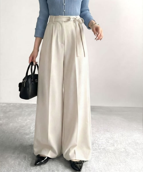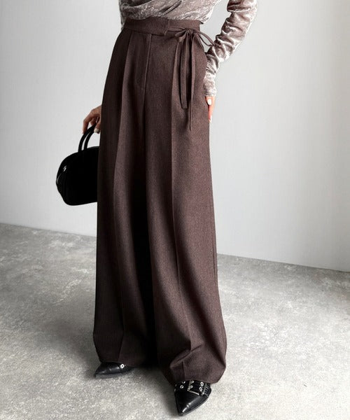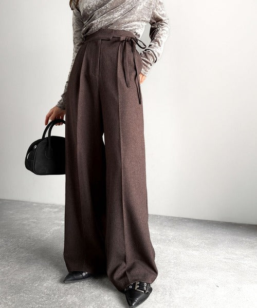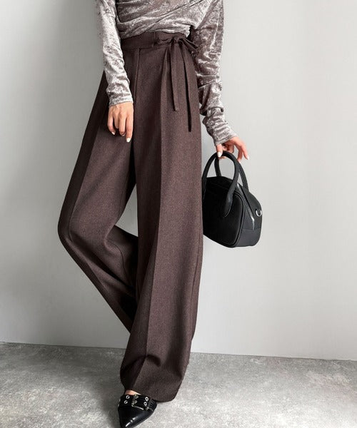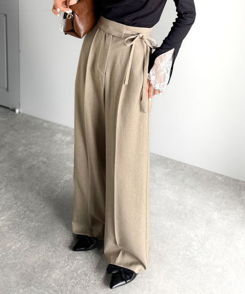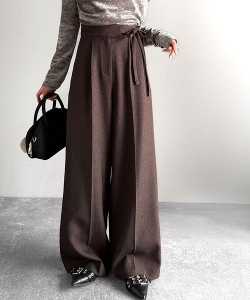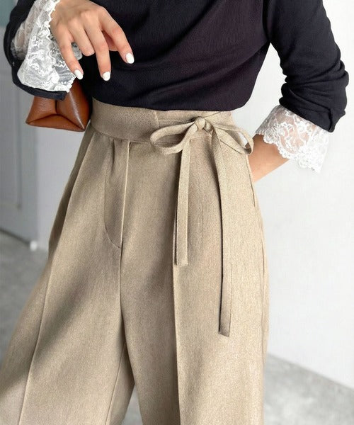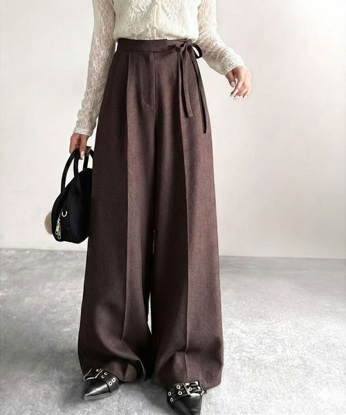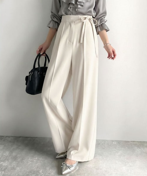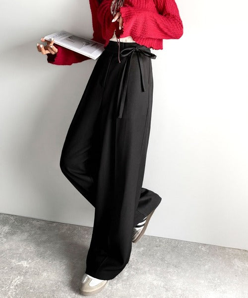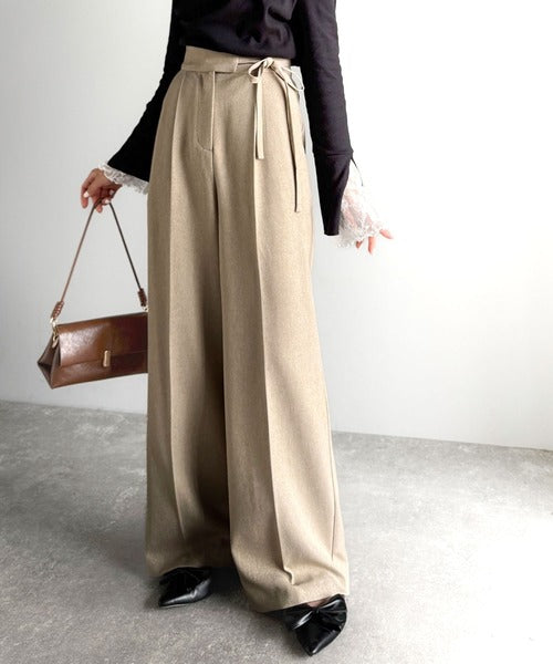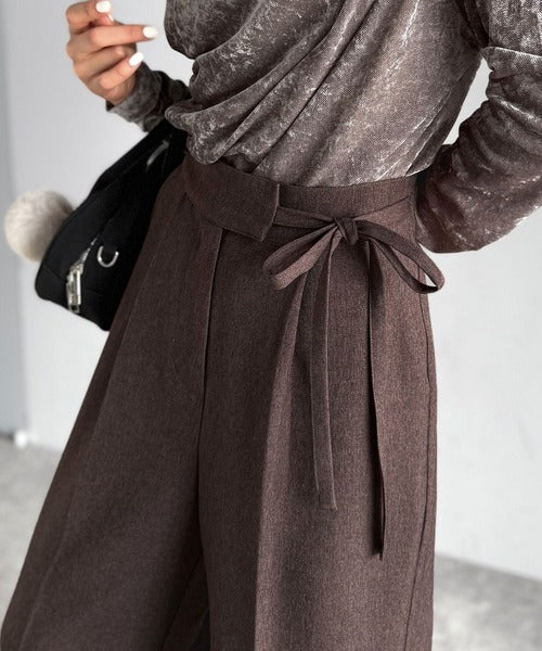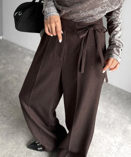【mily bilet】キレイ目ガーリーの大定番◎コーデに映えるこっくりカラー♪リボン使いワイドスラックス mi1329033