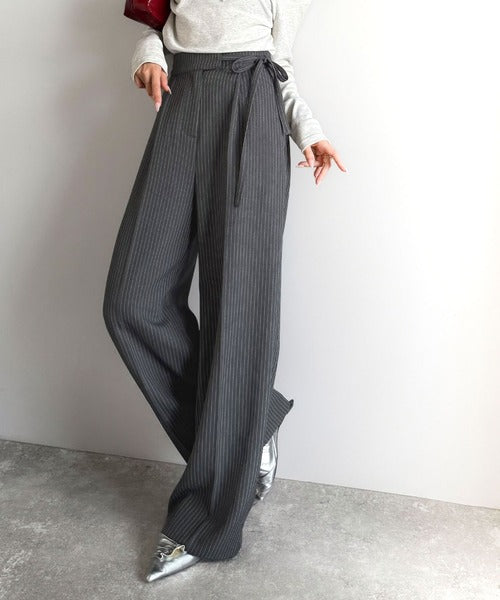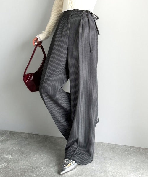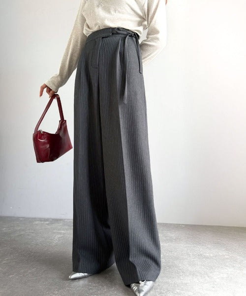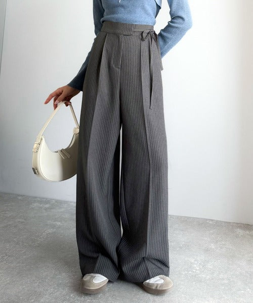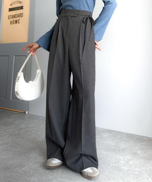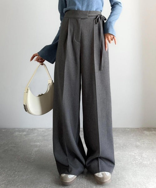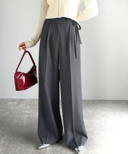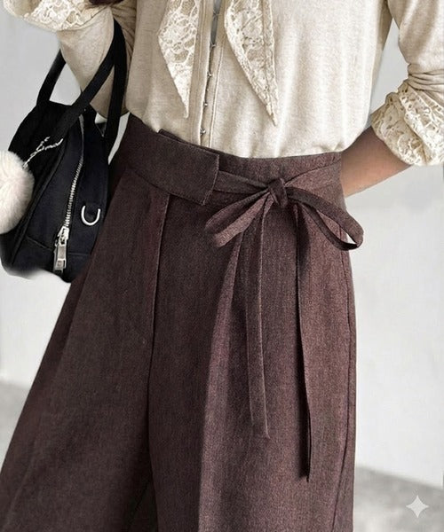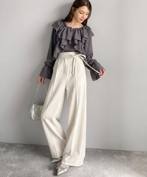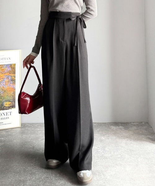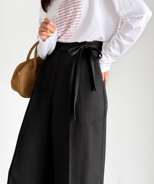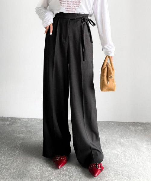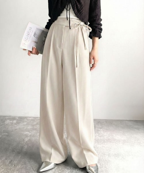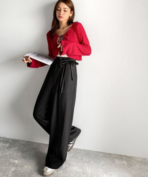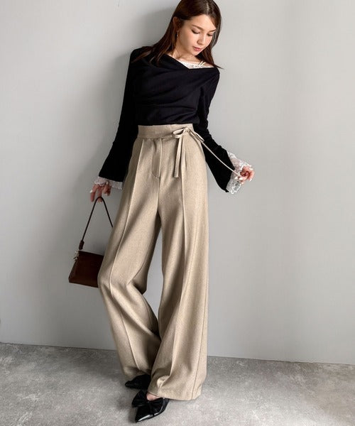 【mily bilet】キレイ目ガーリーの大定番◎コーデに映えるこっくりカラー♪リボン使いワイドスラックス mi1329033