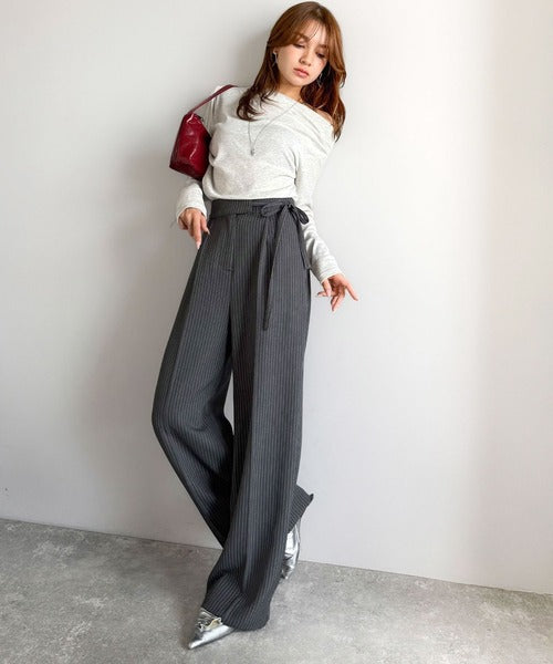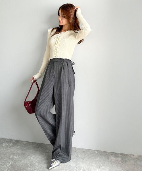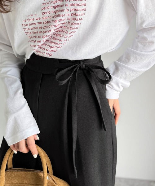 ウエスト部分のリボンが可愛いアクセントになり、トップスインのスタイルにもぴったり◎