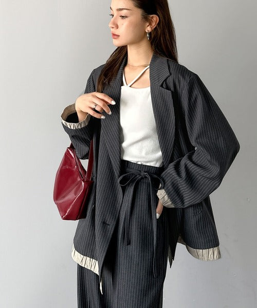 【素材】 【ブラック、ベージュ、ブラウン】ポリエステル100% 【チャコールストライプ】ポリエステル97%、レーヨン3% 【アイボリー】表地:ポリエステル100% 裏地:ポリエステル96%、ポリウレタン4%