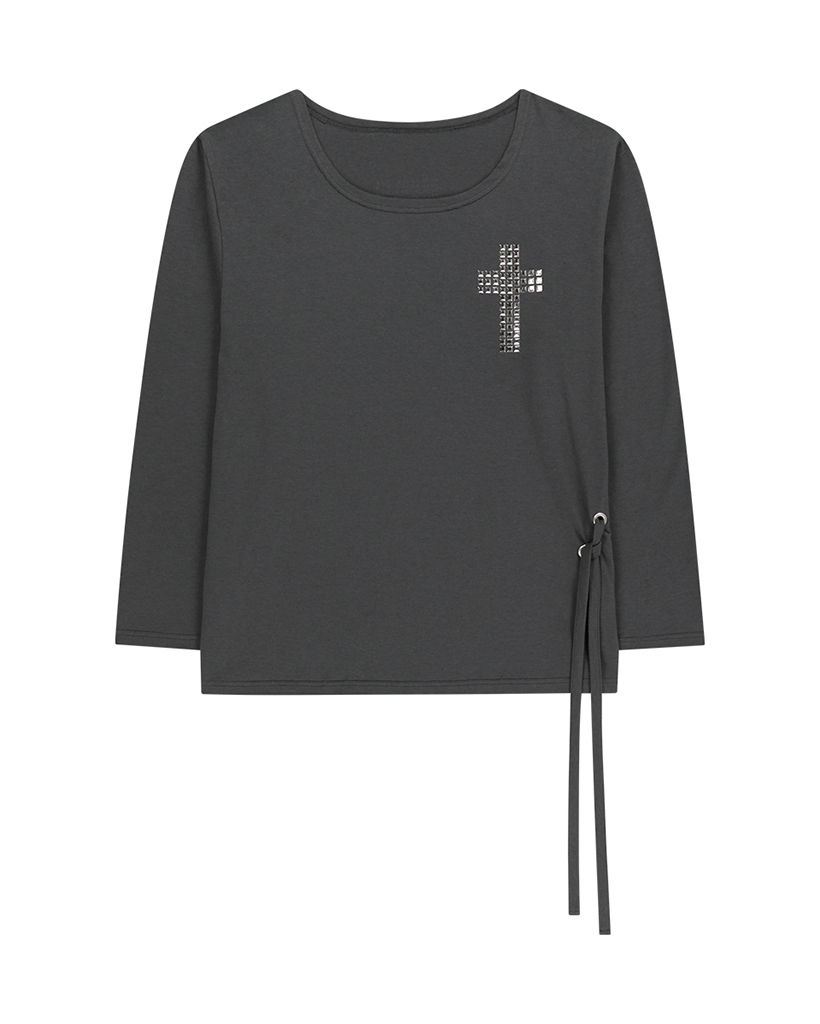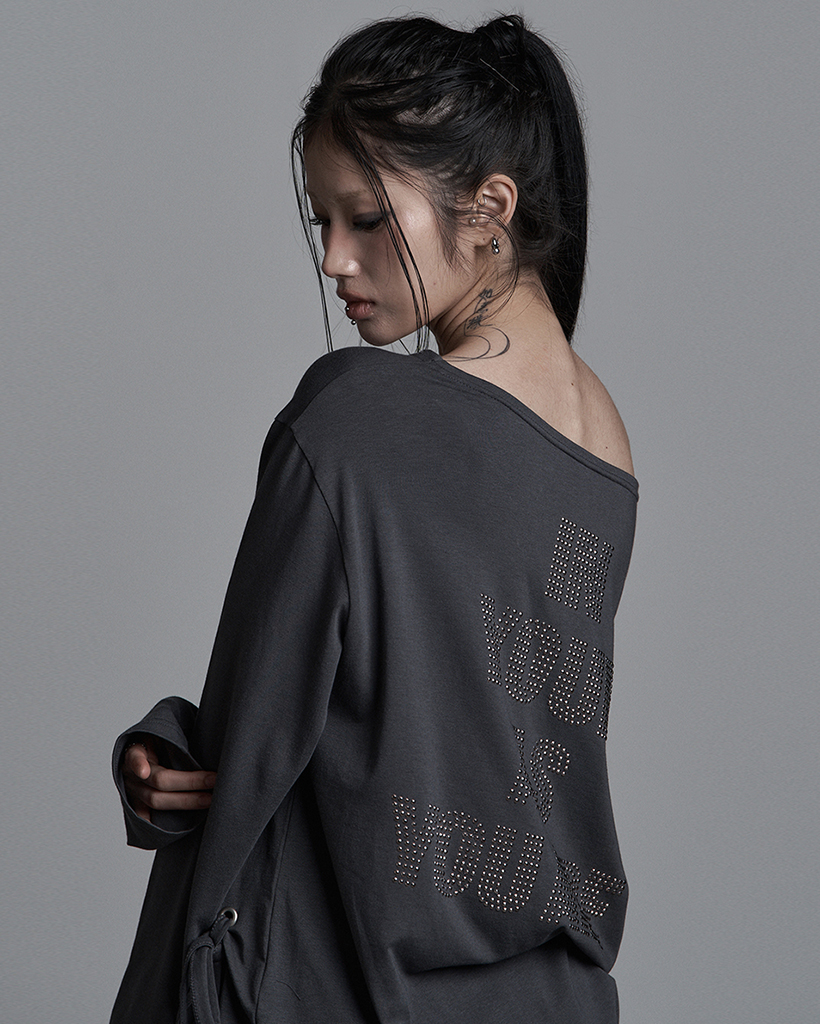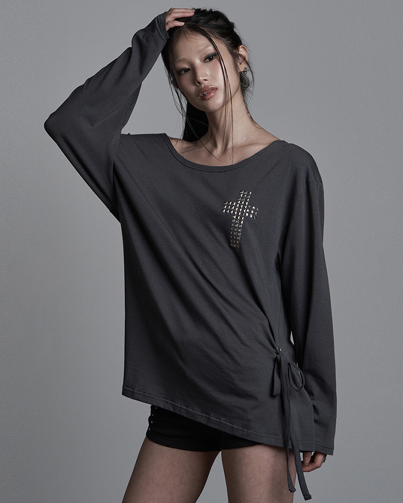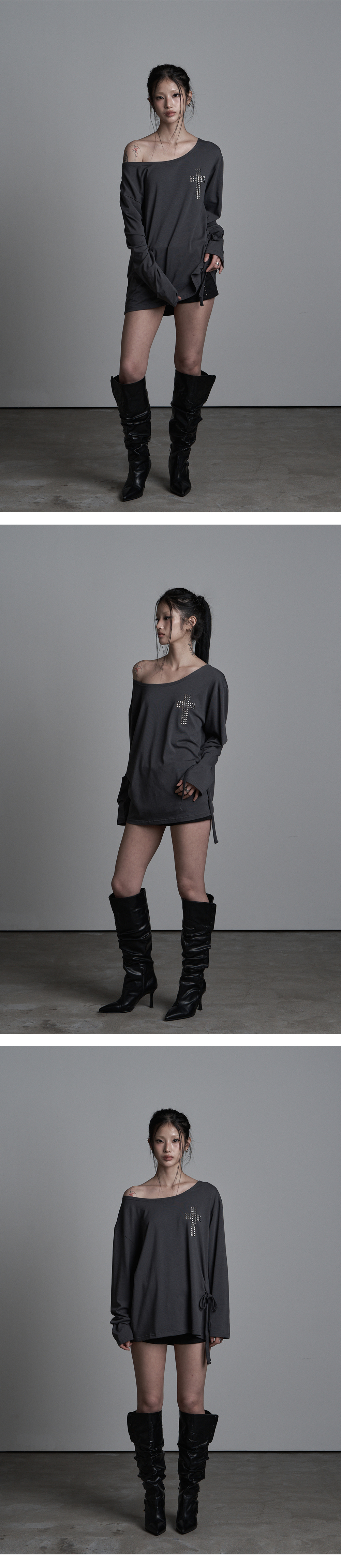 CROSS LINE OFF-SHOULDER T-SHIRT CHARCOAL