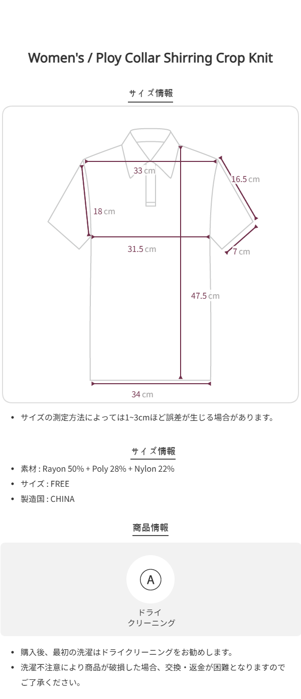 HEIGHT 174cm / BUST 83cm / WAIST 59cm / HIP 89cm
