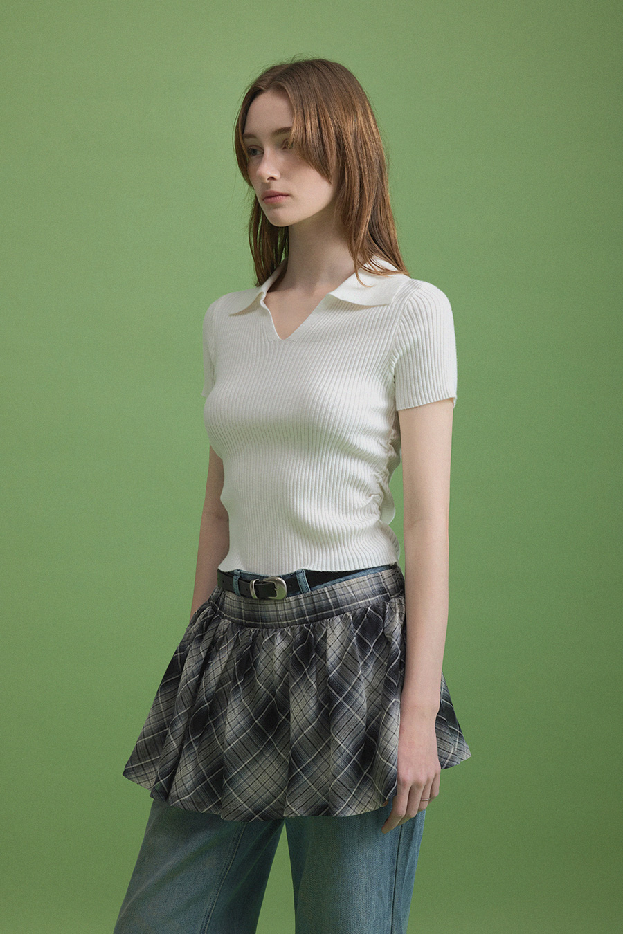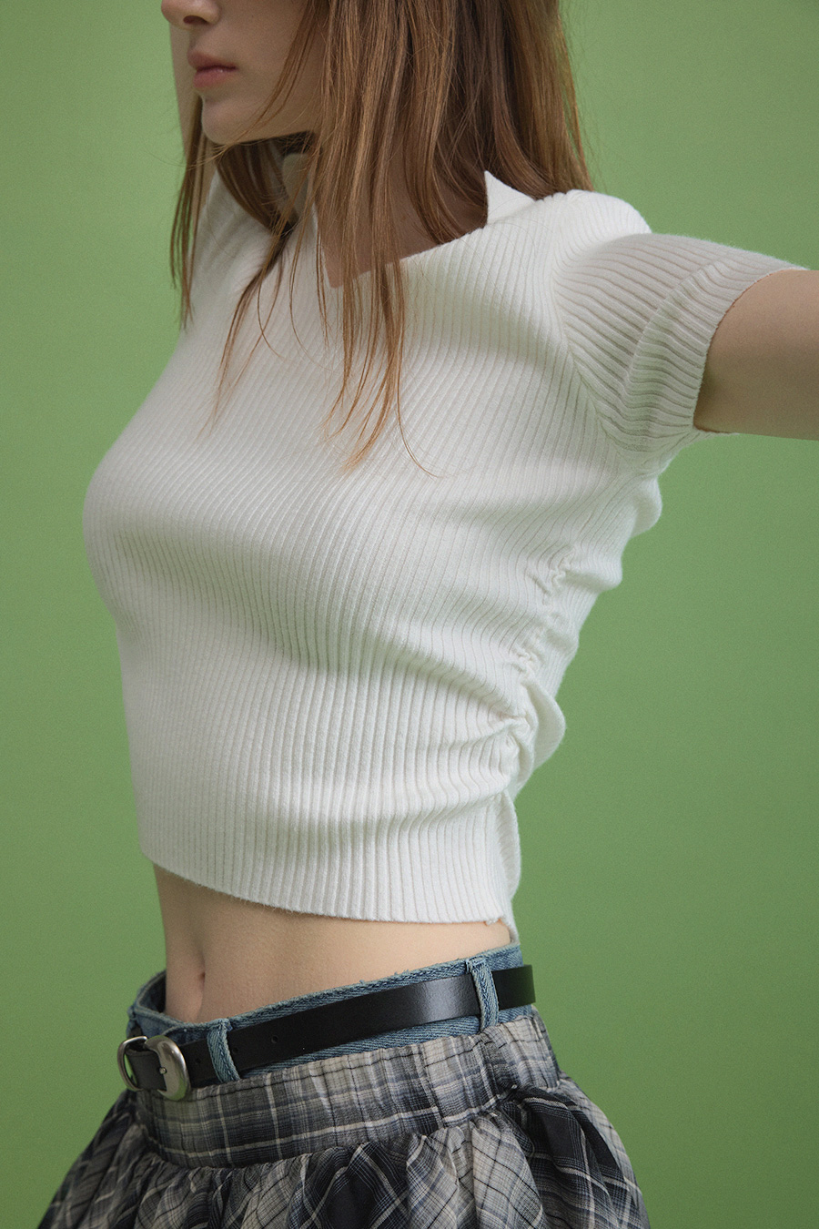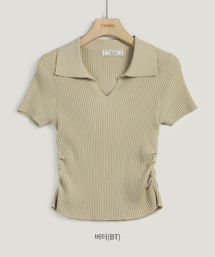 [Influencer Pick] Ploy Collar Shirring Crop Knit
