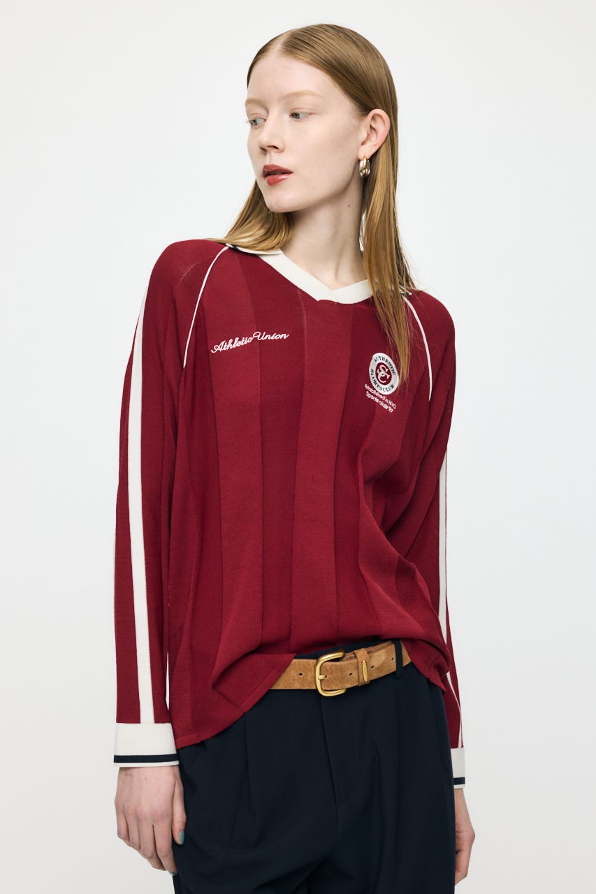 ゲームシャツのデザインを、ニットで軽やかで上品に仕上げた1枚。