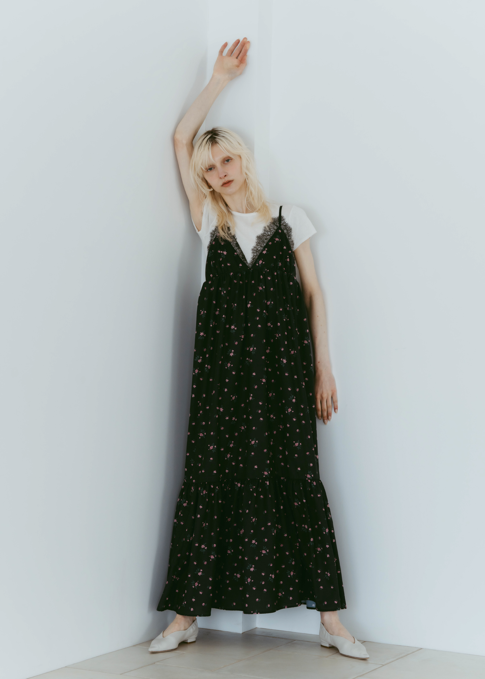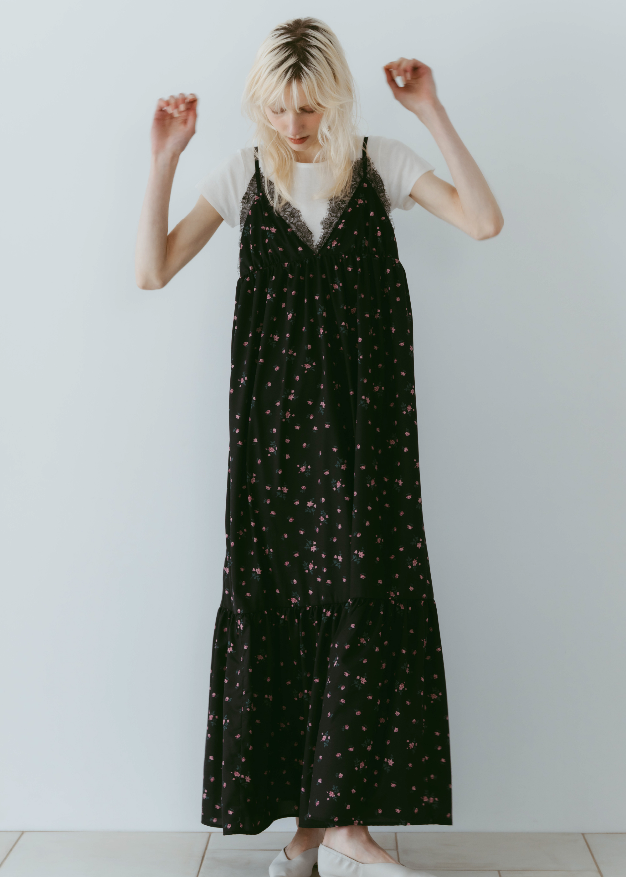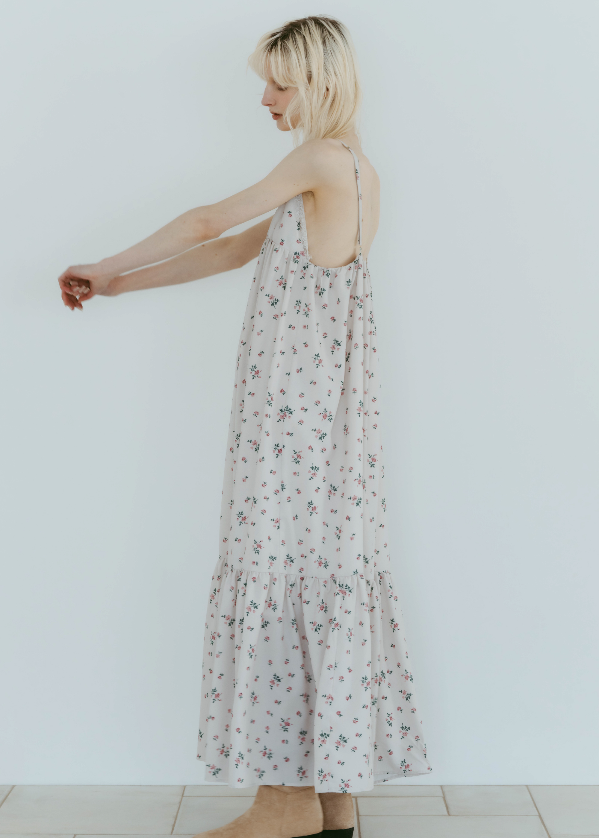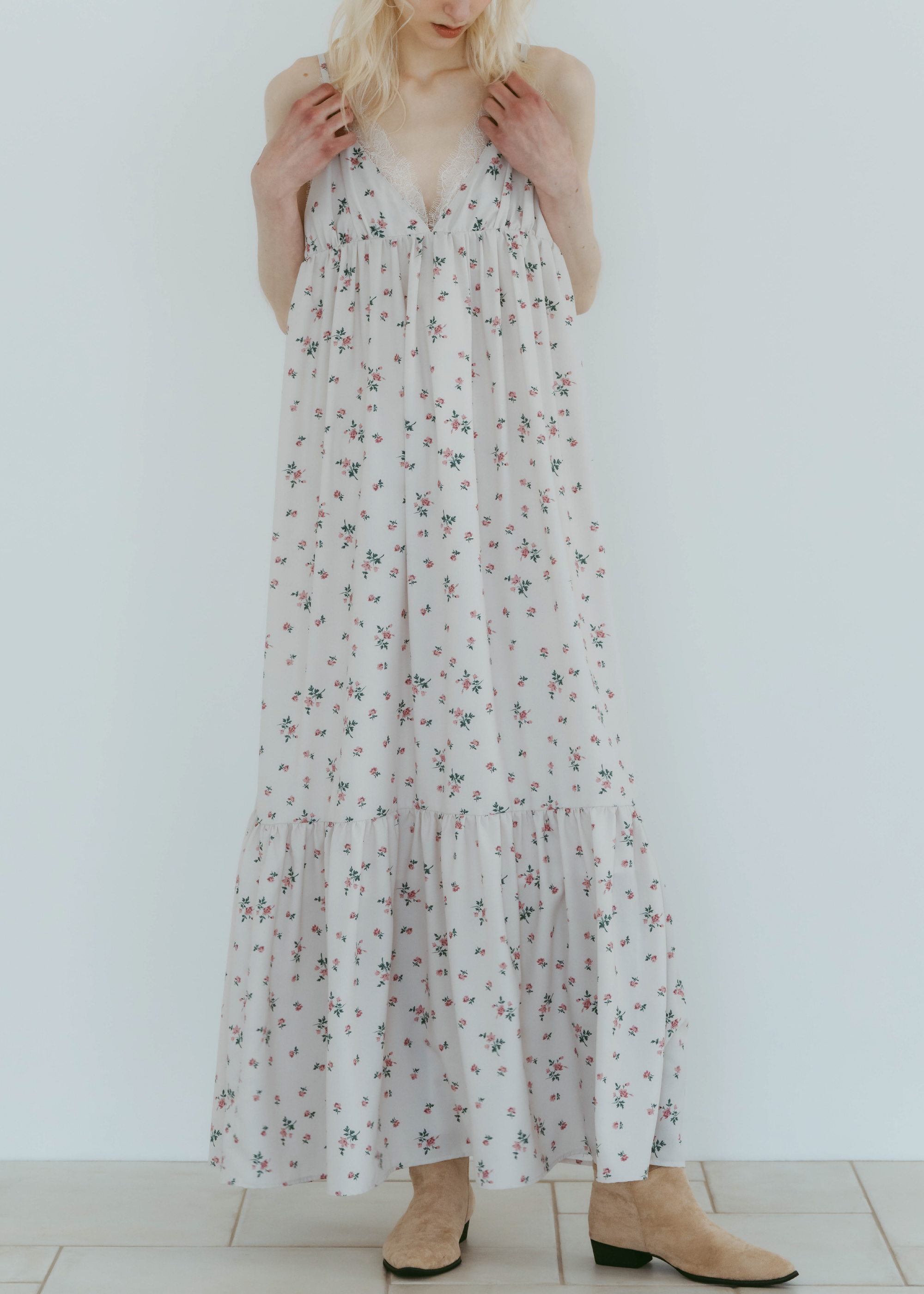 ヴィンテージ感のある小花柄が印象的な、分量たっぷりのフローラルドレス。