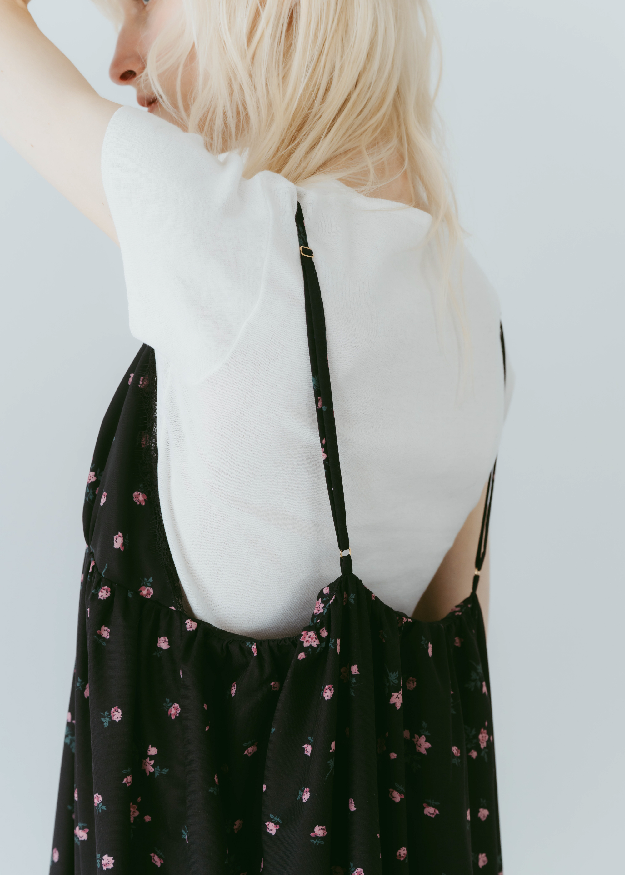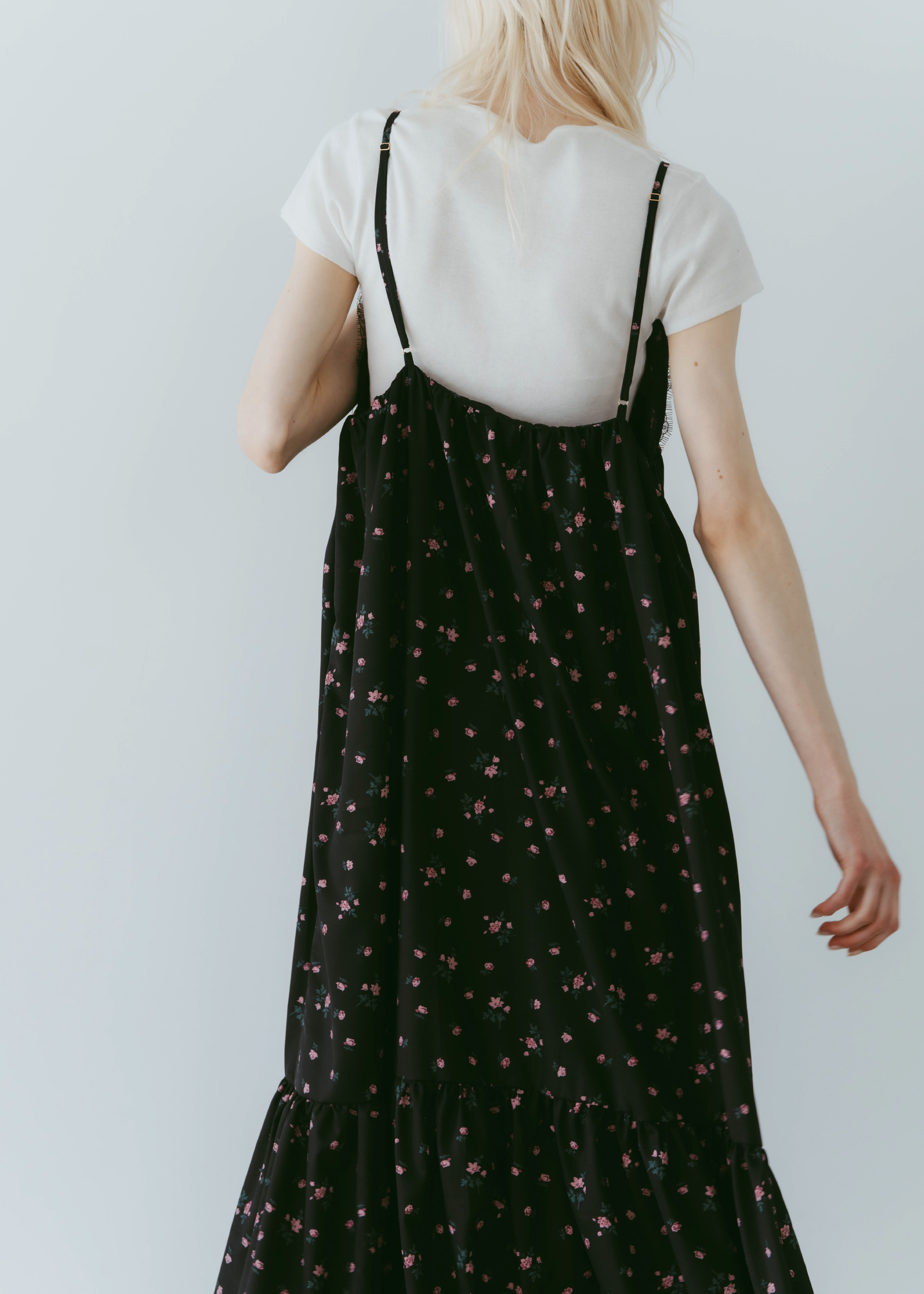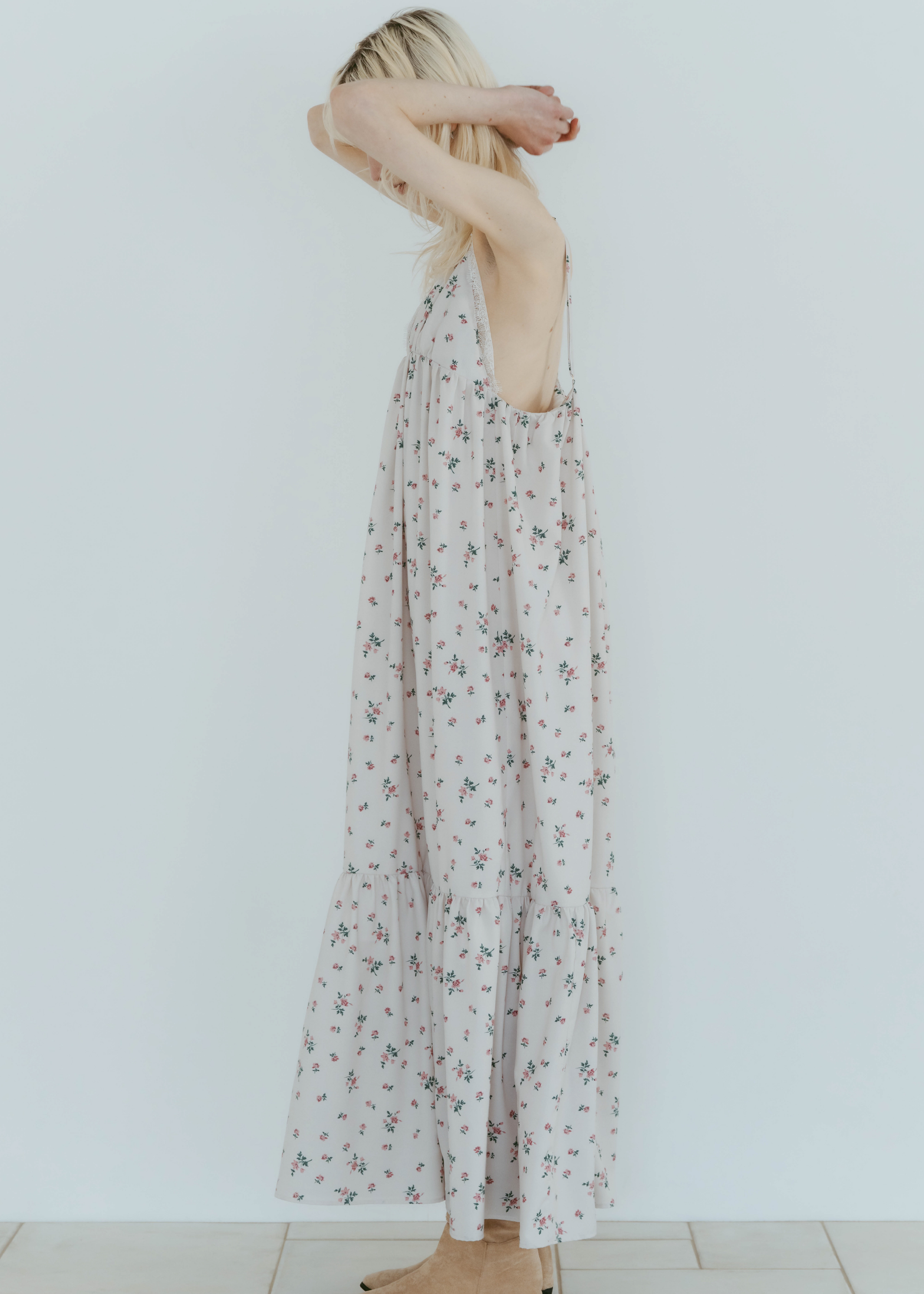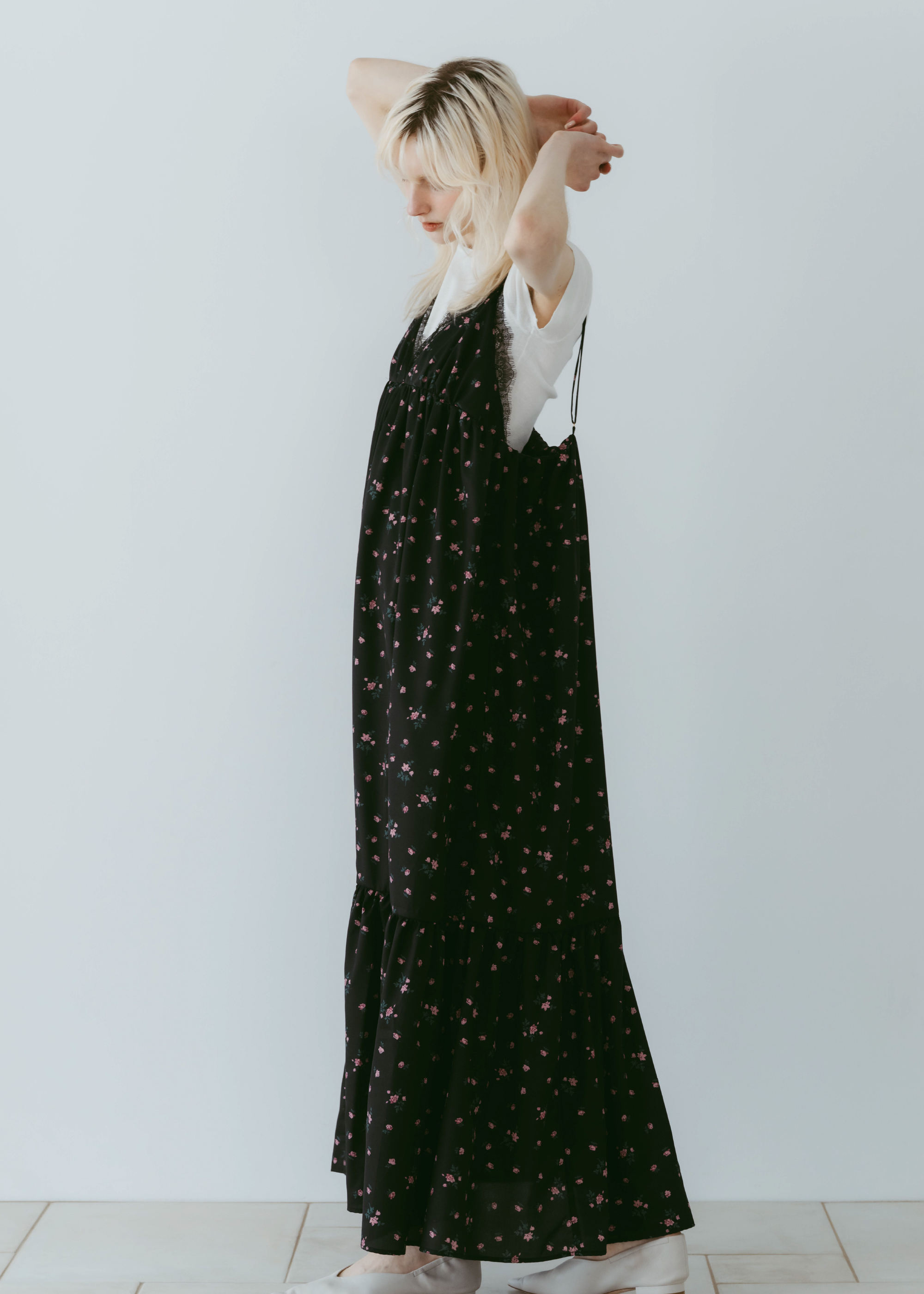 ヴィンテージ感のある小花柄が印象的な、分量たっぷりのフローラルドレス。