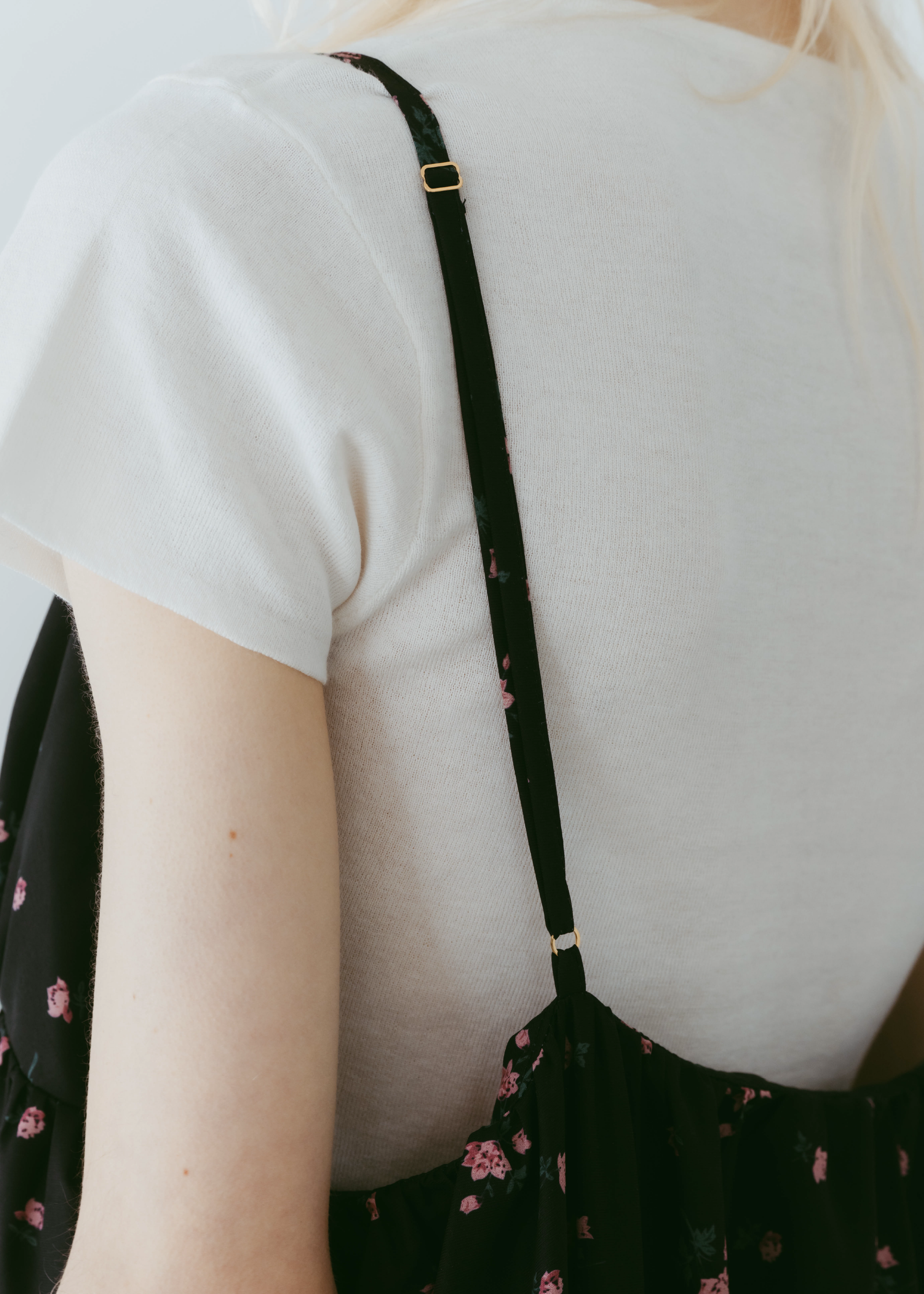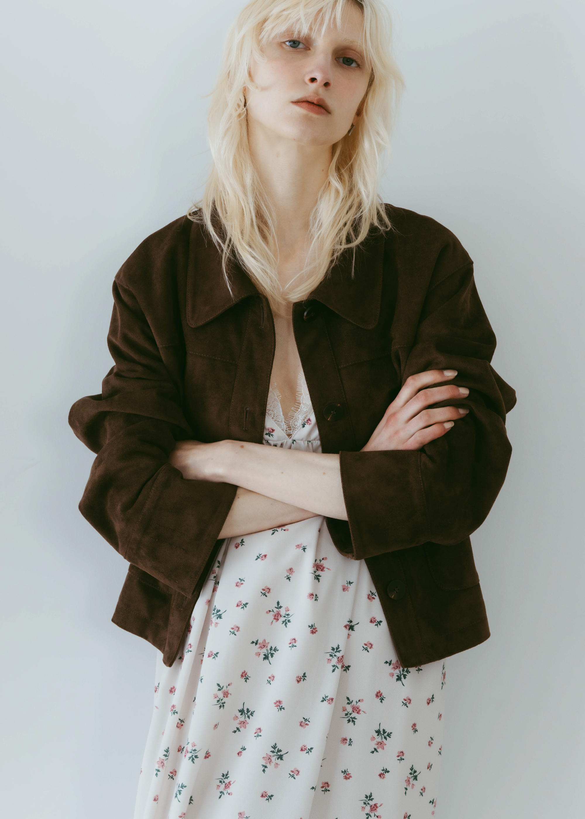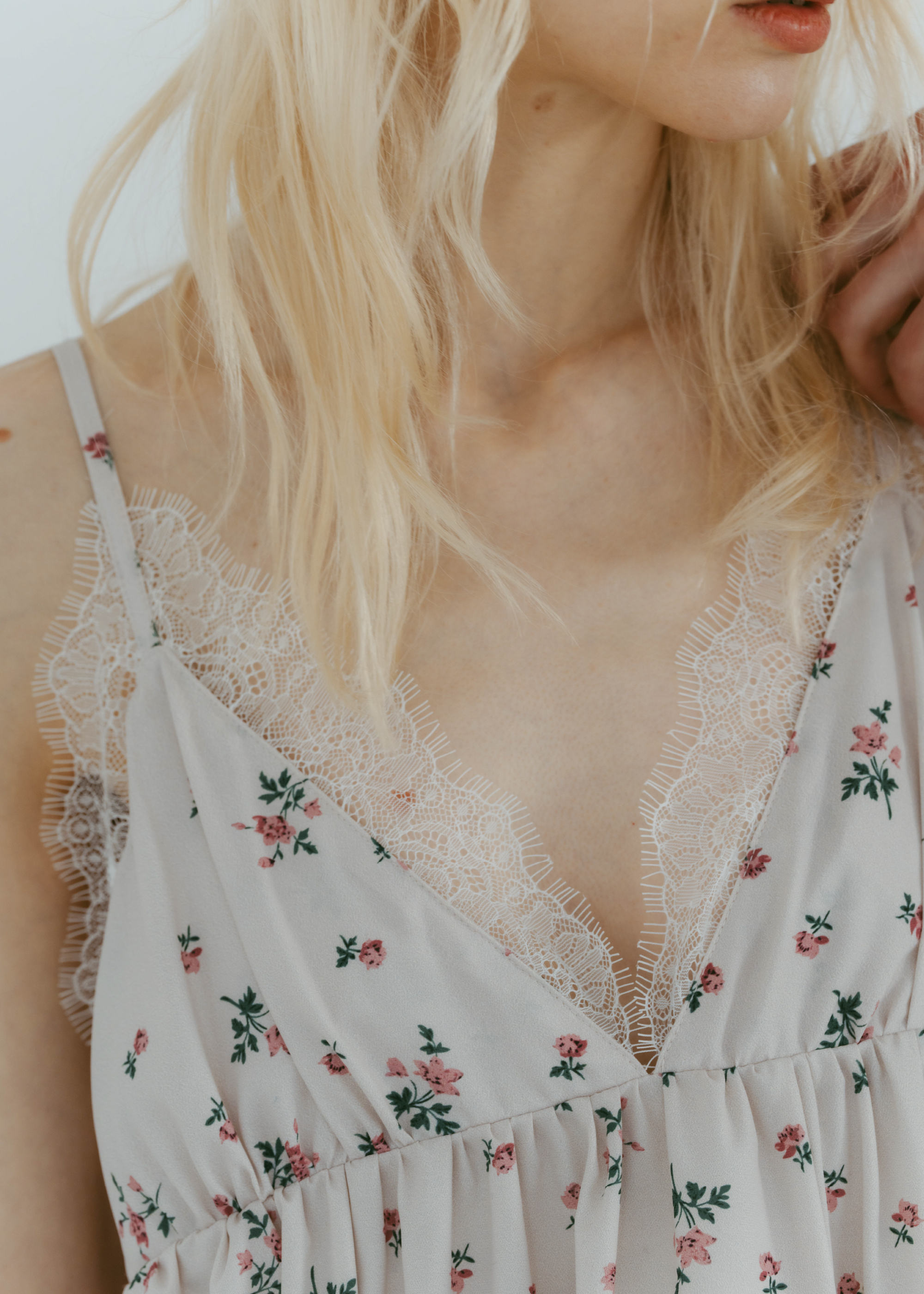 胸元には繊細なレースをあしらい、フェミニンなアクセントをプラスしました。