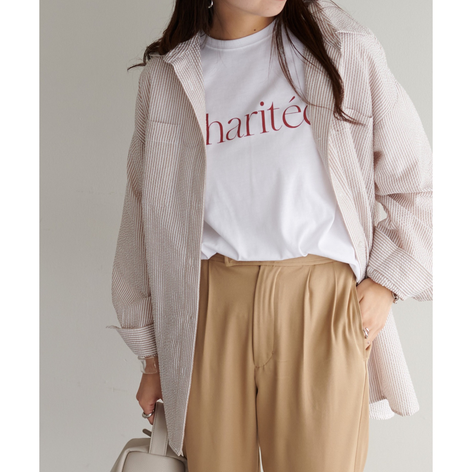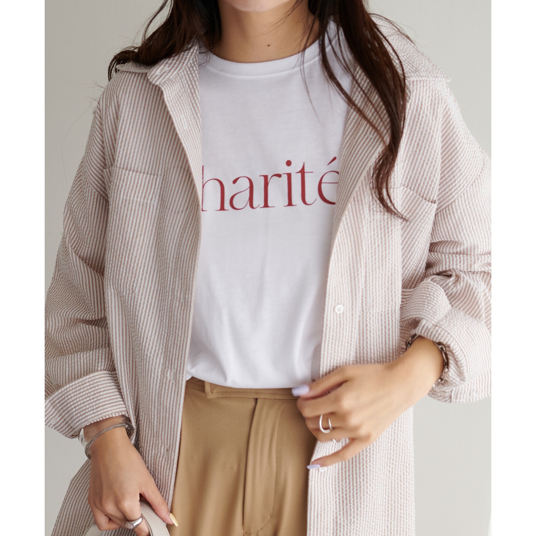 どんなコーディネートにも合わせやすい、フレンチロゴロングTシャツ。