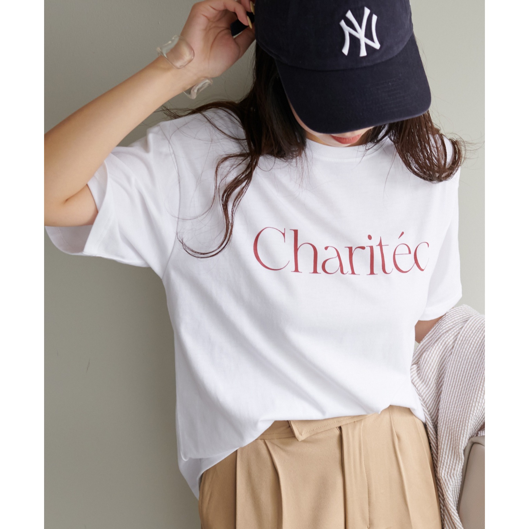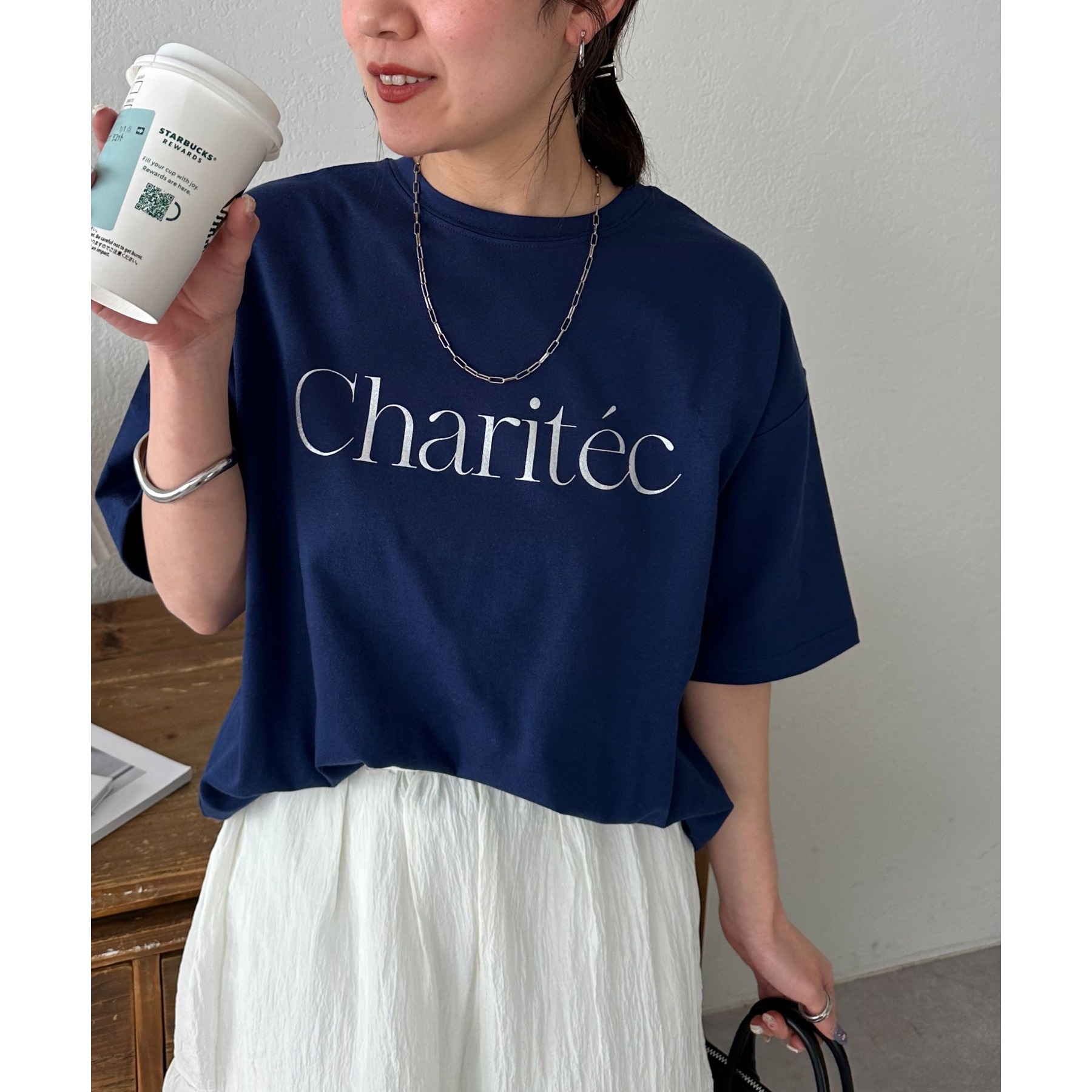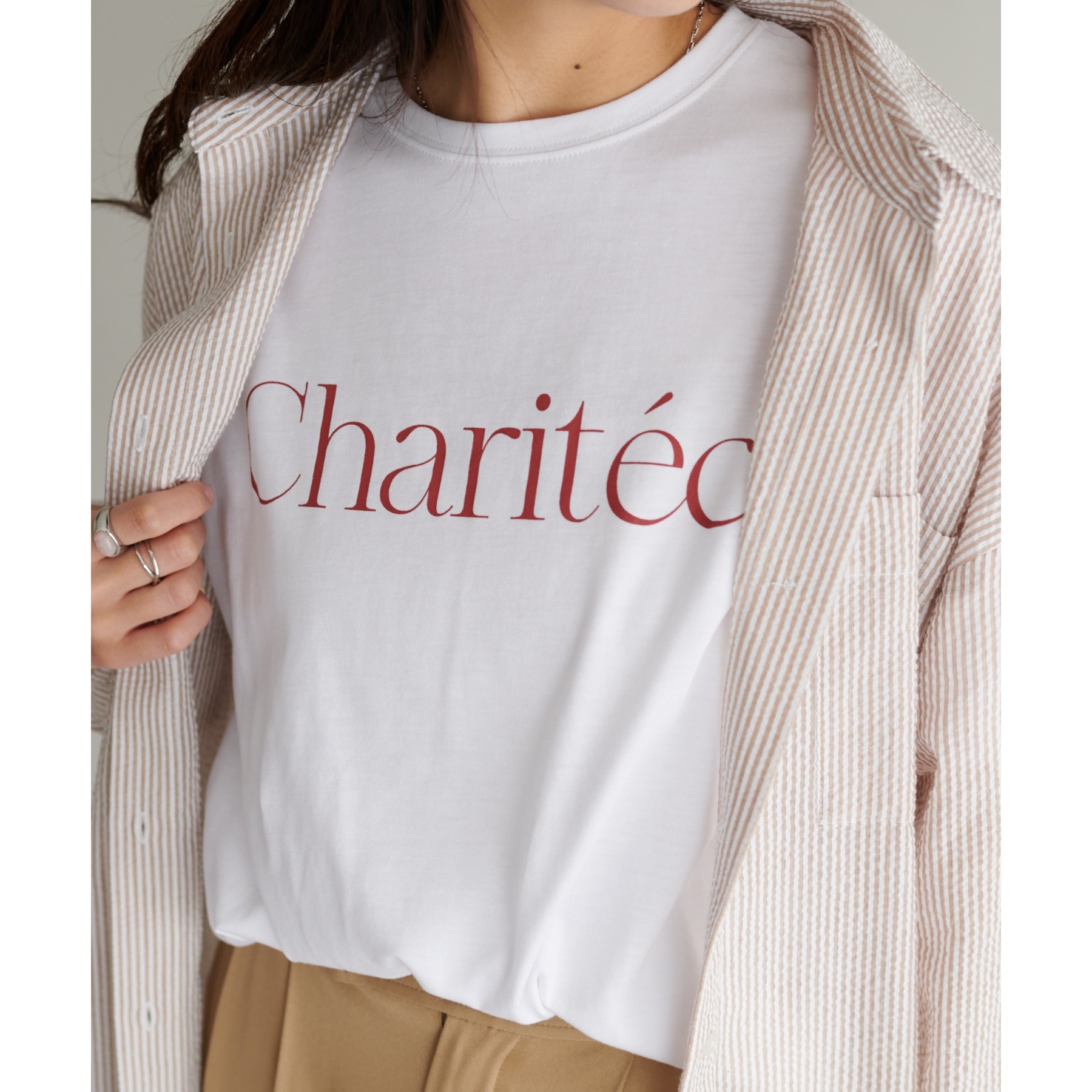 身頃にあしらったスタイリッシュなフレンチロゴがコーディネートにアクセントを添えてくれる一枚。一枚着でも、インナーとしても幅広く着用ができ、無地Tシャツに比べトレンド感ある着こなしが楽しめます。程よくゆったりした女性らしいシルエットで、年代を問わずワードロープにおすすめです◎