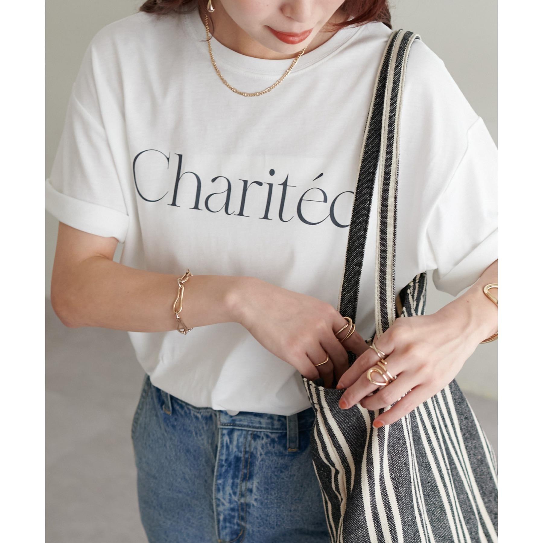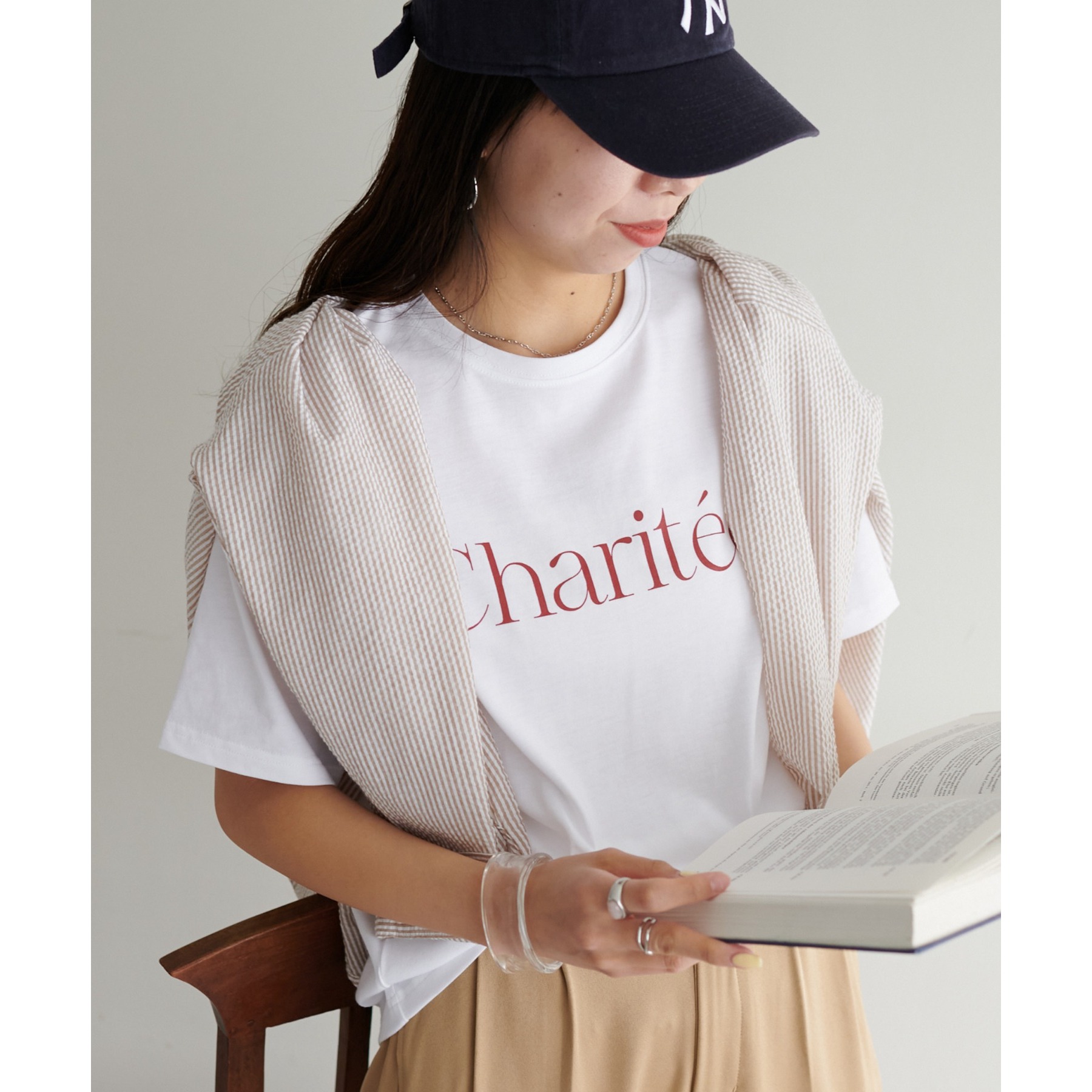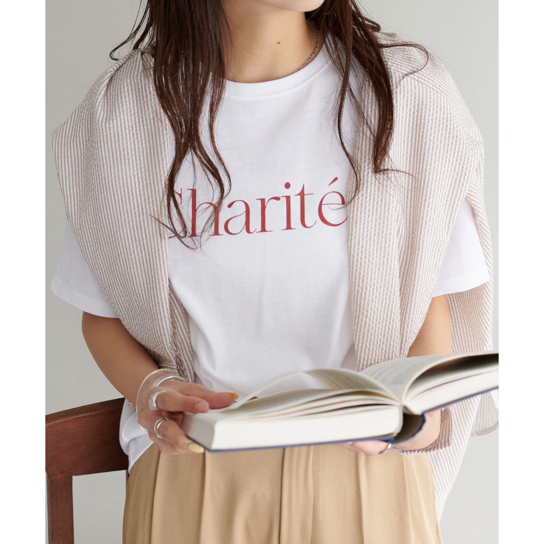 身頃にあしらったスタイリッシュなフレンチロゴがコーディネートにアクセントを添えてくれる一枚。一枚着でも、インナーとしても幅広く着用ができ、無地Tシャツに比べトレンド感ある着こなしが楽しめます。程よくゆったりした女性らしいシルエットで、年代を問わずワードロープにおすすめです◎