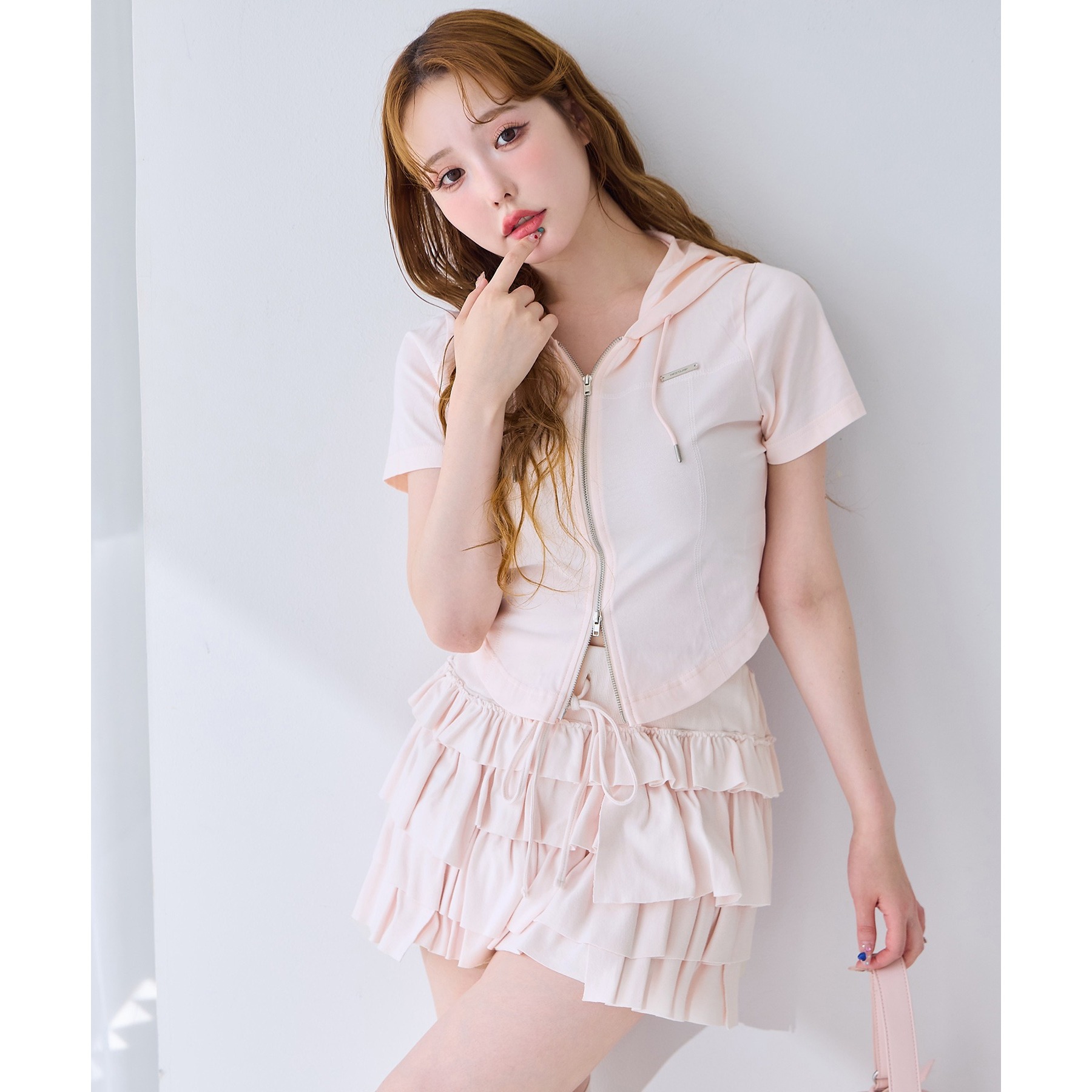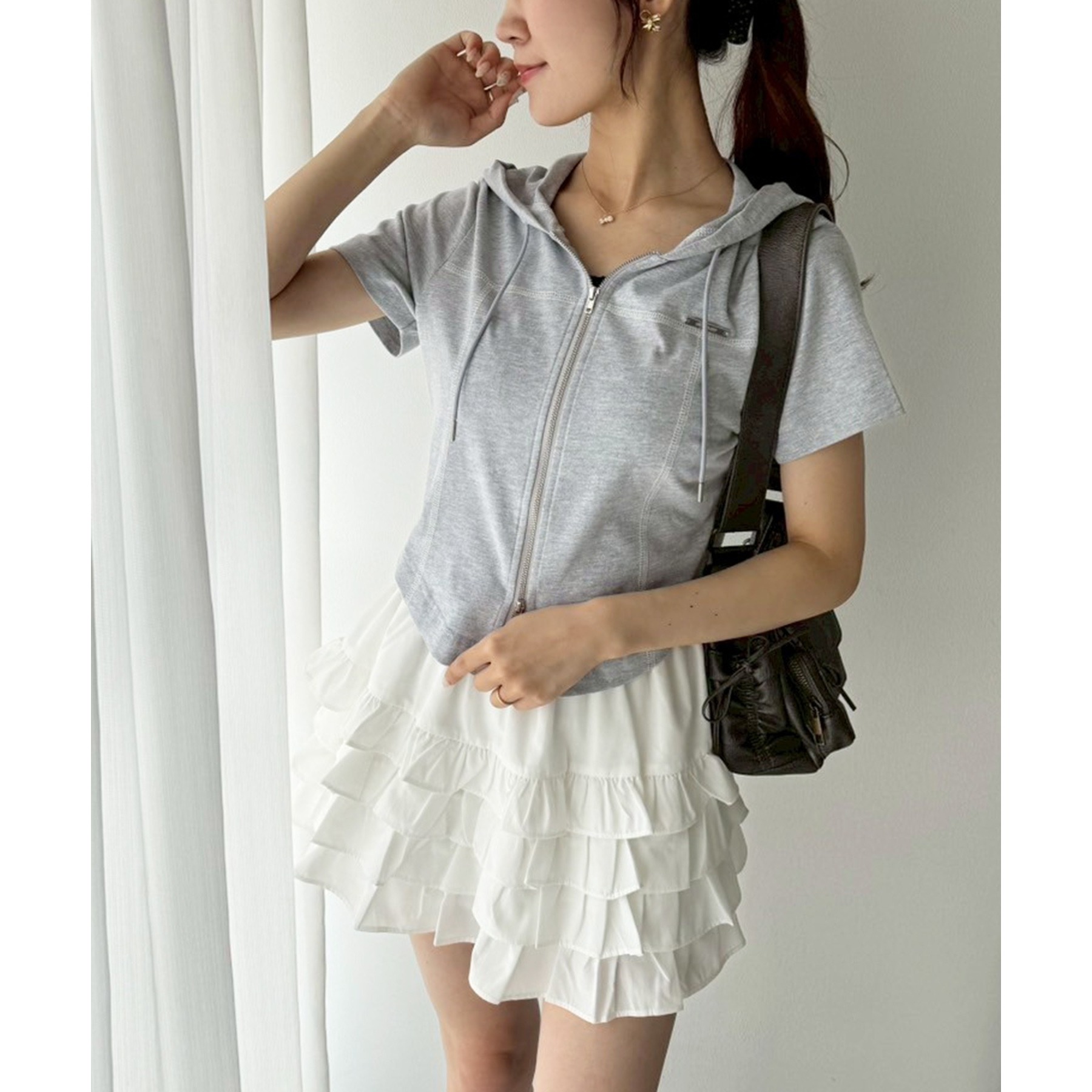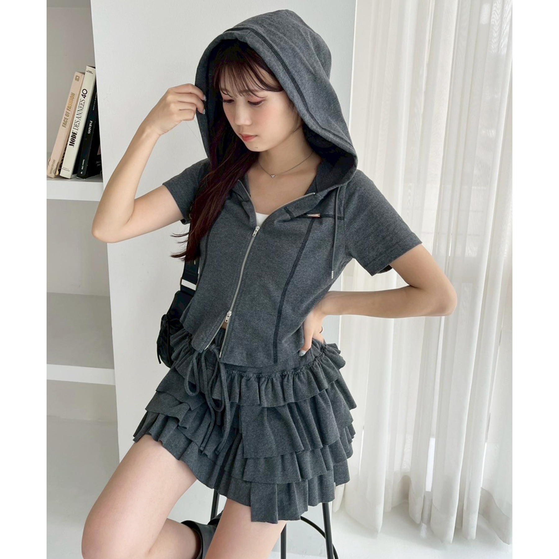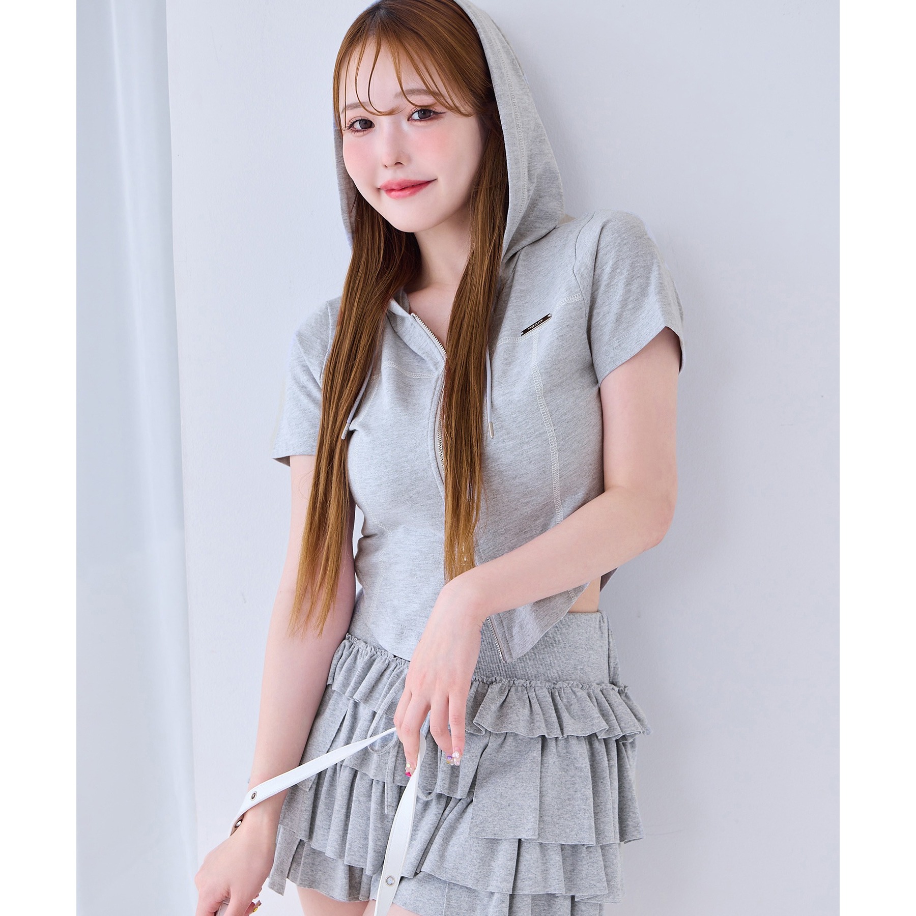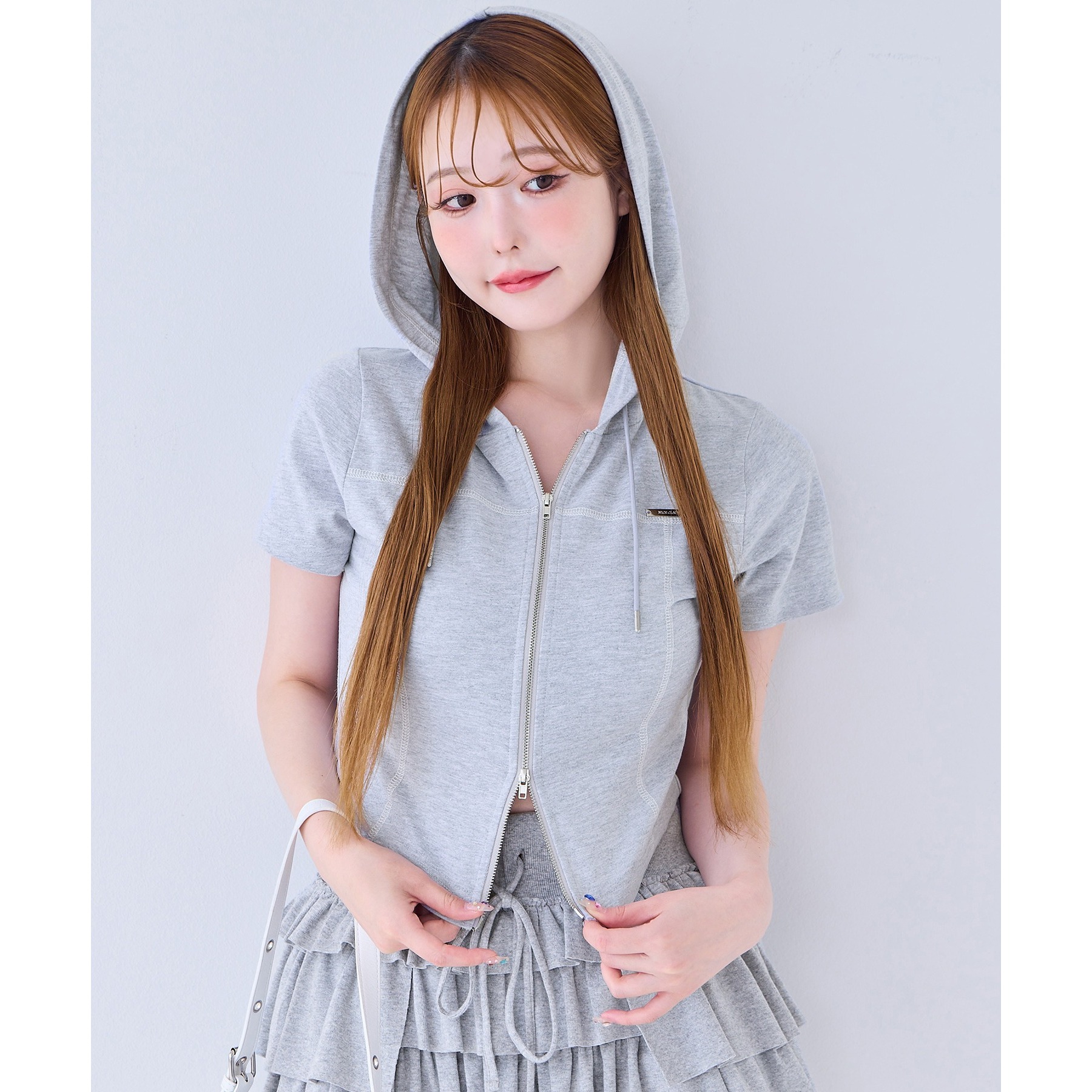 カジュアルながらもガーリーな雰囲気を演出できる、ショート丈の半袖パーカーが登場!