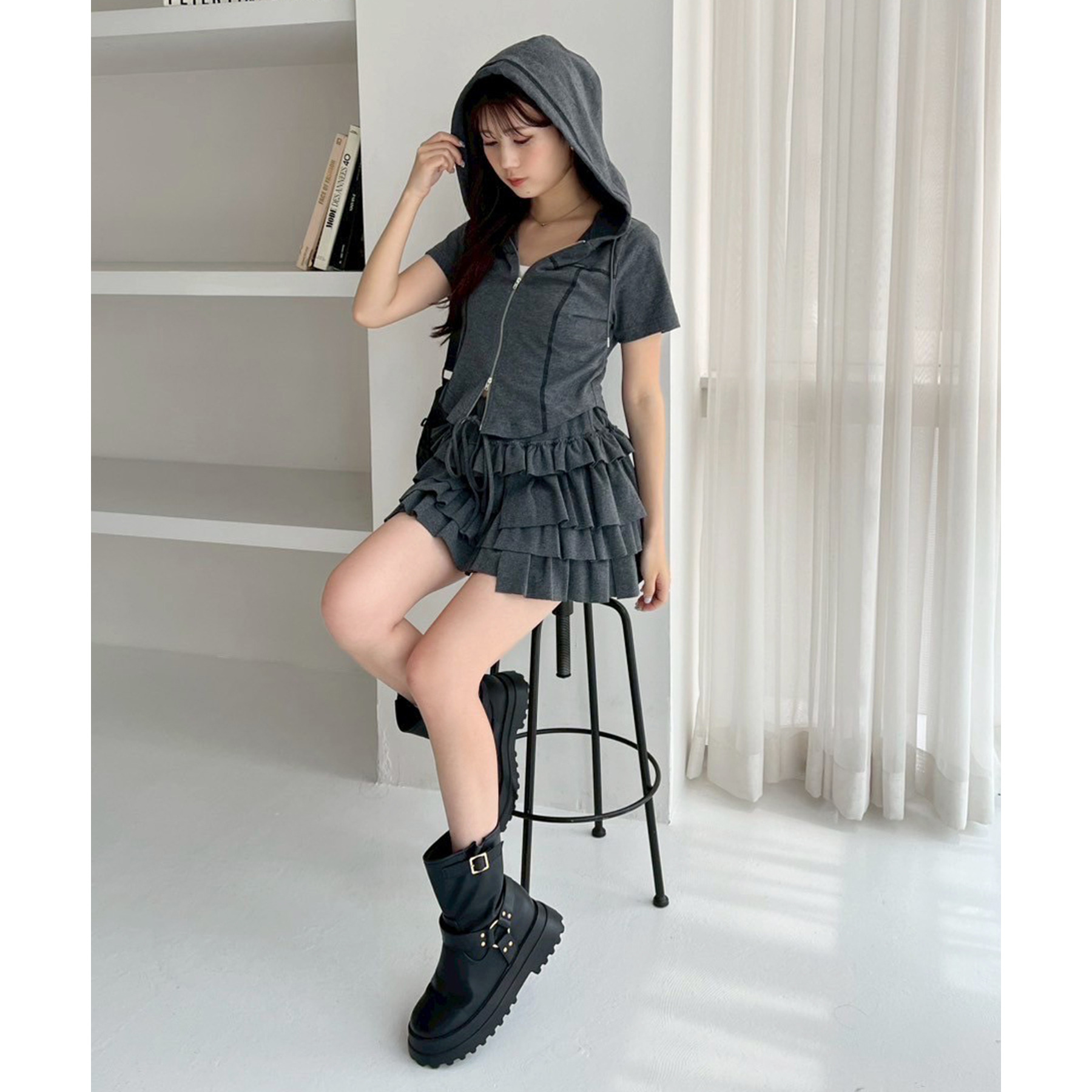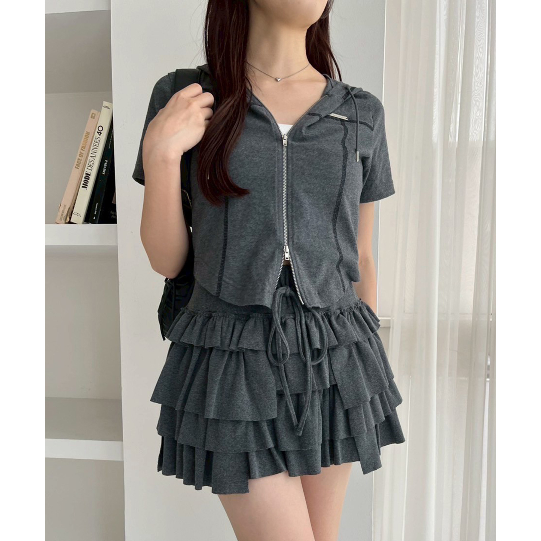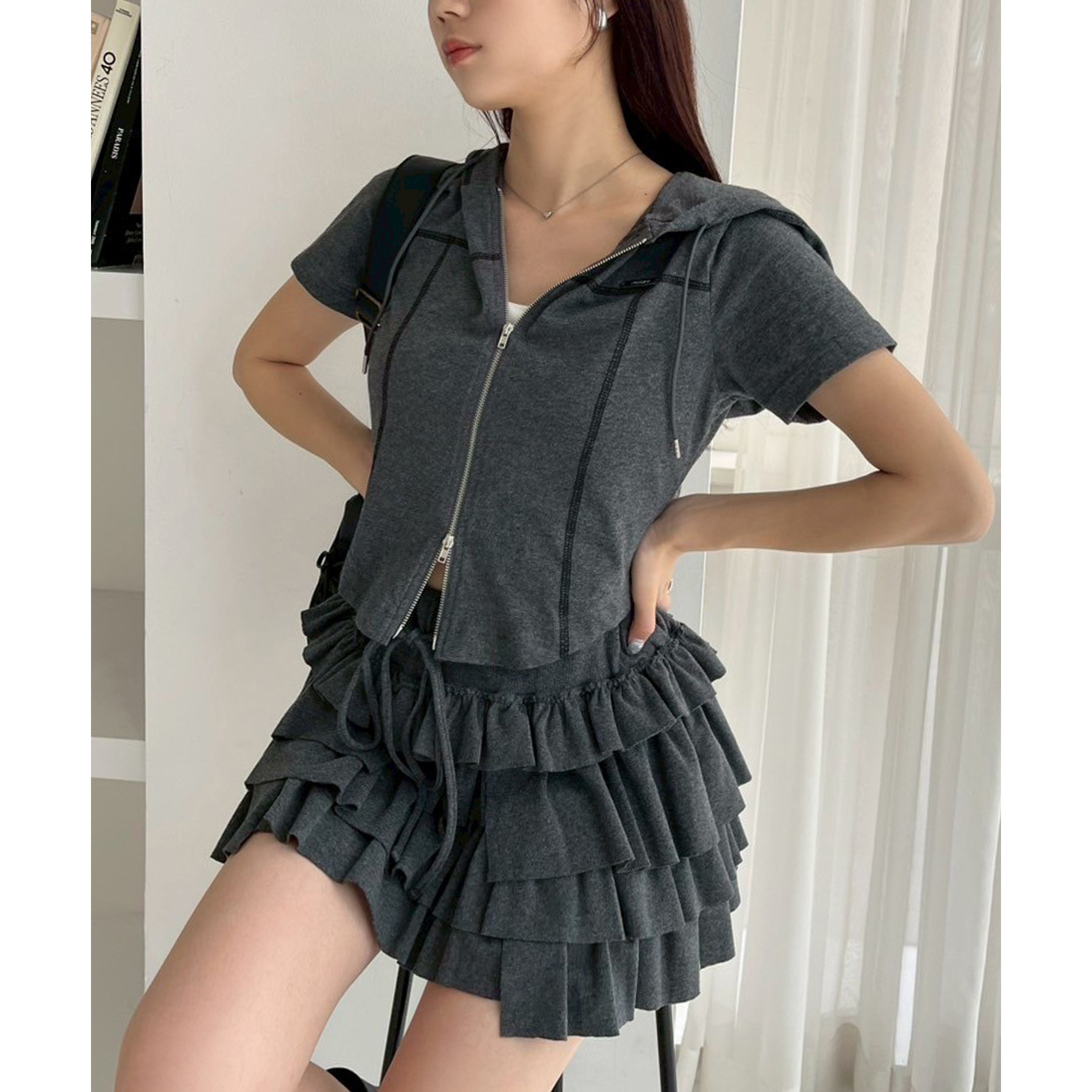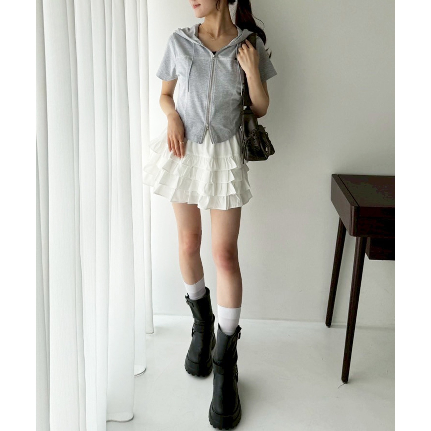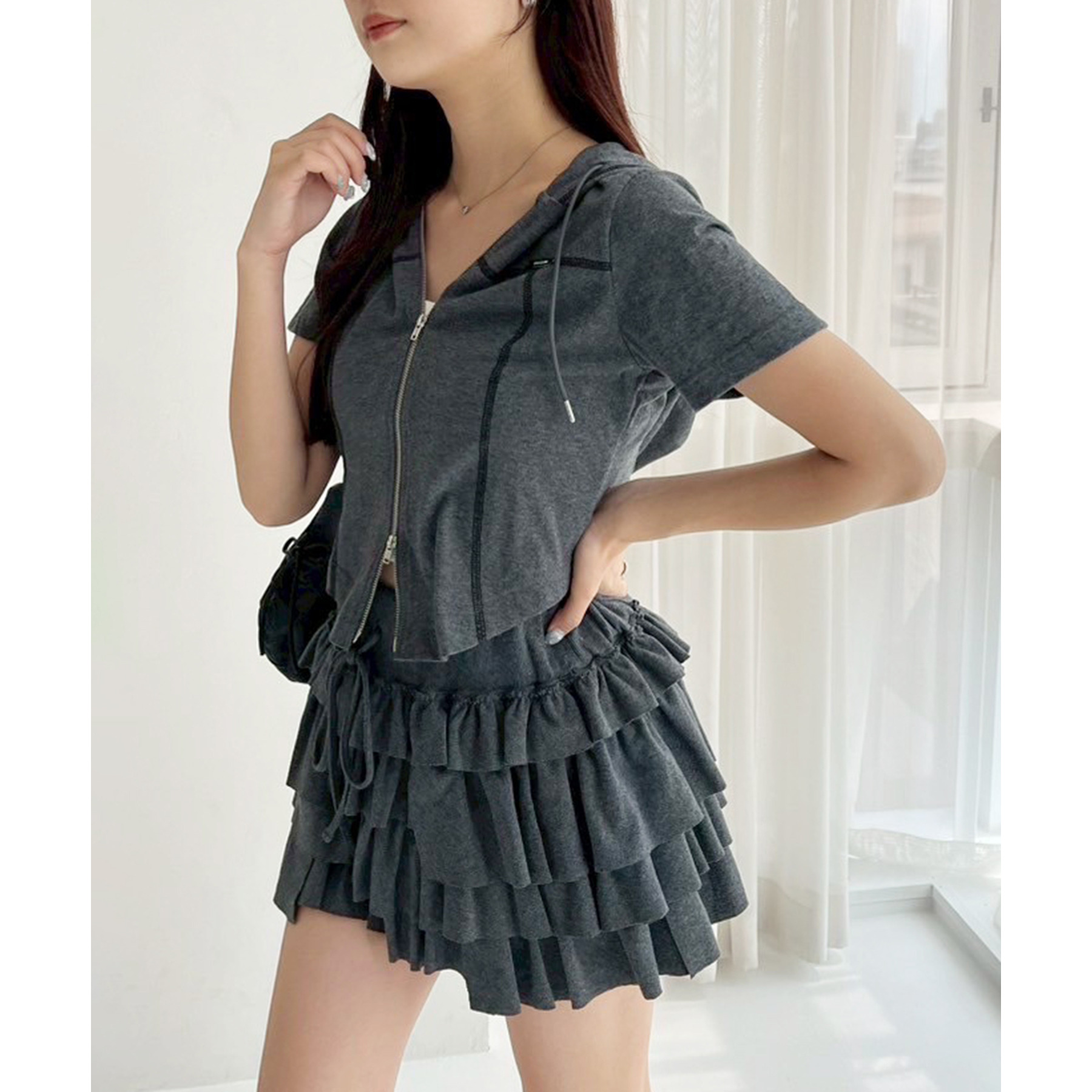 カジュアルながらもガーリーな雰囲気を演出できる、ショート丈の半袖パーカーが登場!