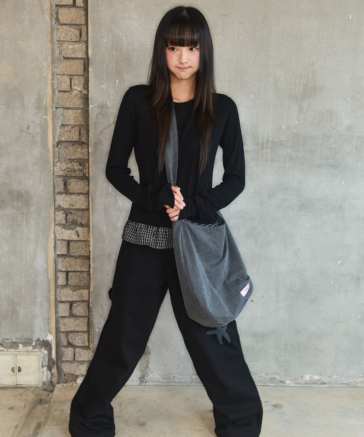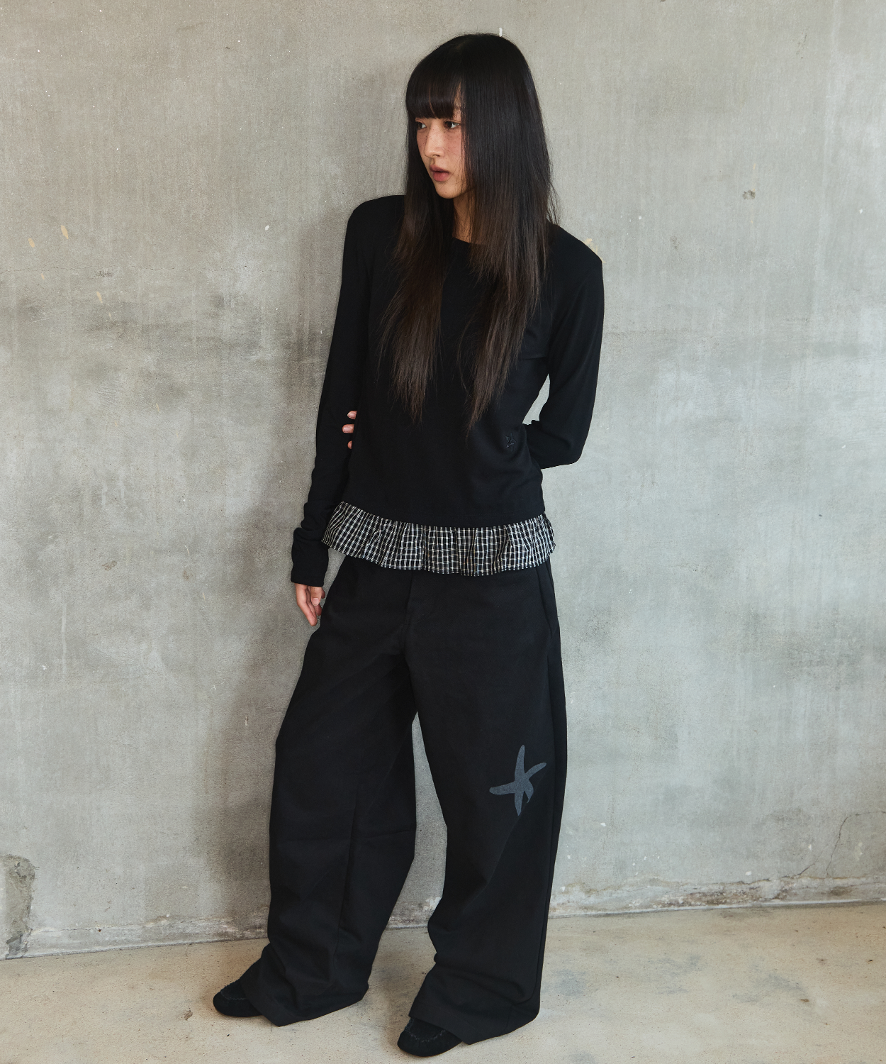 CHECK LAYERED LONG SLEEVE - BLACK
