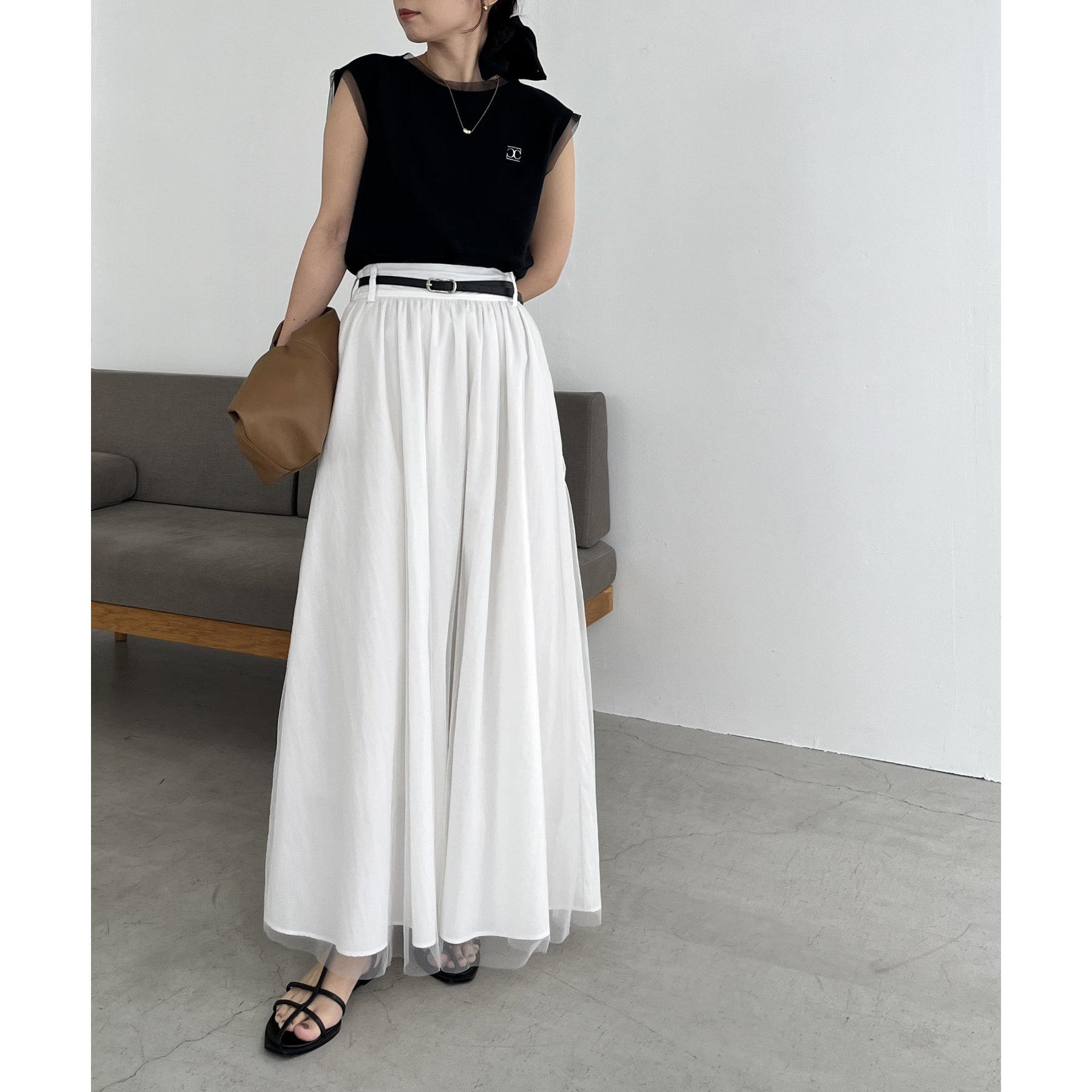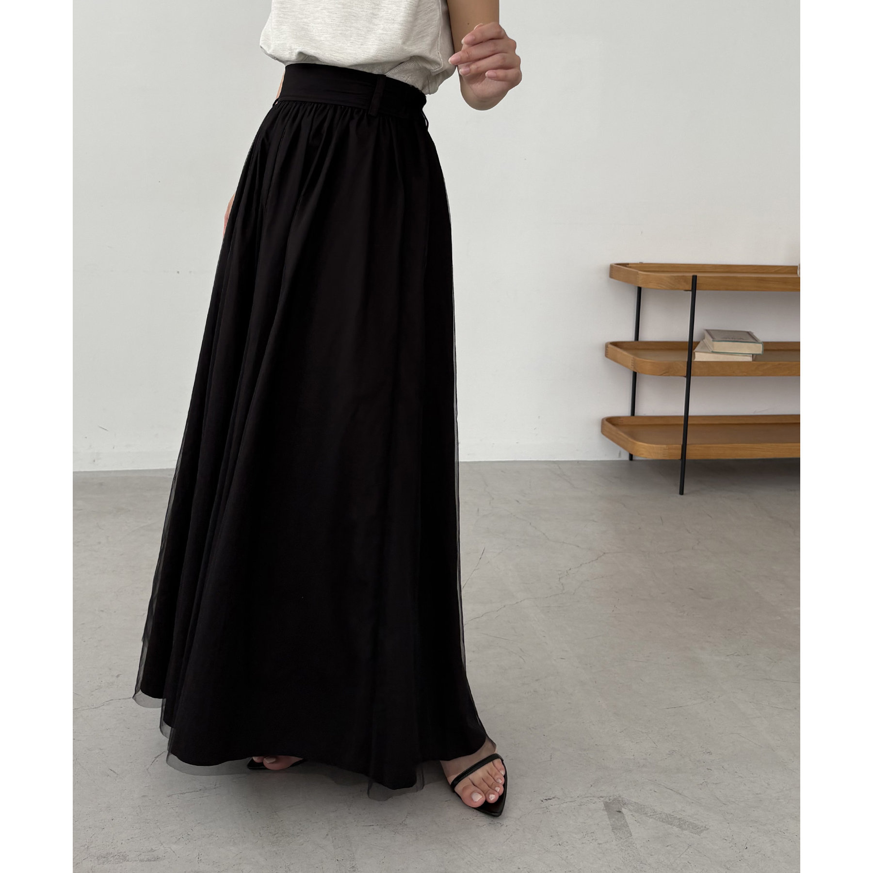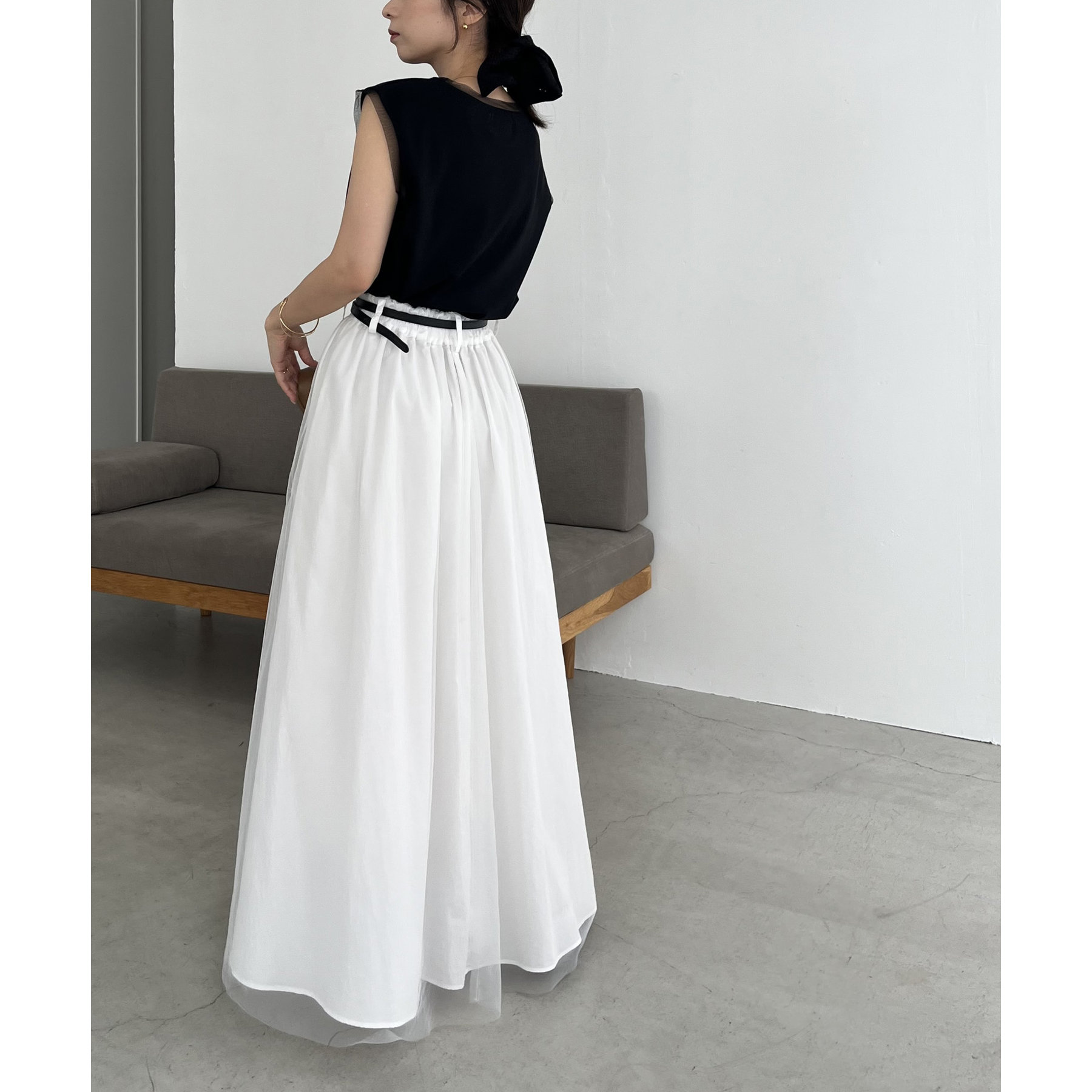 チュールレイヤードフレアスカート