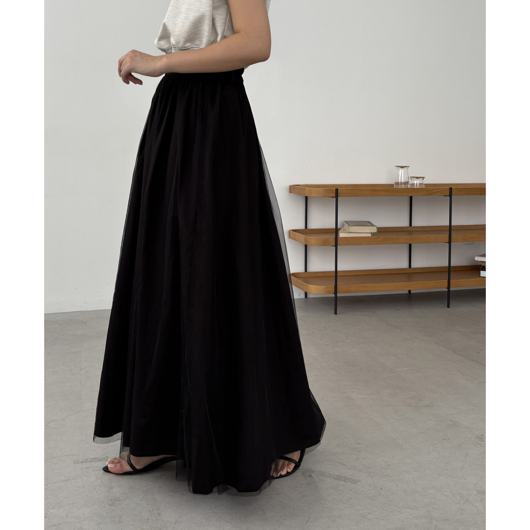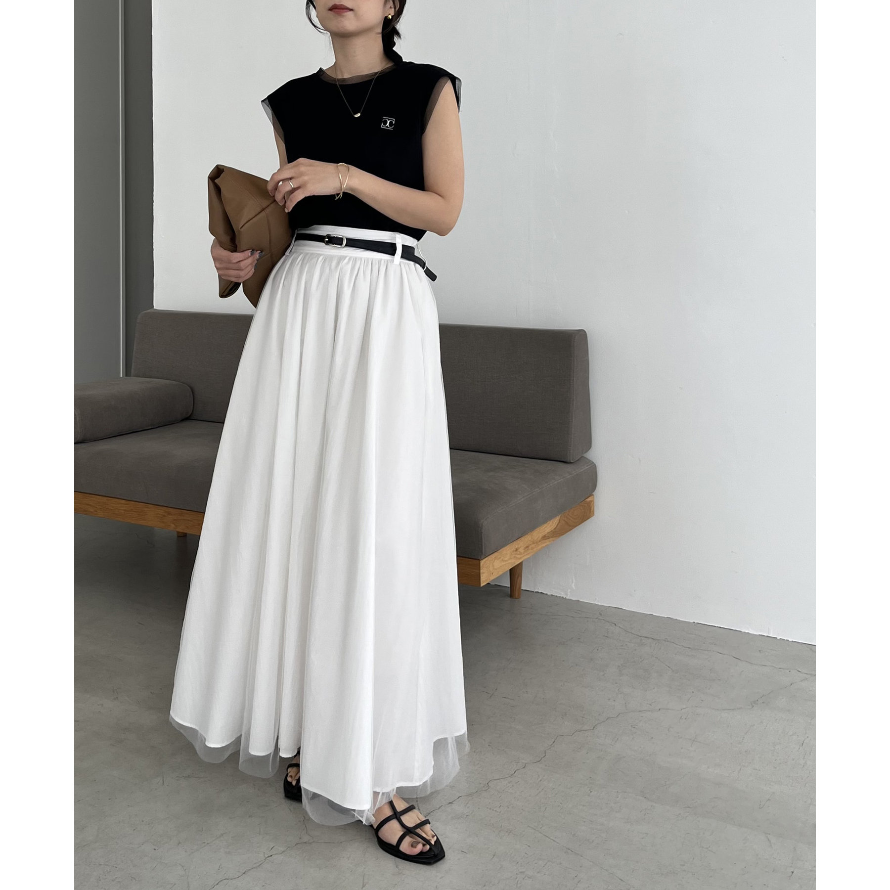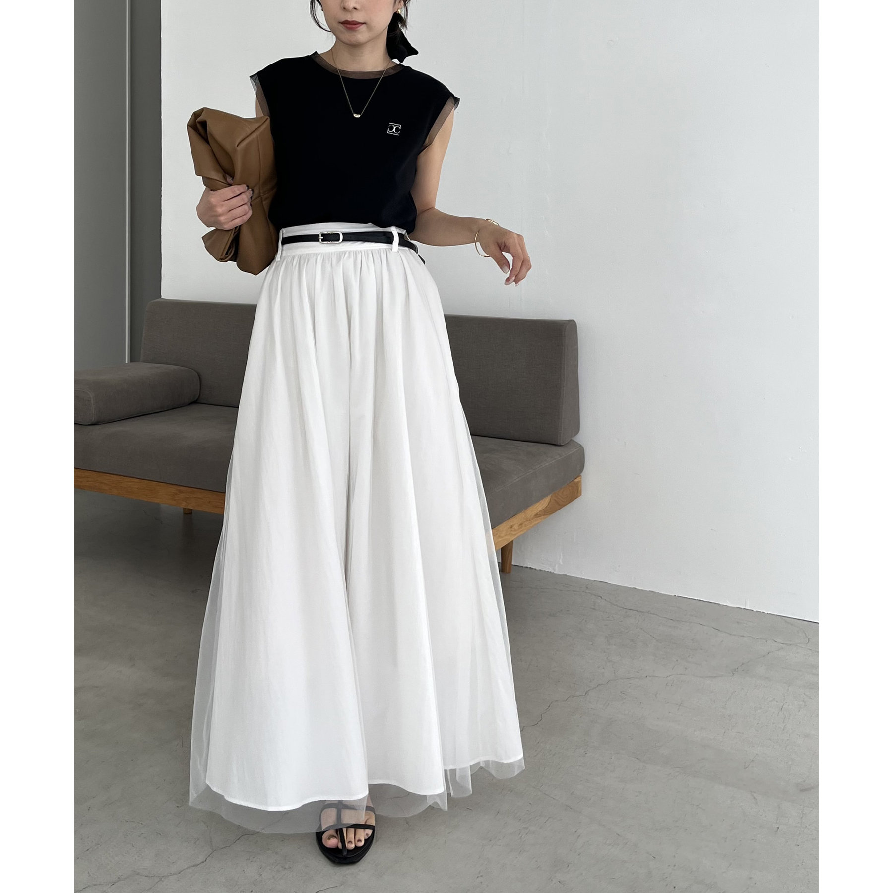 チュールレイヤードフレアスカート