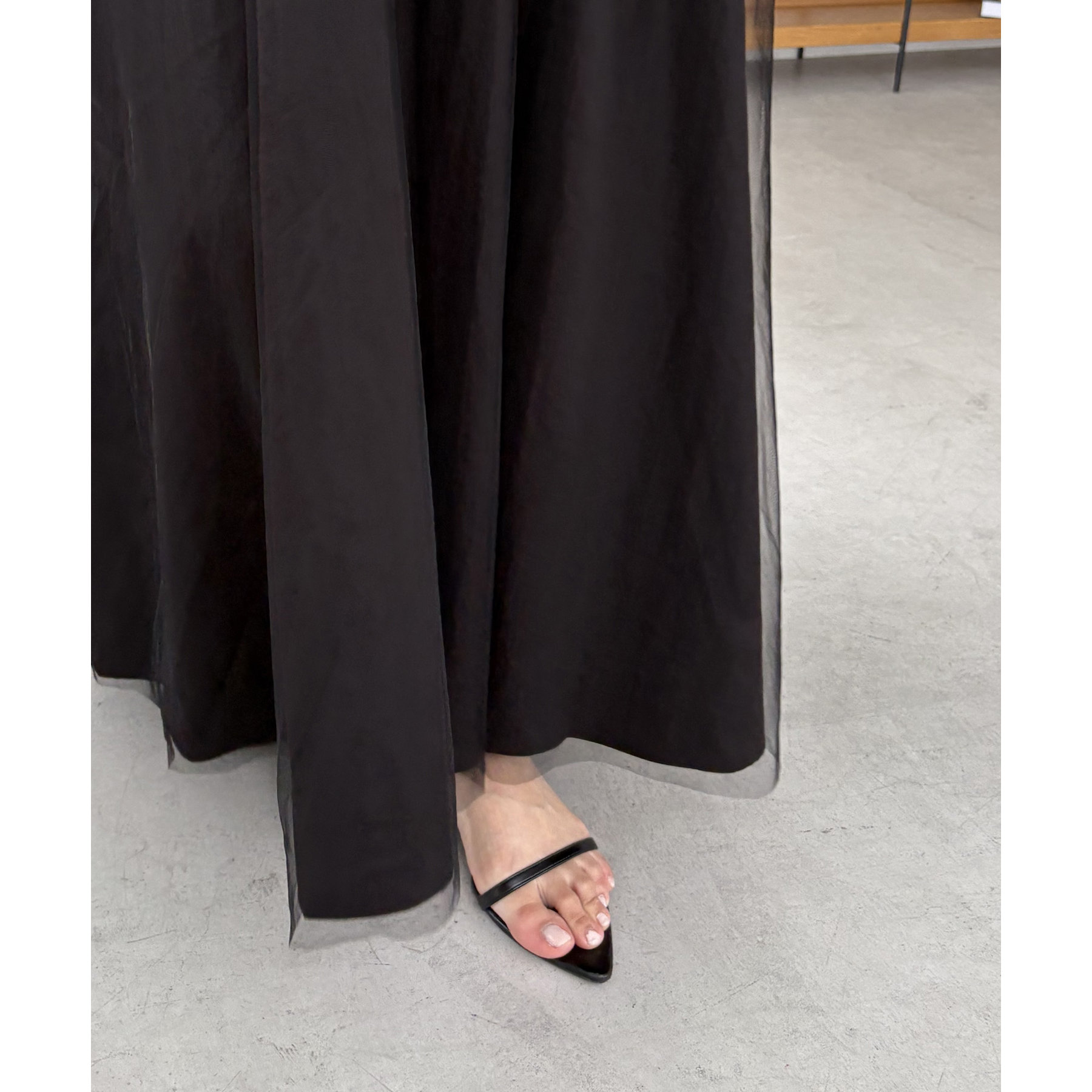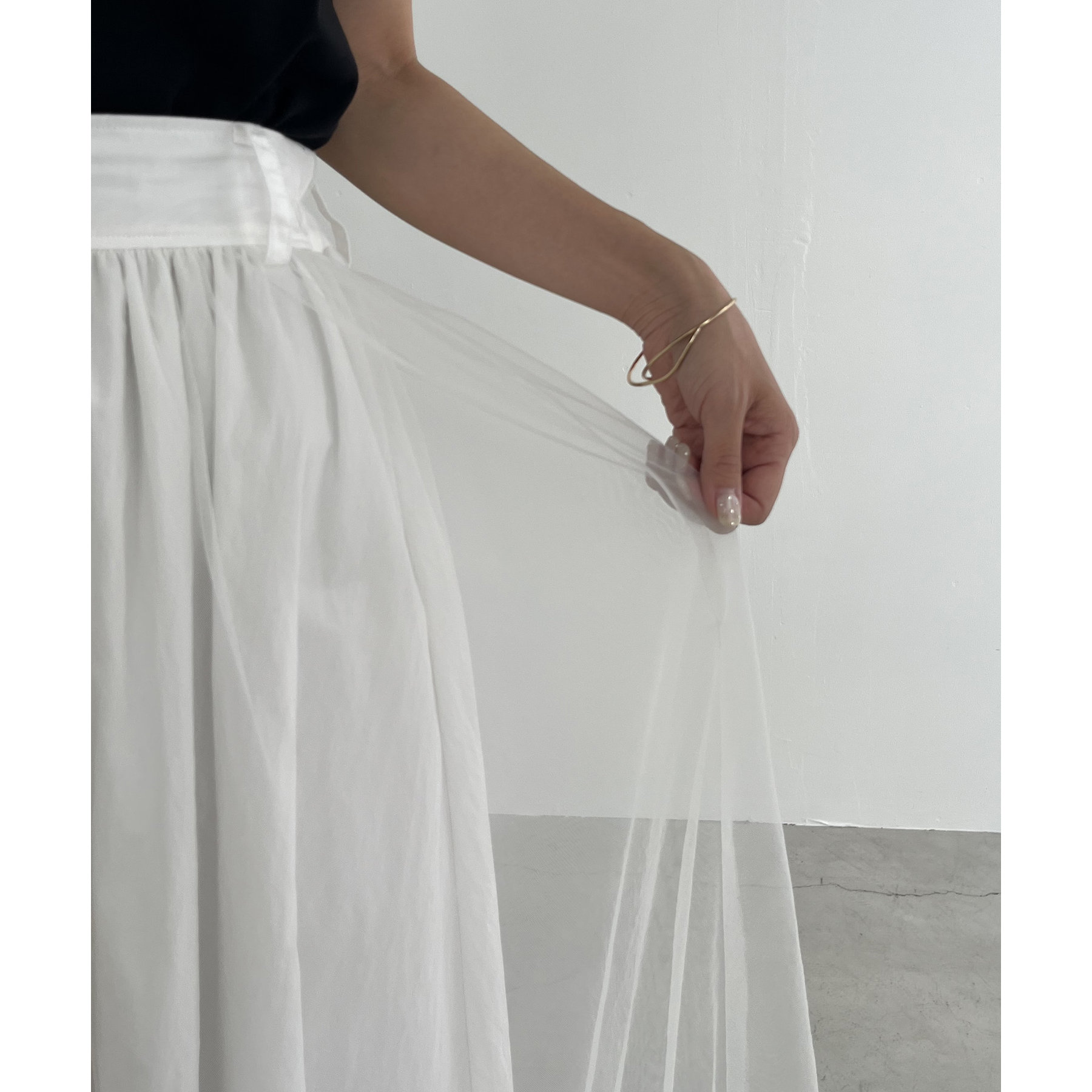 ・表にチュールがレイヤードされたデザイン性のある1枚