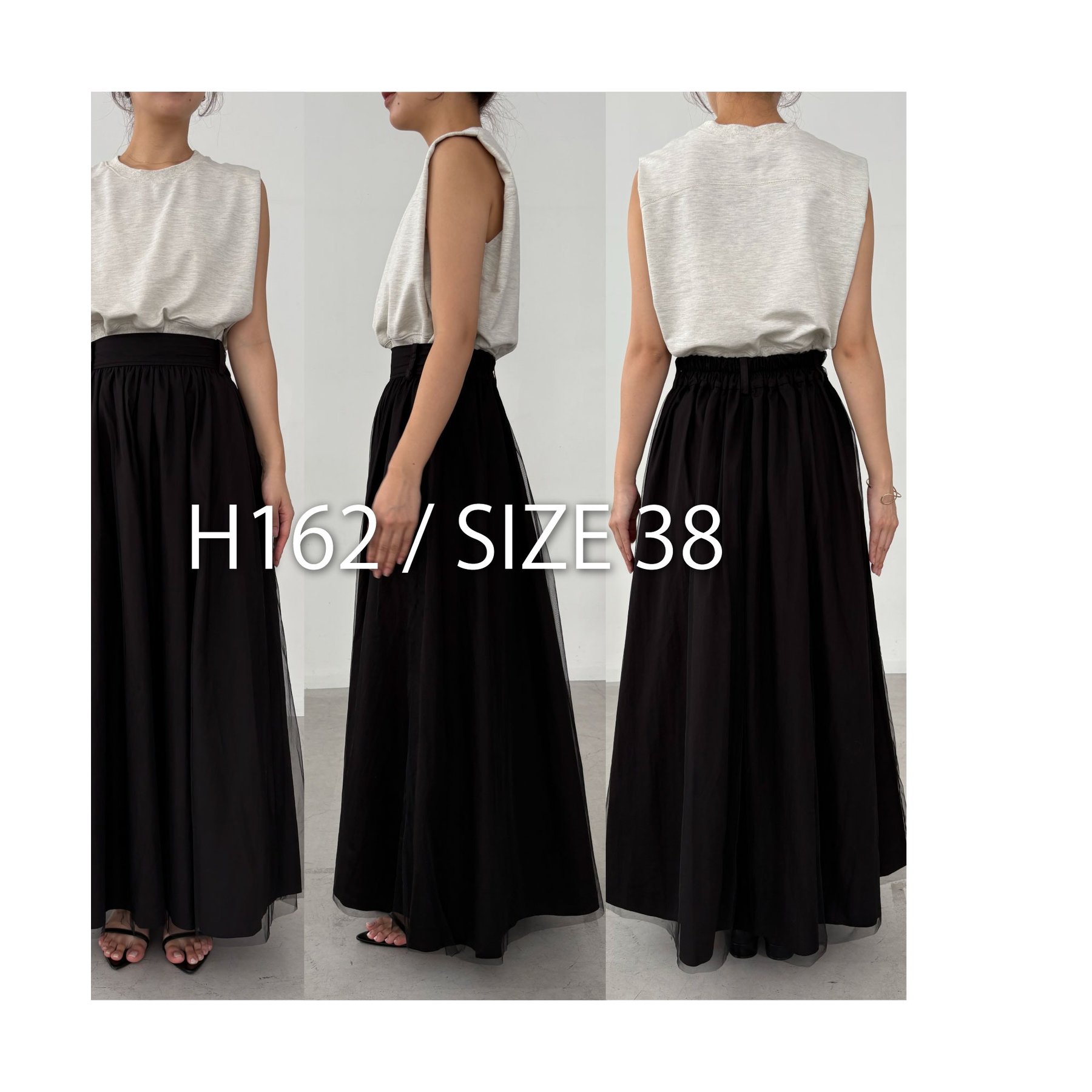 サイズ:38 ウエスト:64~98 ヒップ:- スカート丈:97.5+2(チュール部分)