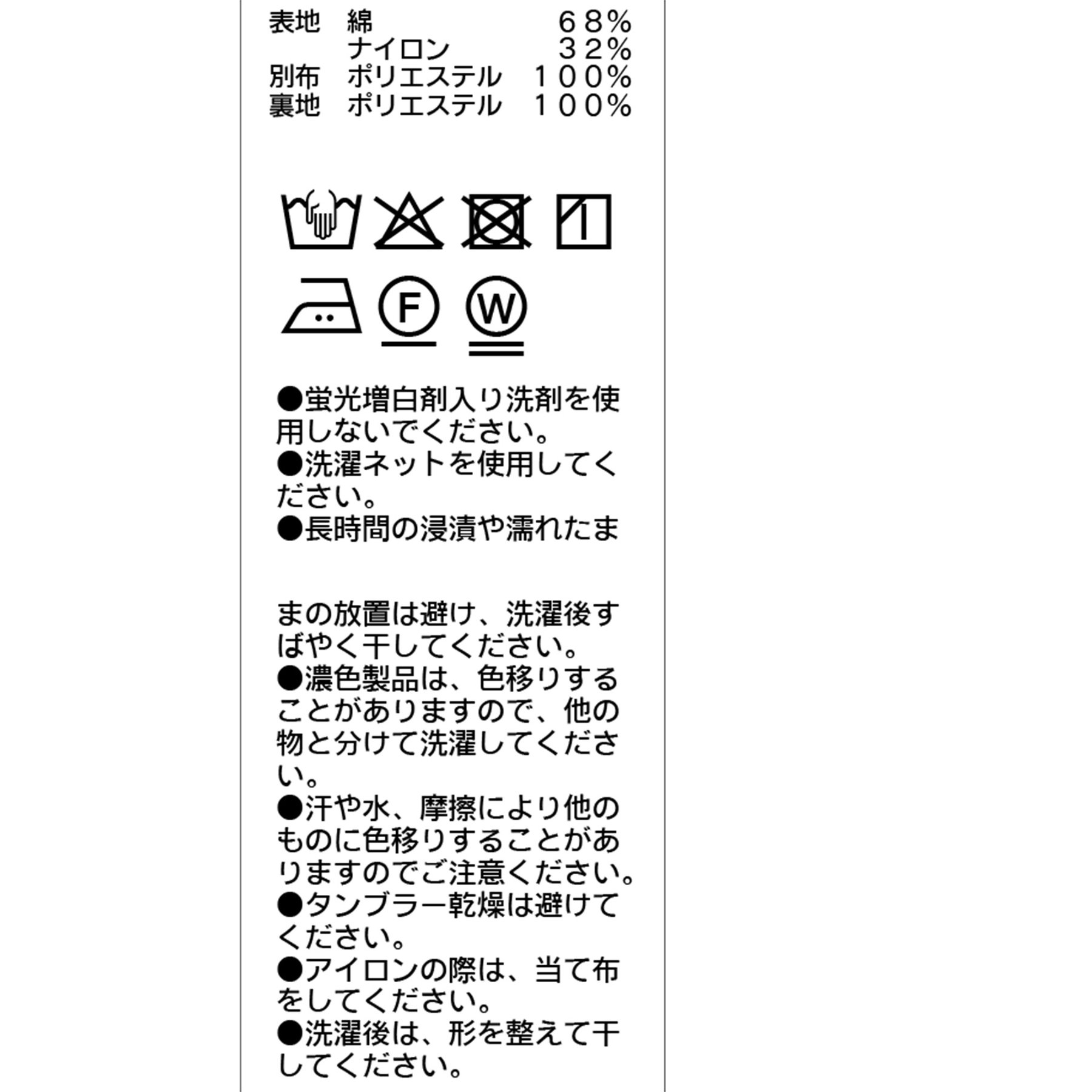 ※蛍光増白剤入り洗剤を使用してください。