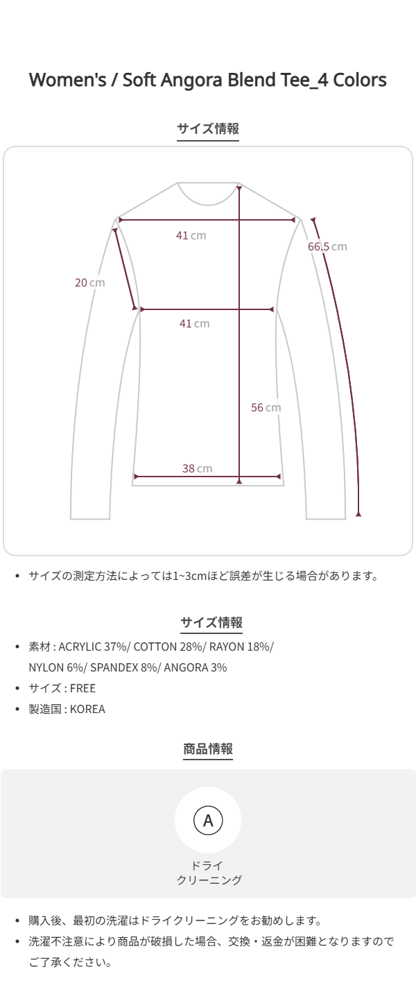 ・ ACRYLIC 37% / COTTON 28% / RAYON 18% / NYLON 6% / SPANDEX 8% / ANGORA 3%