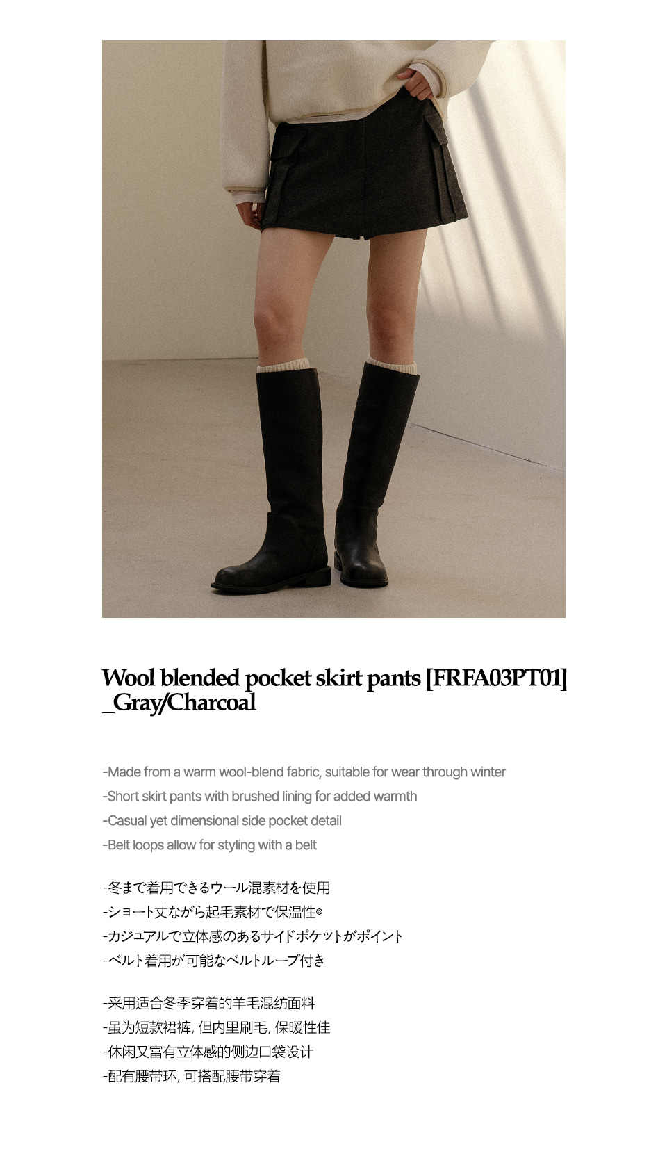 Wool blended pocket skirt pants [FRFA03PT01]_2color