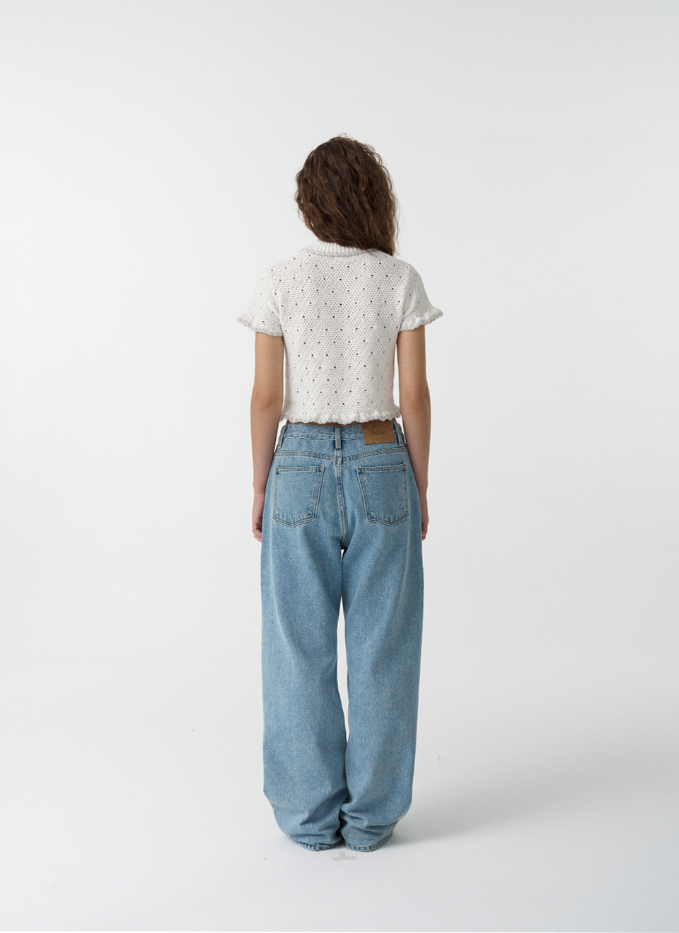 ルーズフィットとファイブポケット仕様のデニムパンツタイプ。