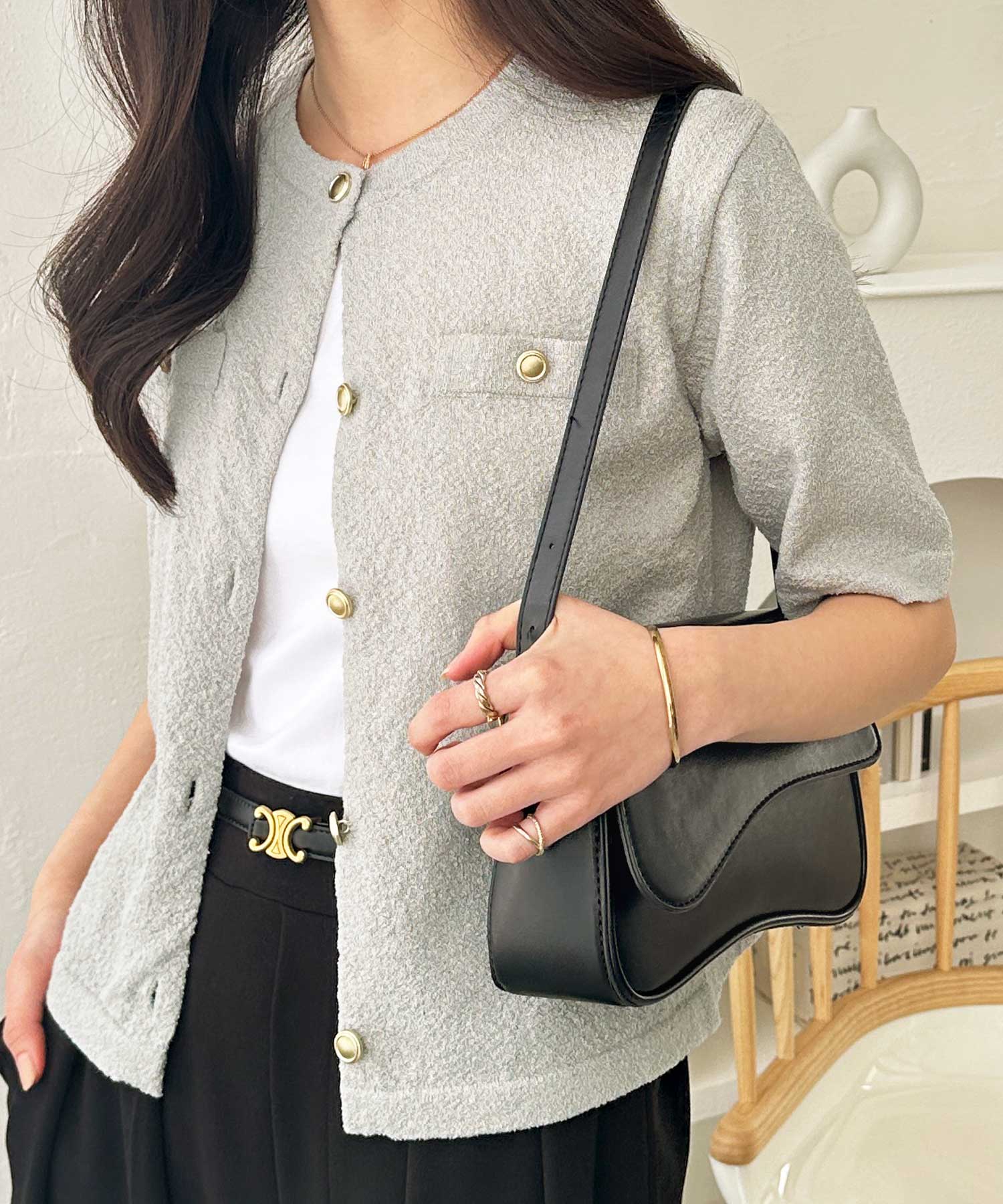 カジュアルにもキレイめにも合わせやすいデザイン。いつもの洋服に合わせるだけで、着こなしに華やかさをプラスしてくれます。