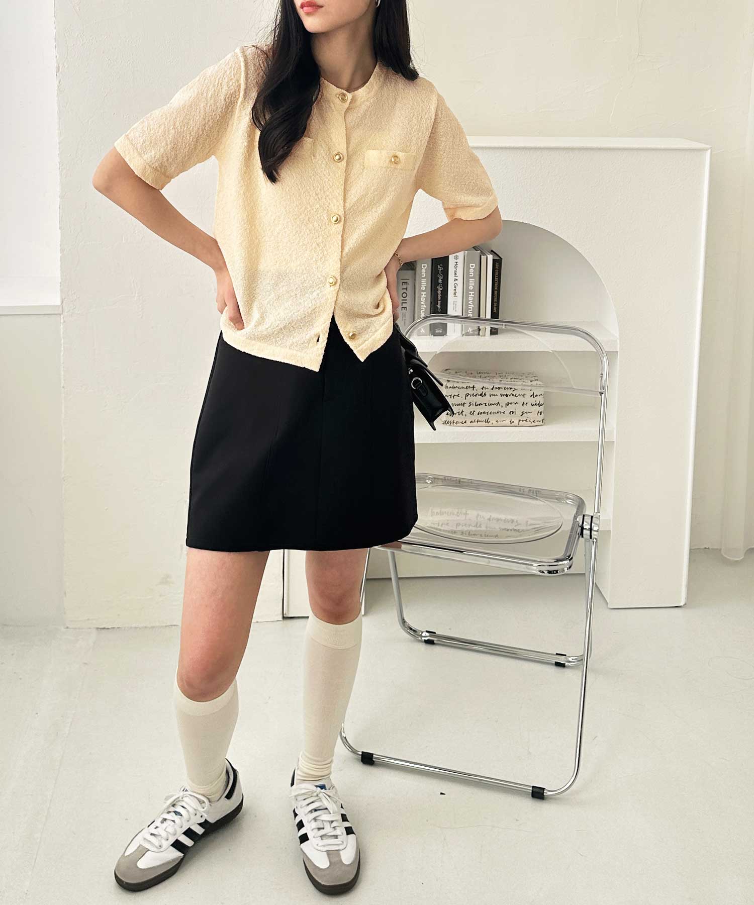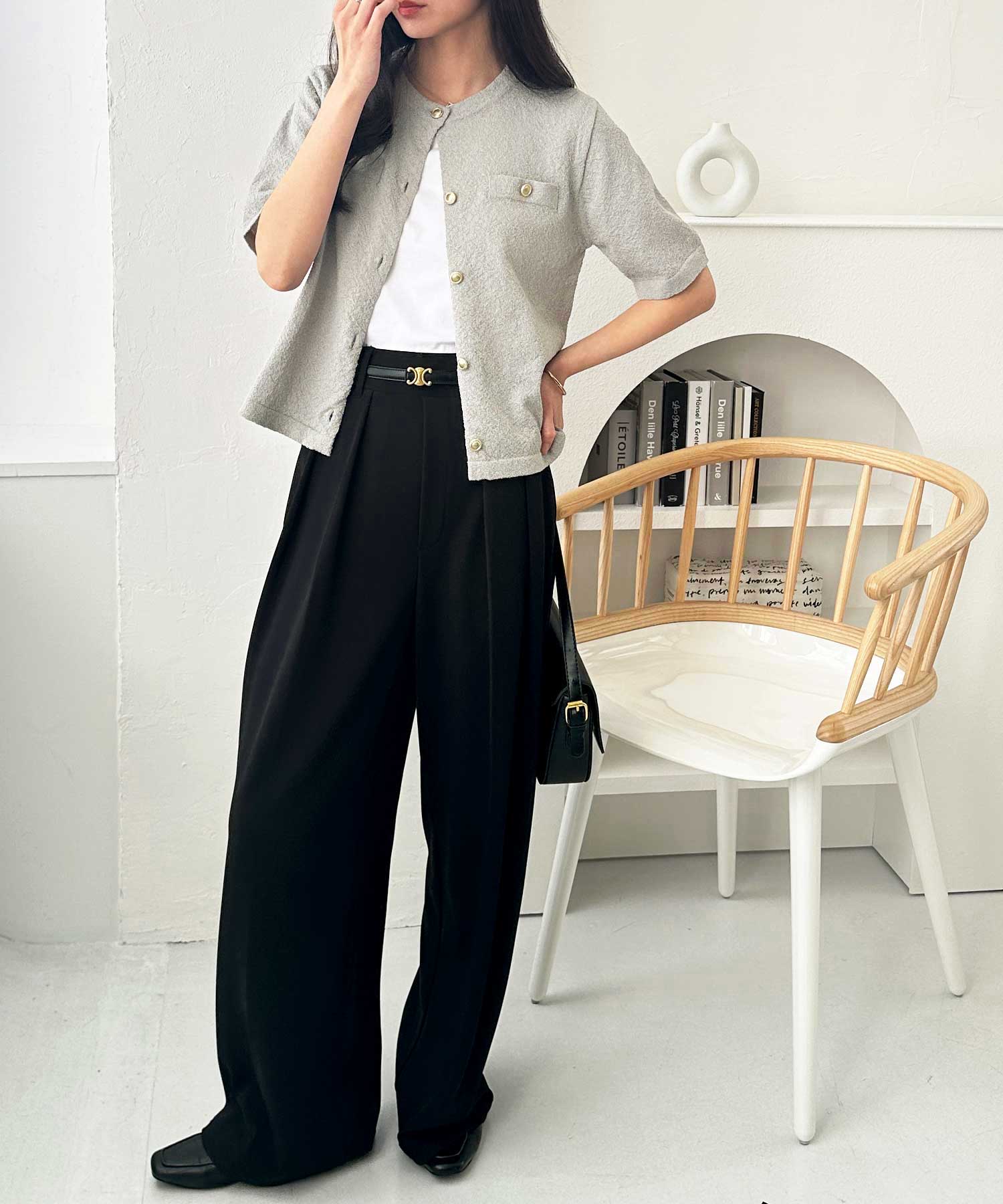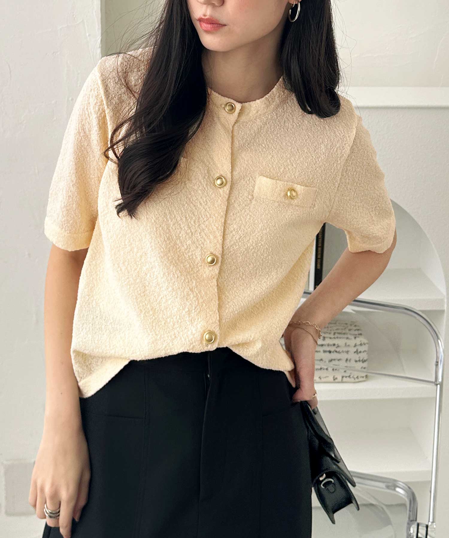 ボタンを閉めてトップスとしても、開けて羽織りとしても使える優秀トップスです。