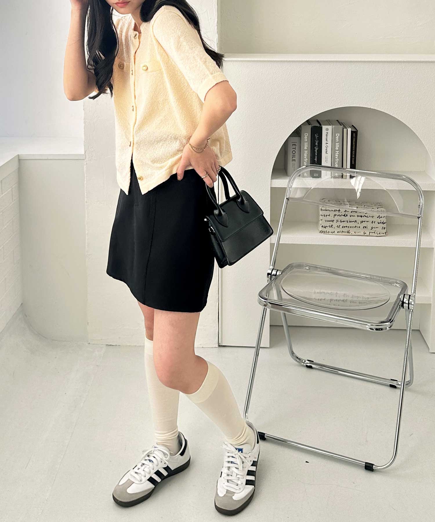 ボリュームのあるデニムやスラックス、フレアスカートと合わせたスタイリングがオススメです。