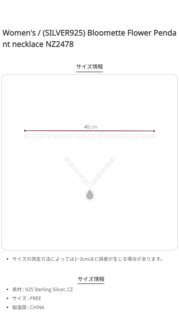 (シルバー925) ブルーメット フラワー ペンダント ネックレス NZ2478