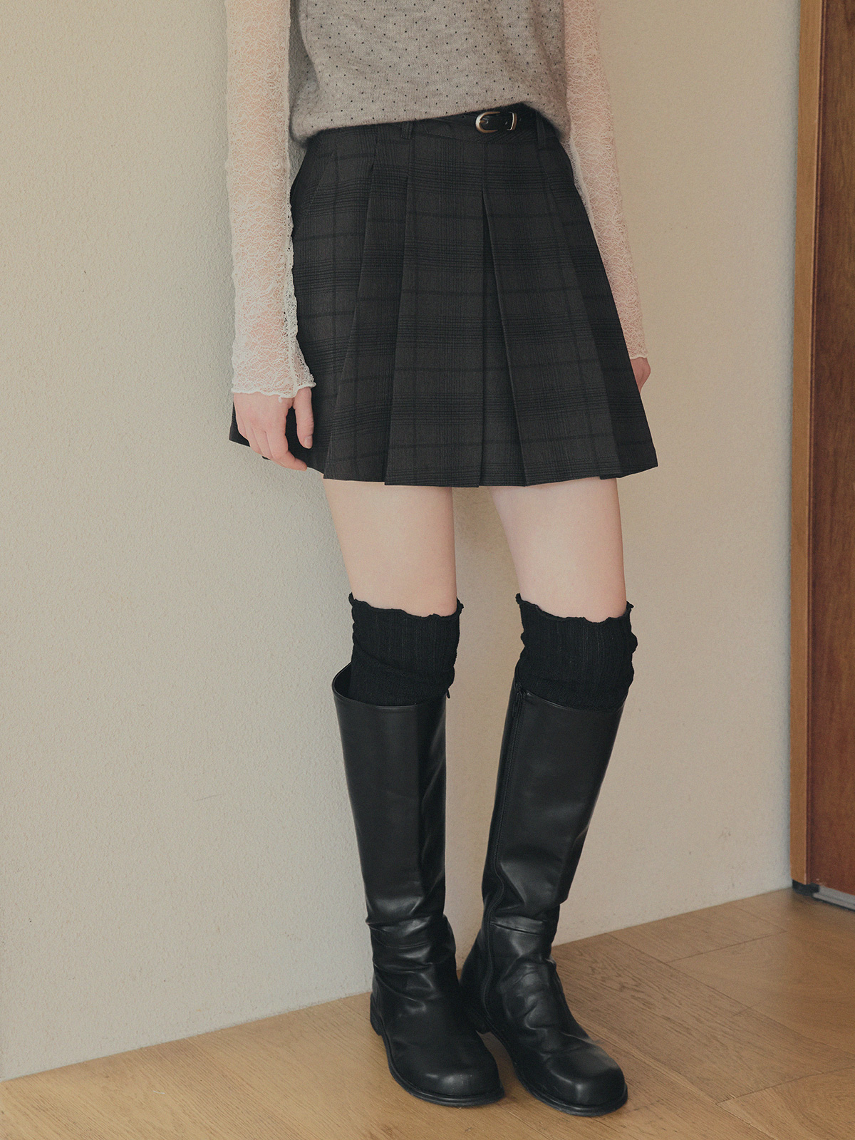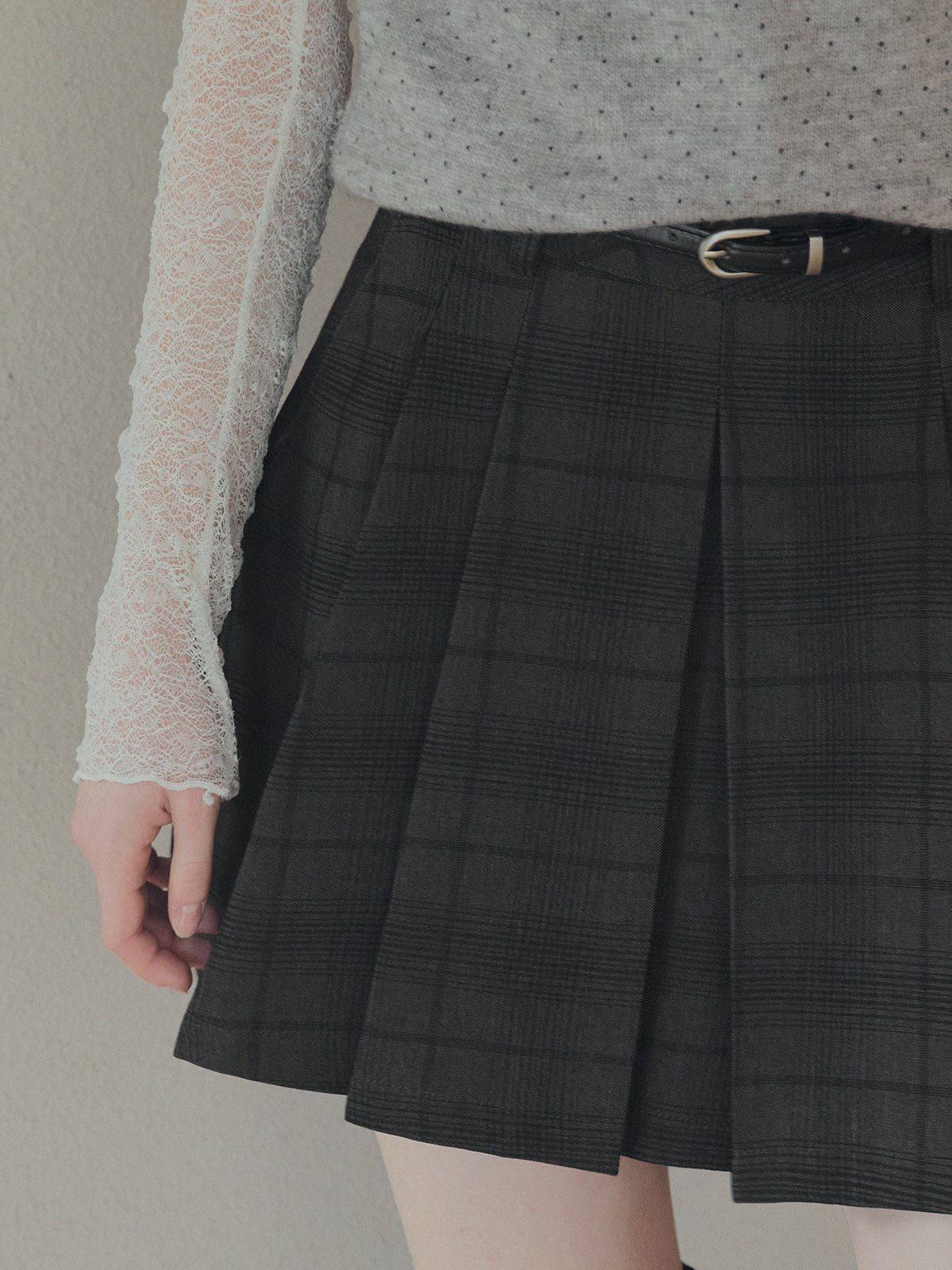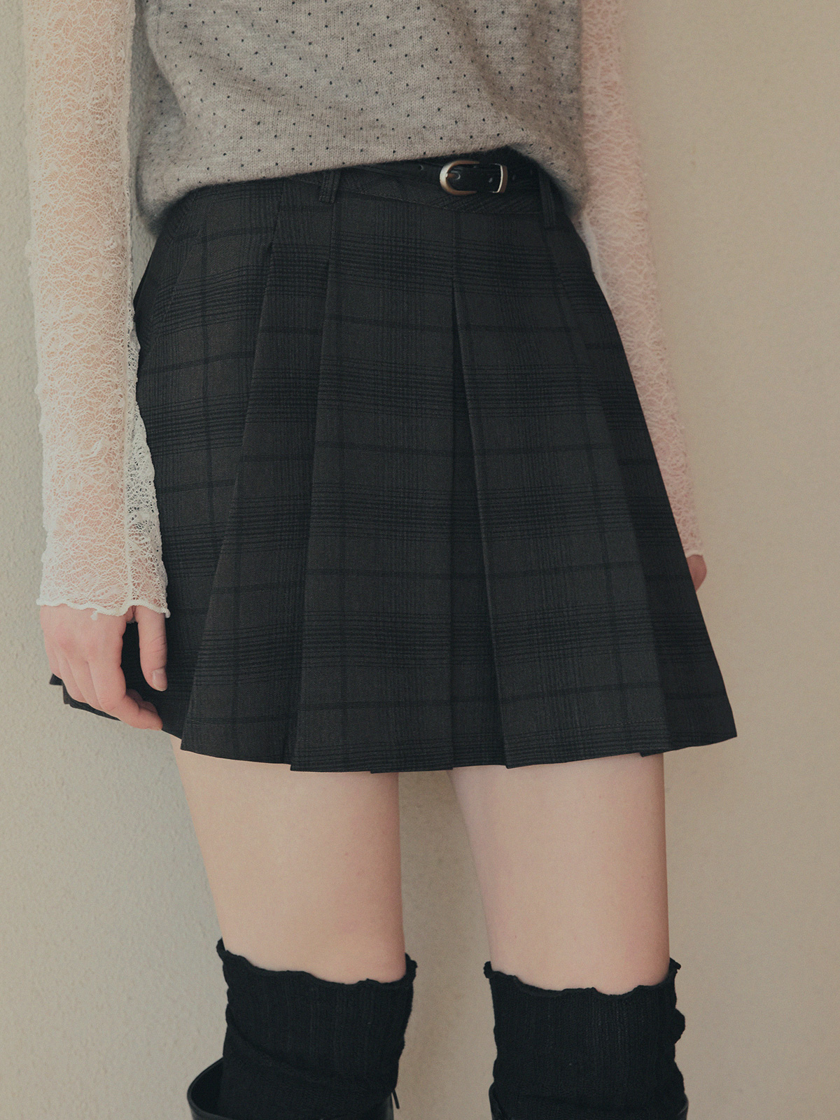 Roben Check Pleated Mini Skirt (with Belt Set)