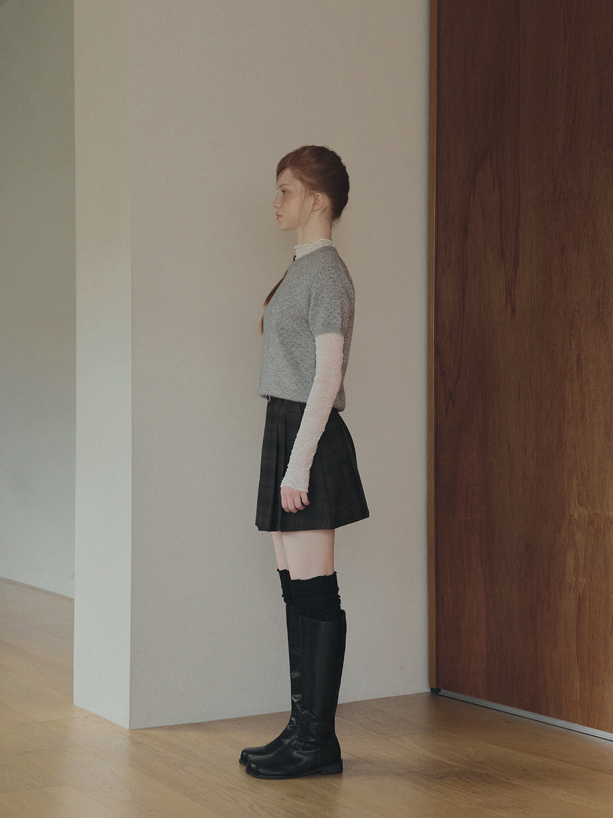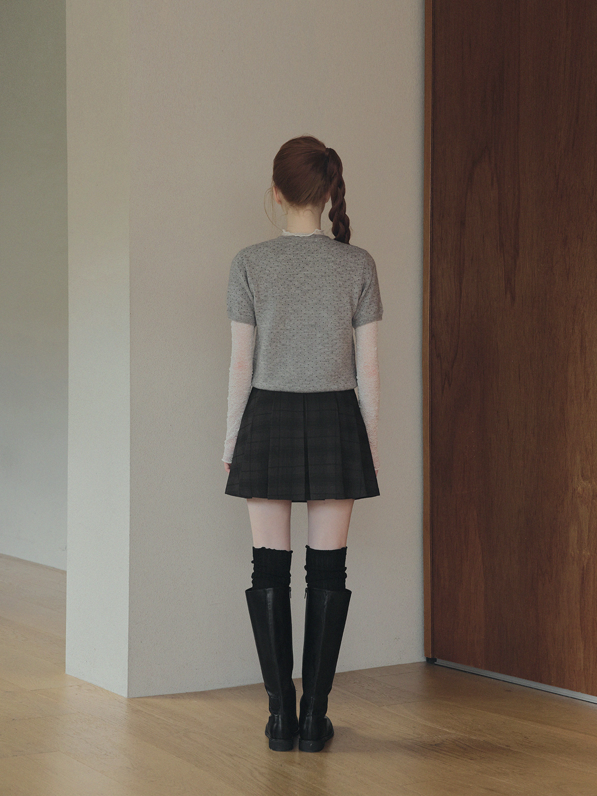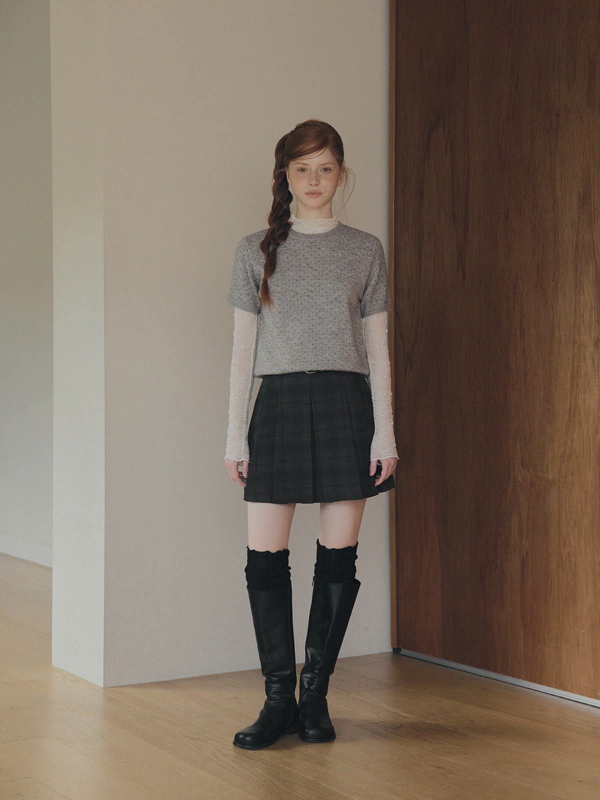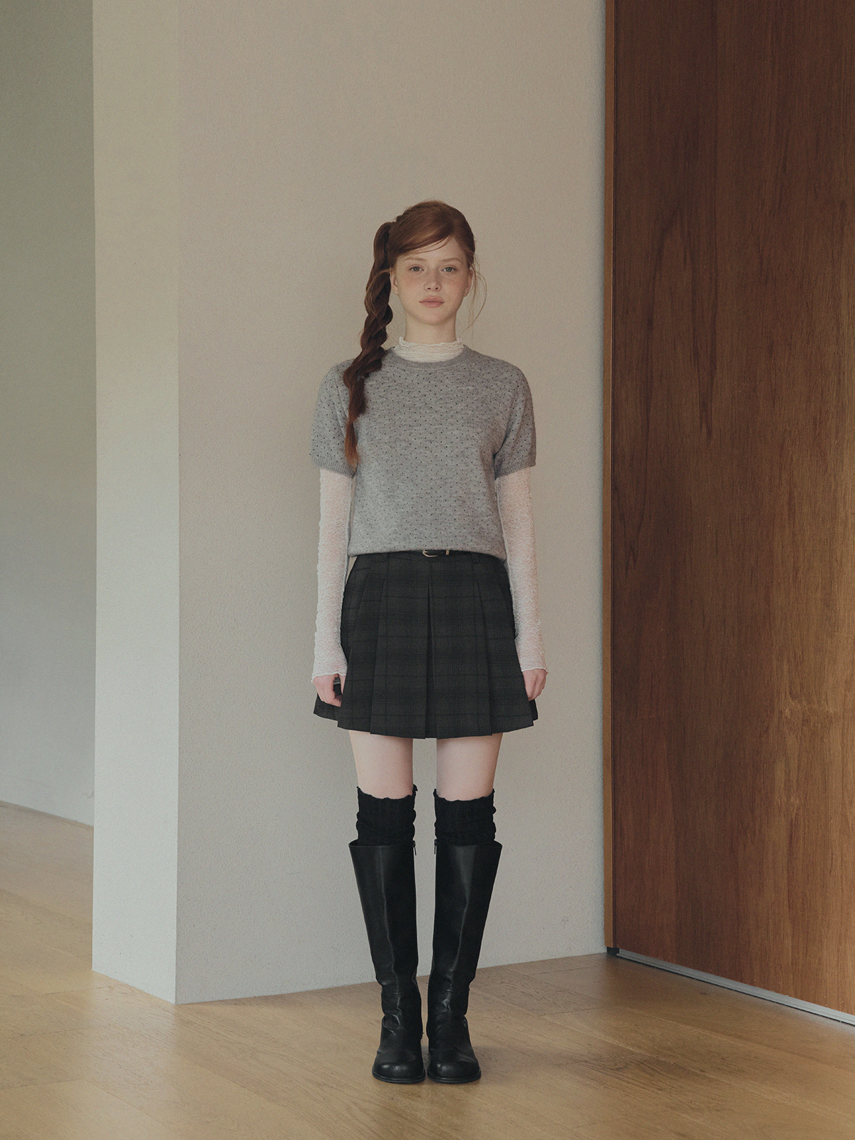 Roben Check Pleated Mini Skirt (with Belt Set)