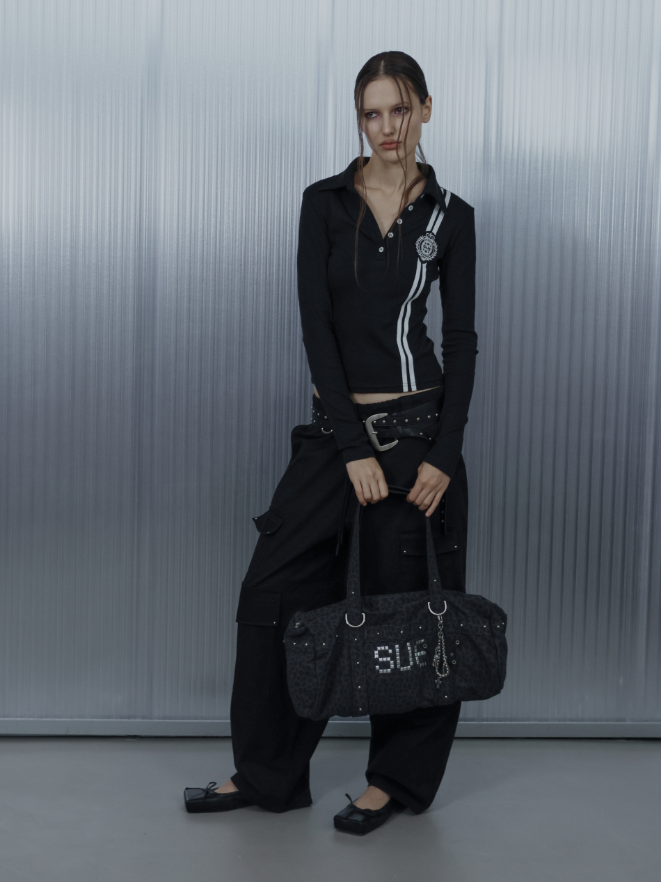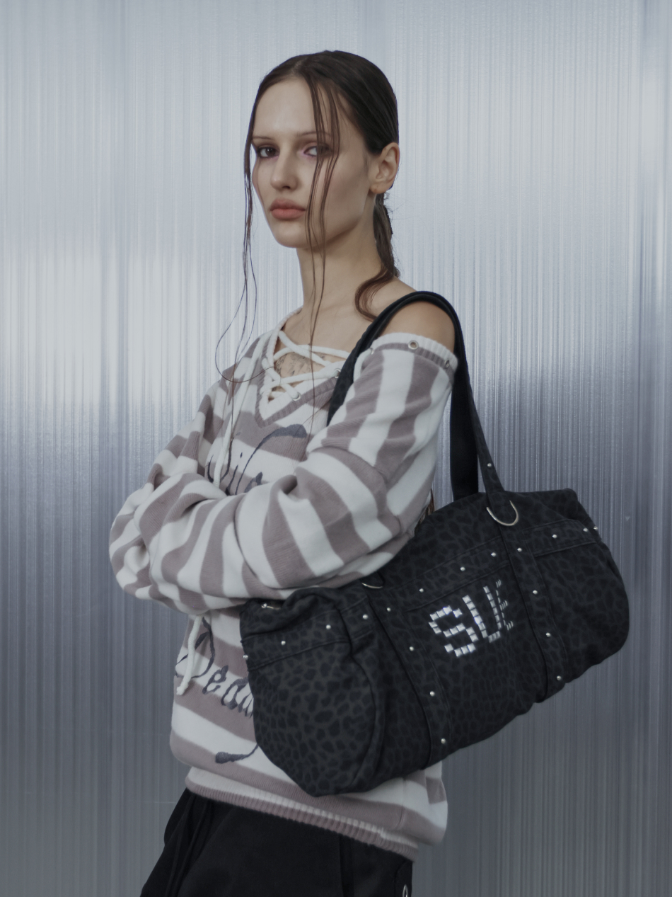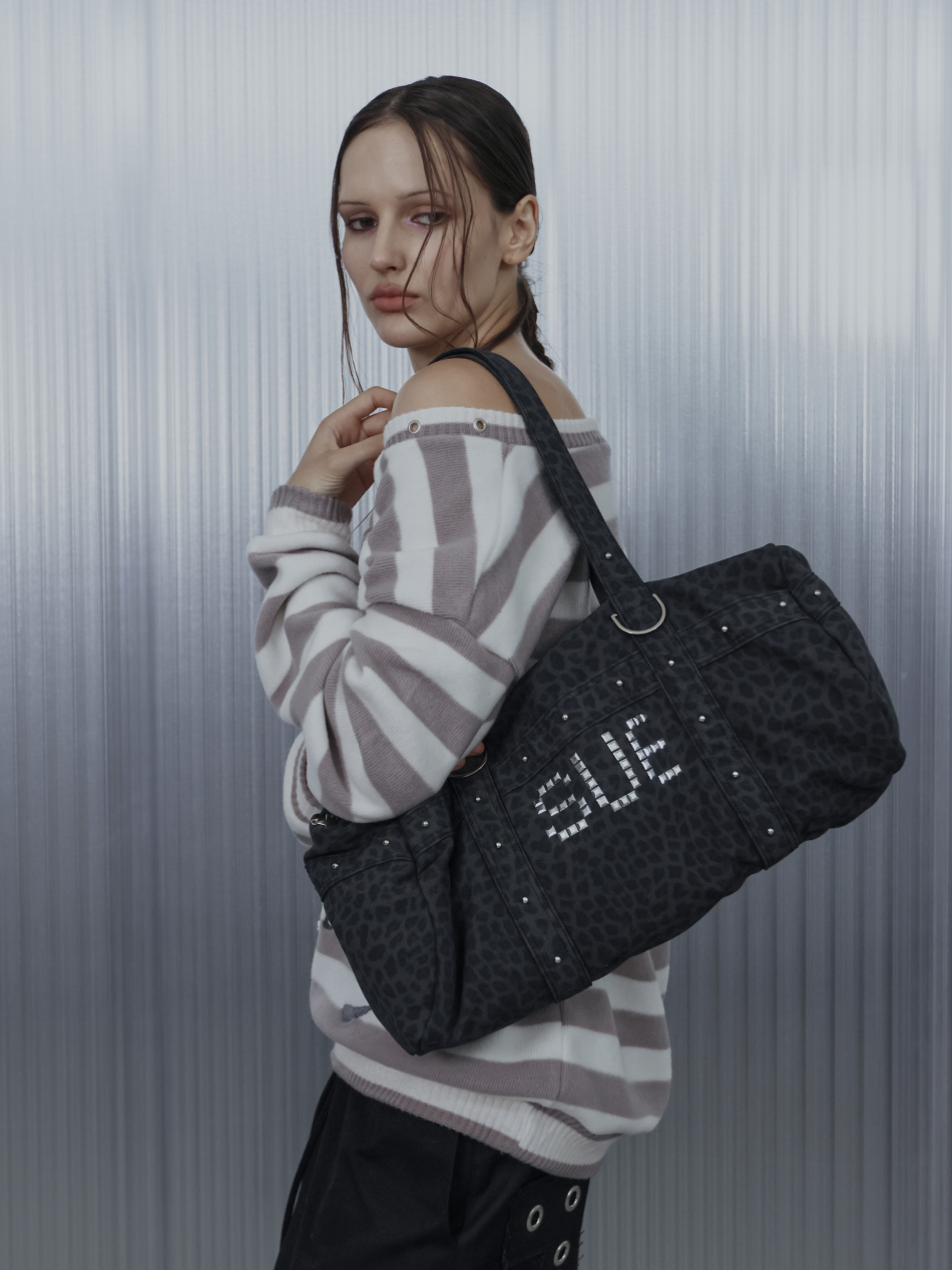 LEO STUDDED DUFFEL BAG / CHARCOAL