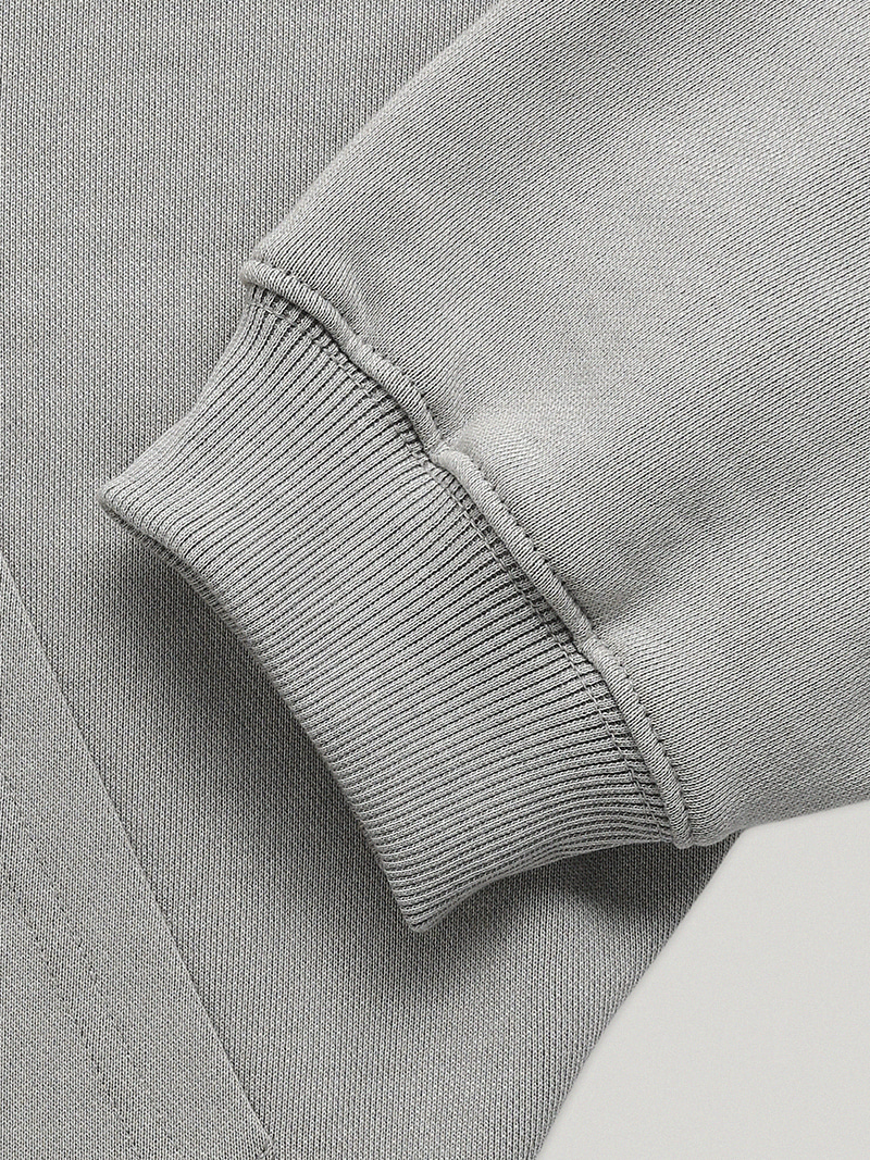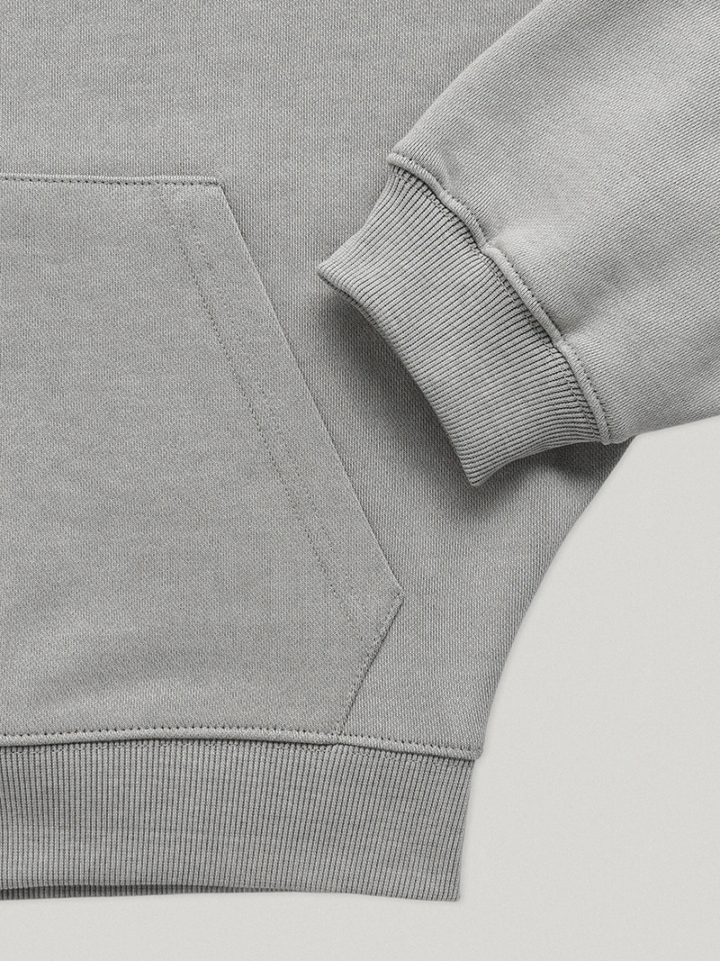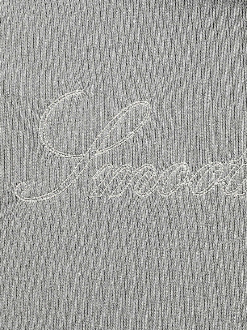 胸元(またはポイント)にはSmoothmoodイタリックロゴのスティッチ刺繍を配し、ディテールまで丁寧に仕上げました。ソフトで淡く、彩度を抑えたロウグレー。