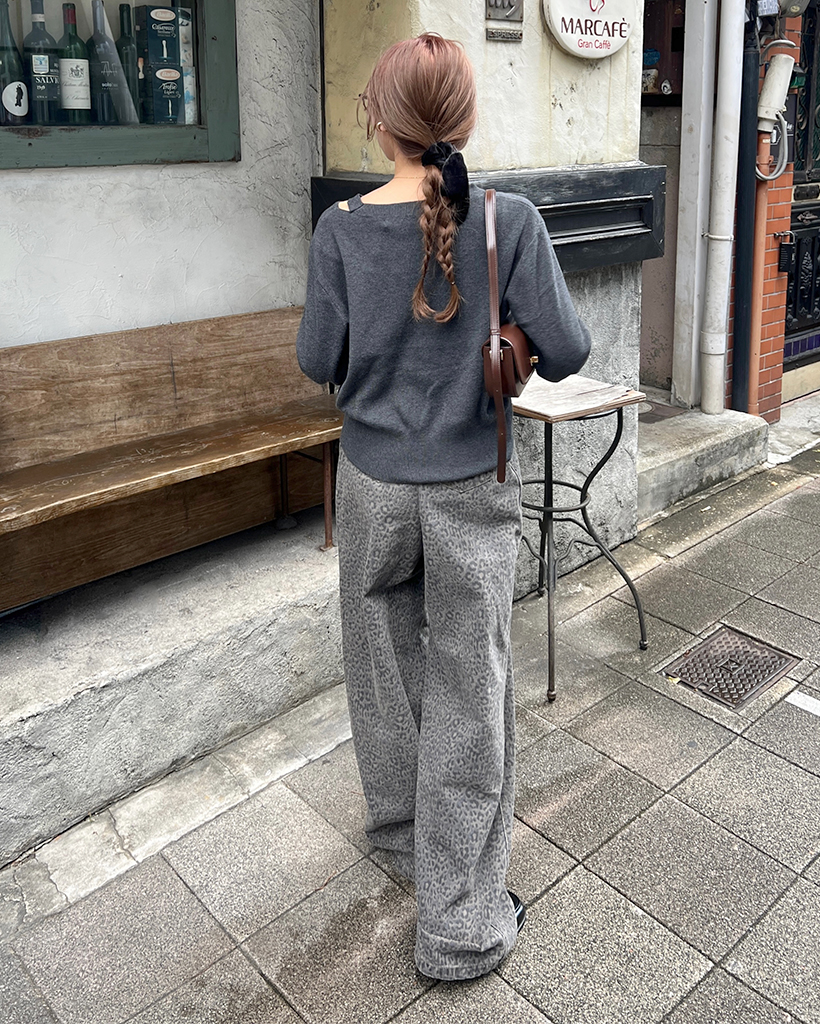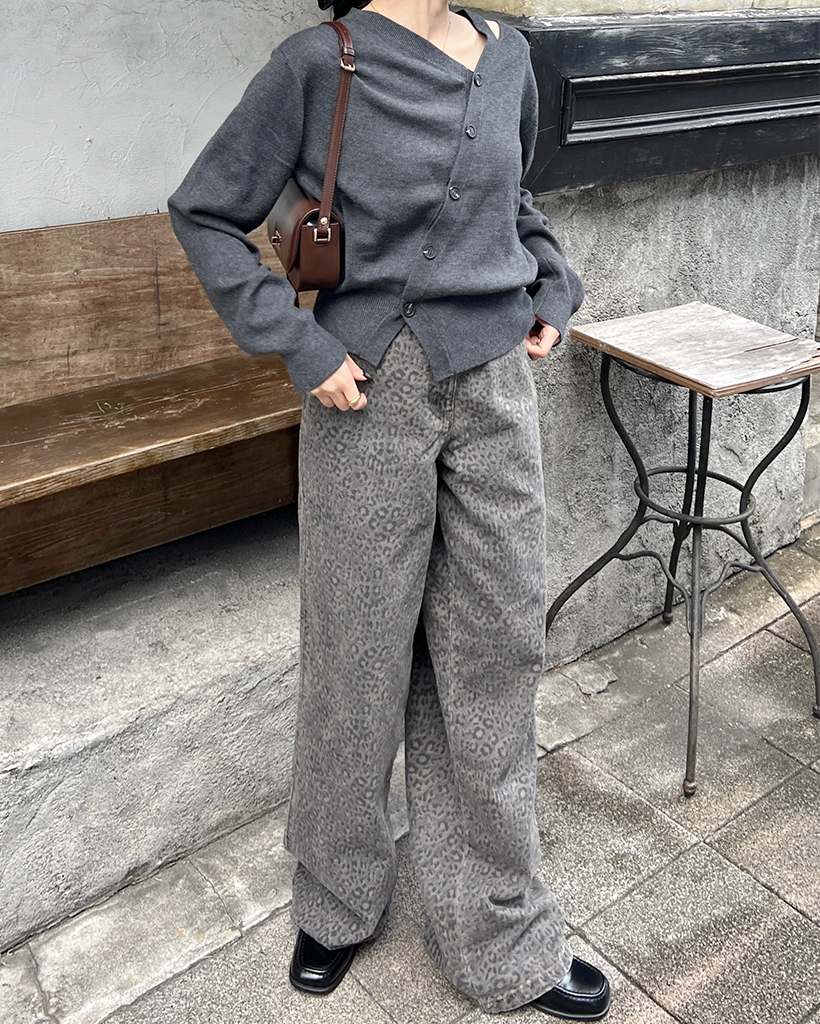 [Ella X Atelier Nain] (PT-5701)LEOPARD WIDE LEG PANTS