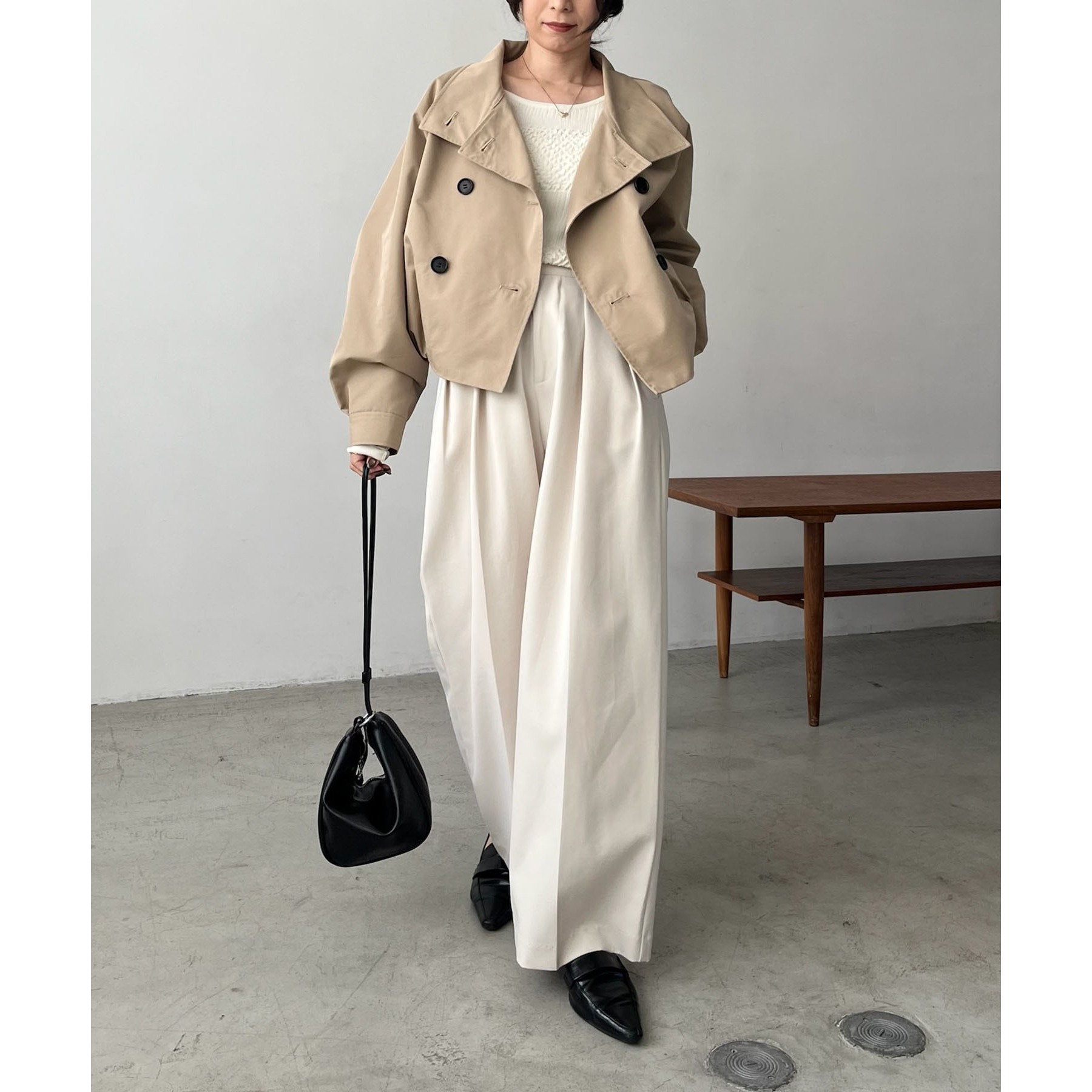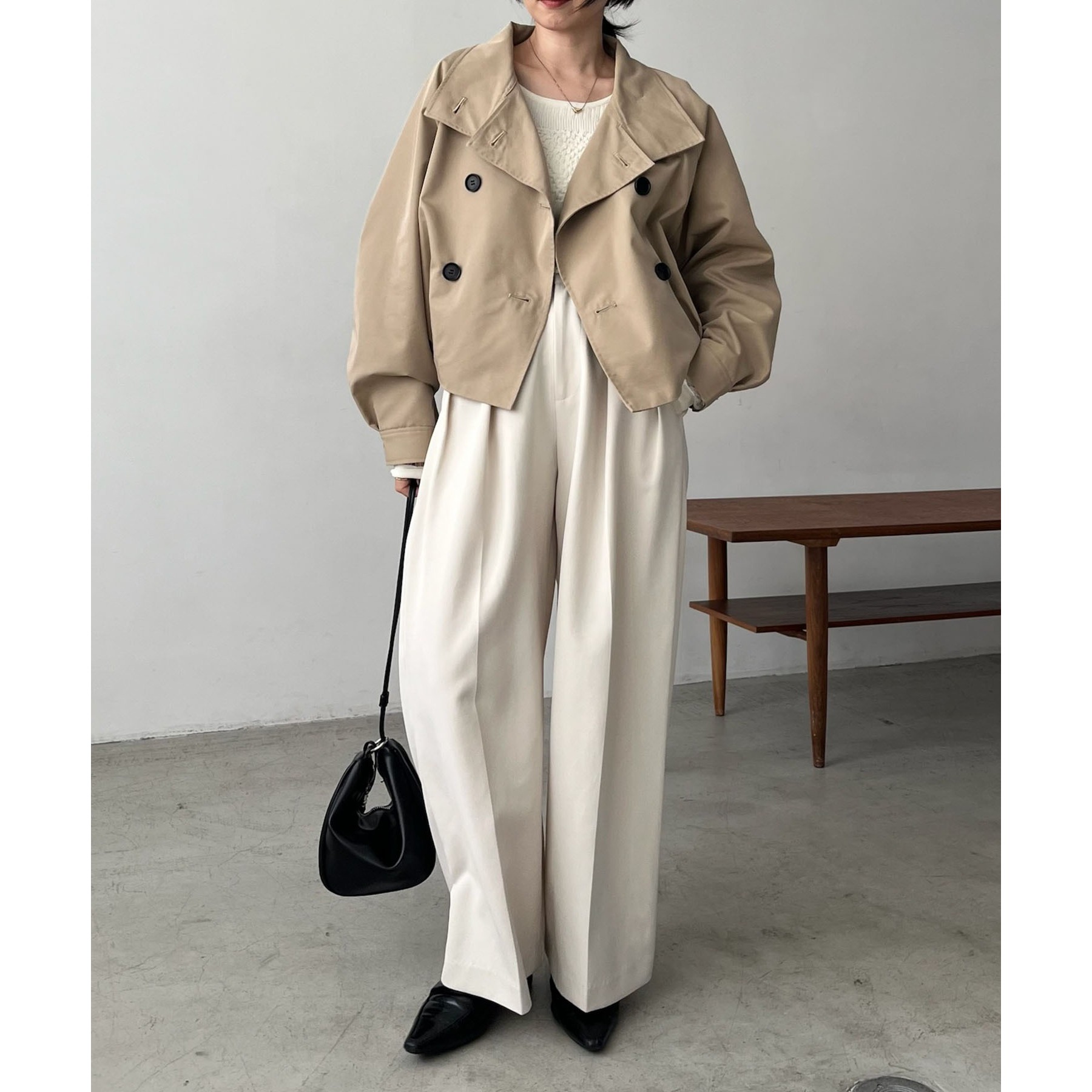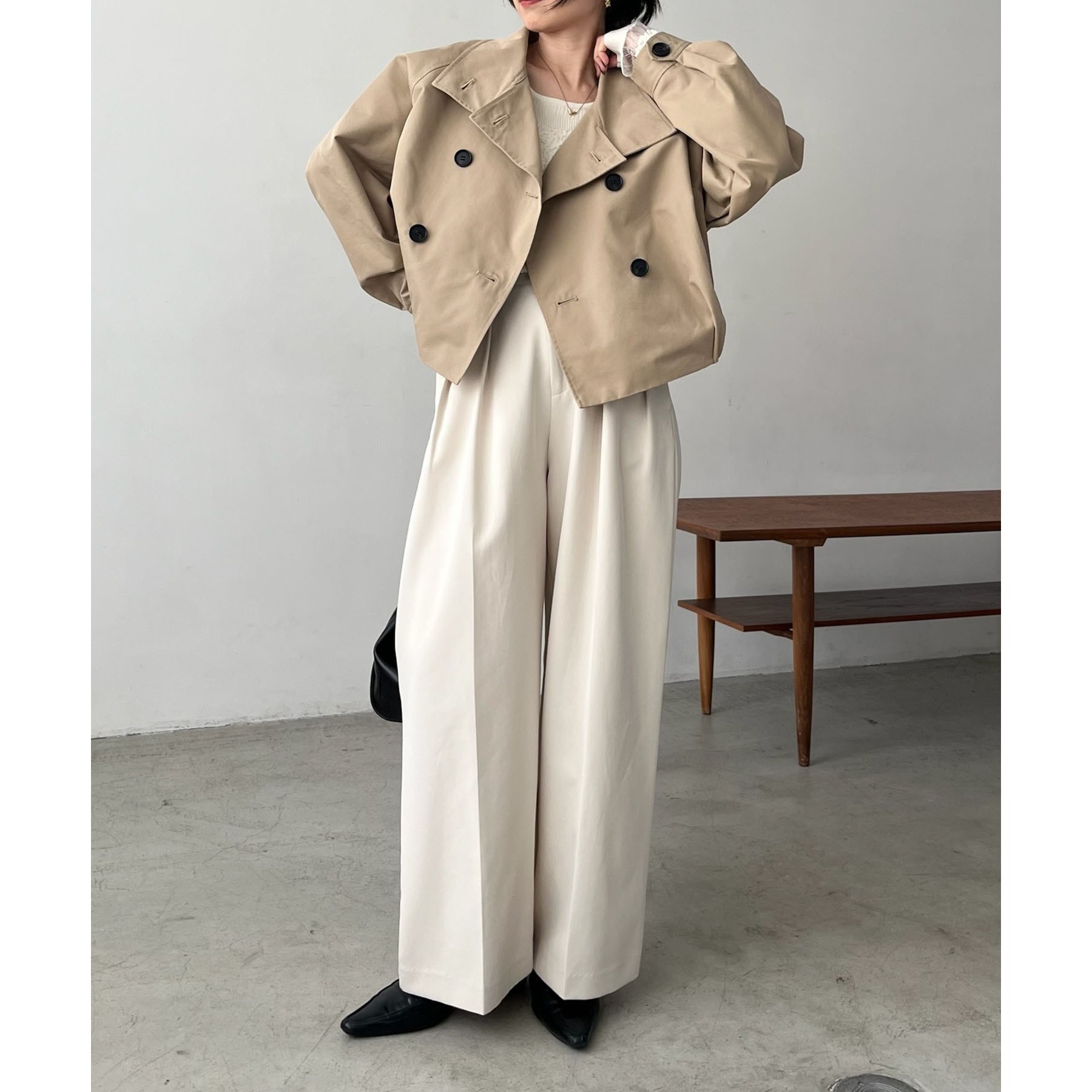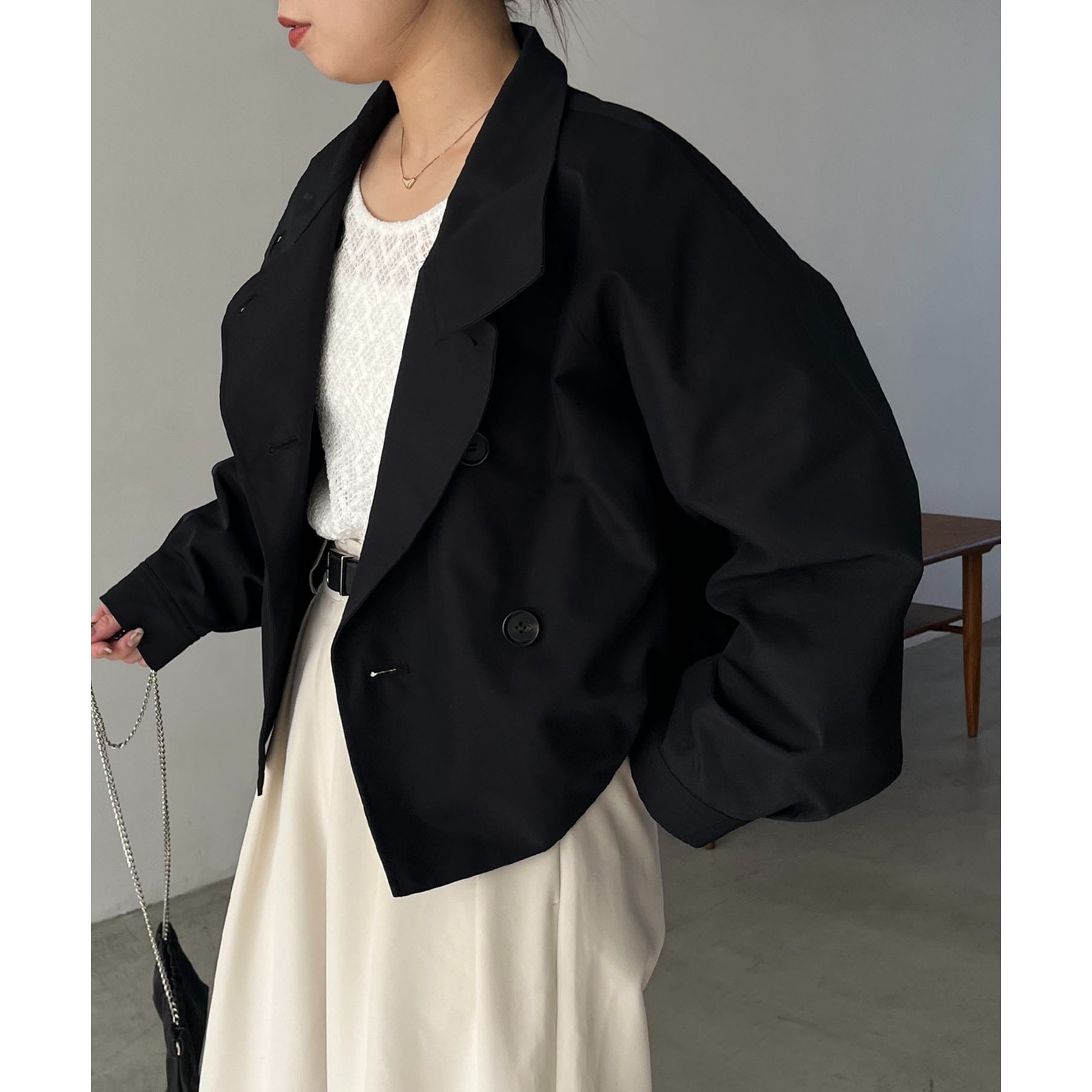 ・短丈なのでロングスカートやワイドパンツにもバランスよく着られる1枚