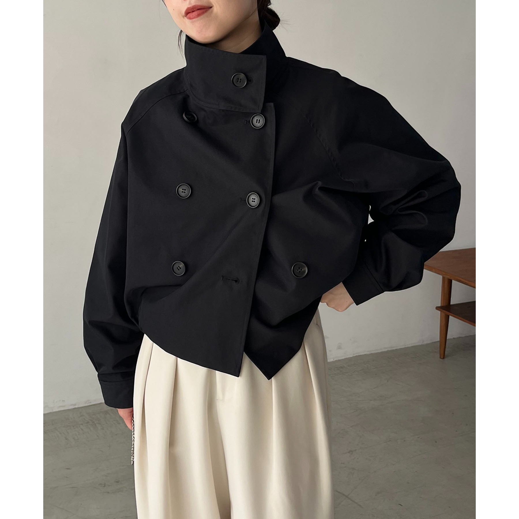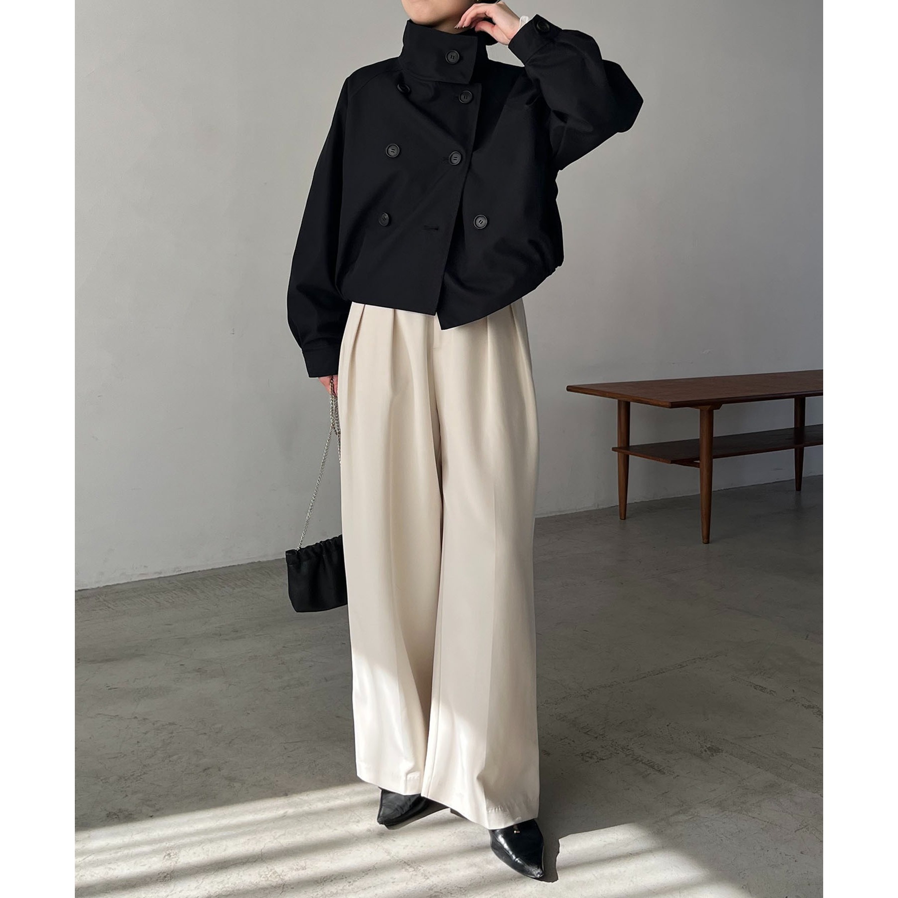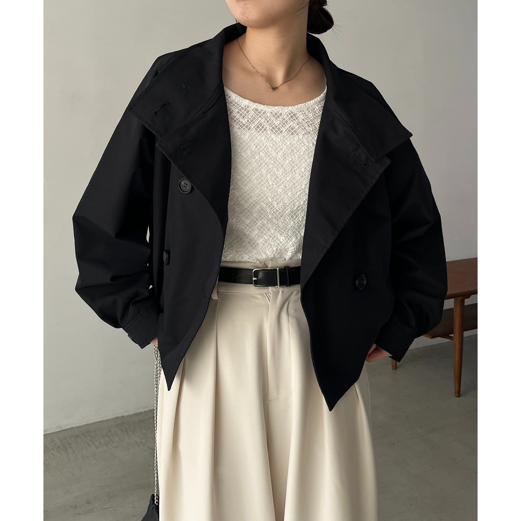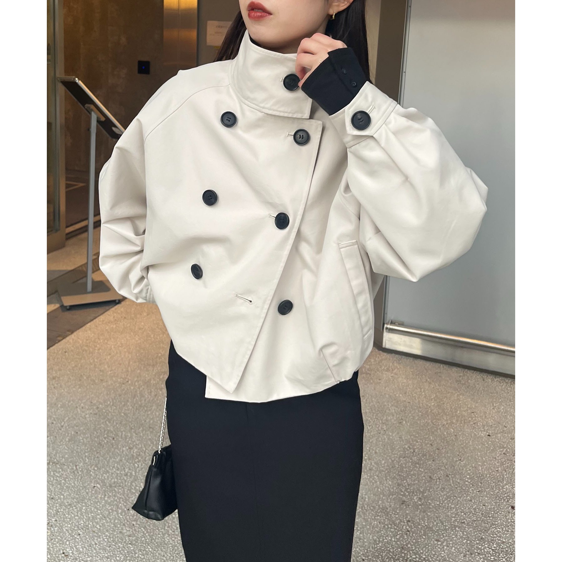 ・短丈なのでロングスカートやワイドパンツにもバランスよく着られる1枚