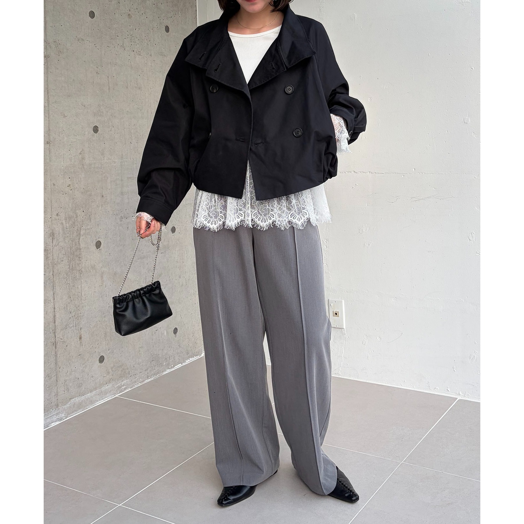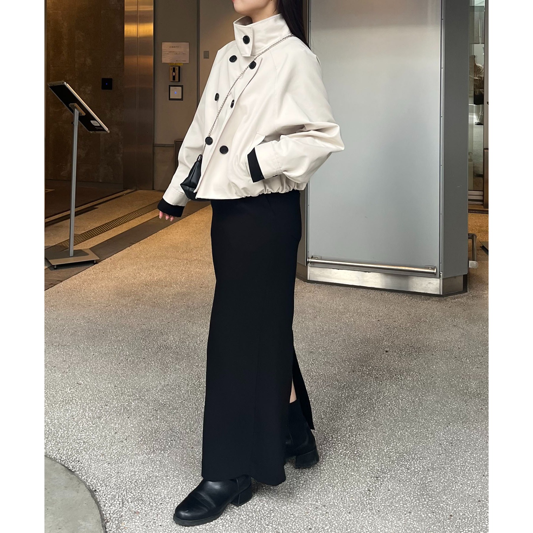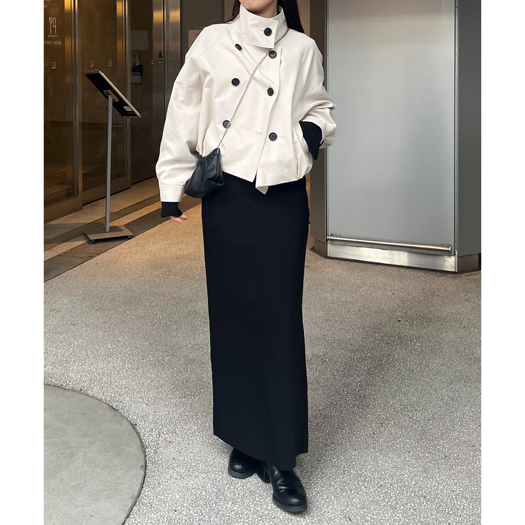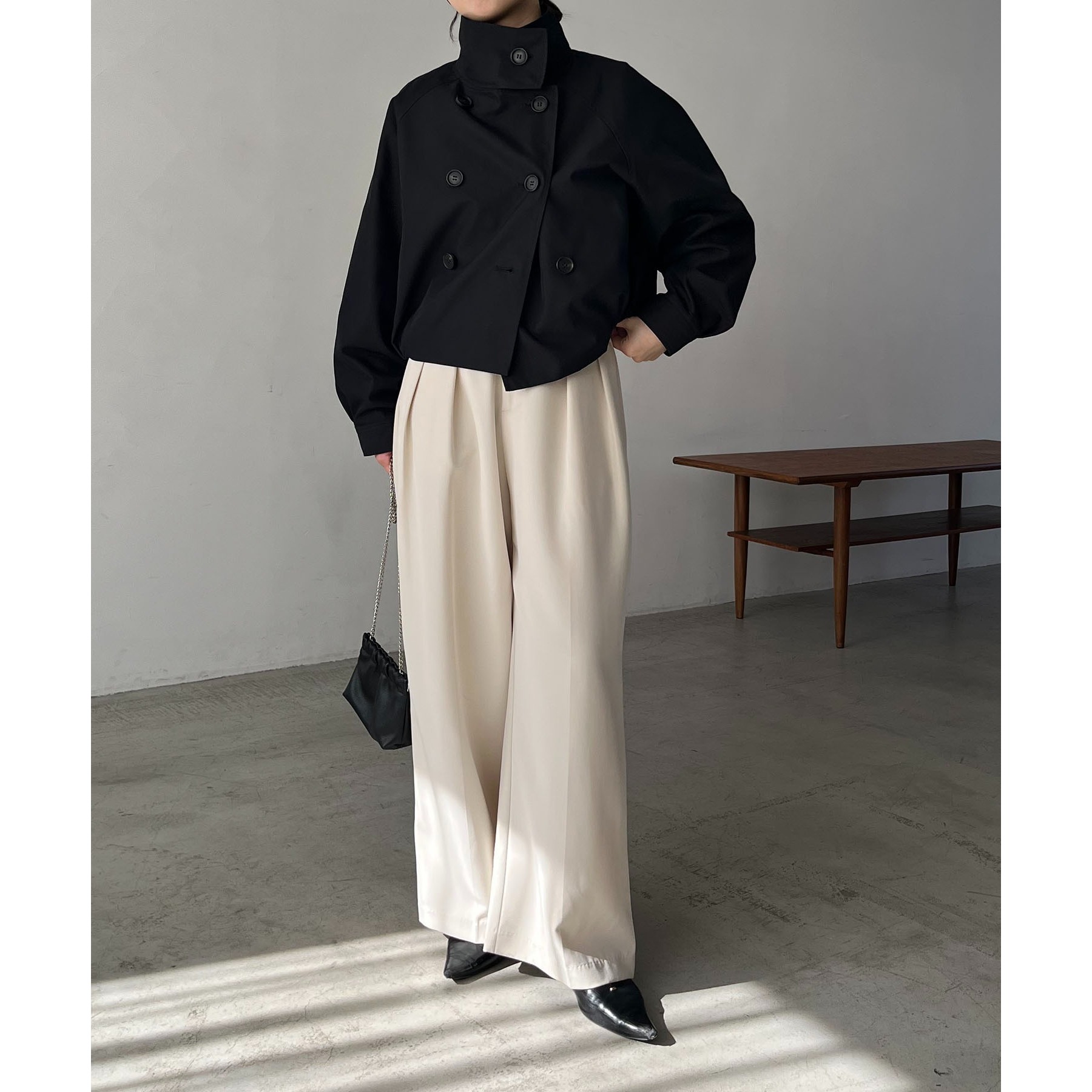 ・短丈なのでロングスカートやワイドパンツにもバランスよく着られる1枚