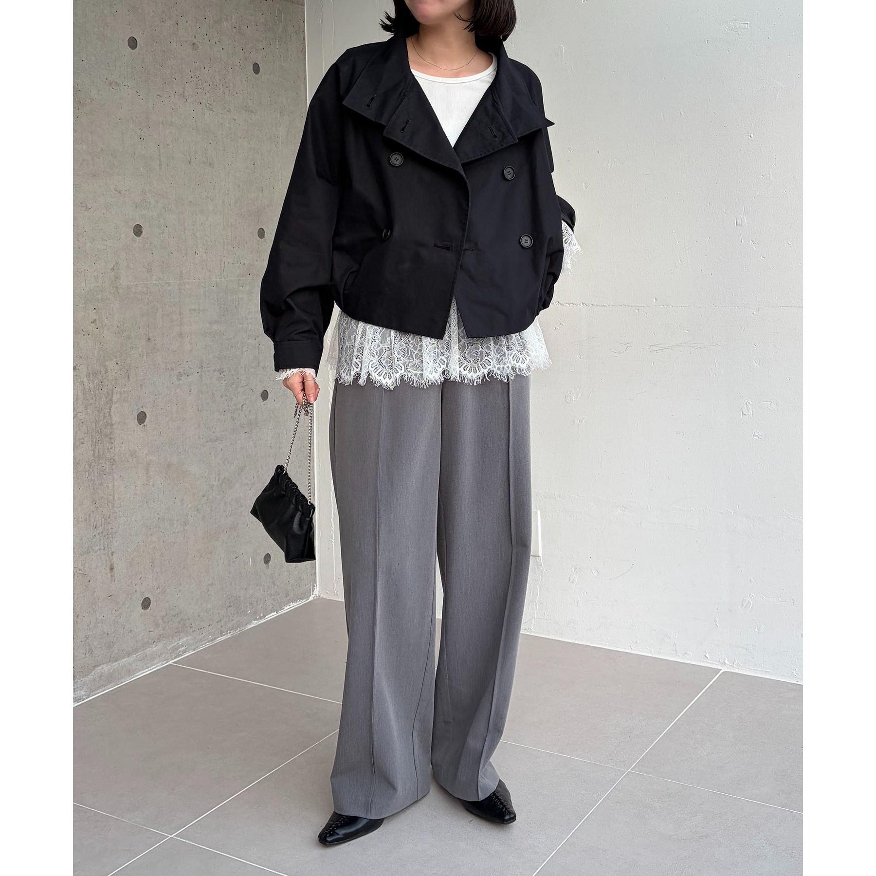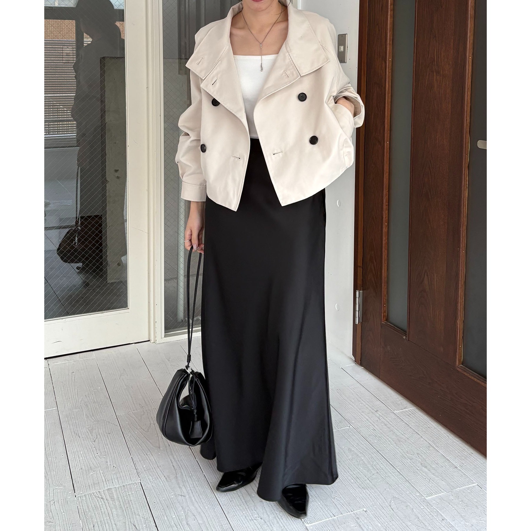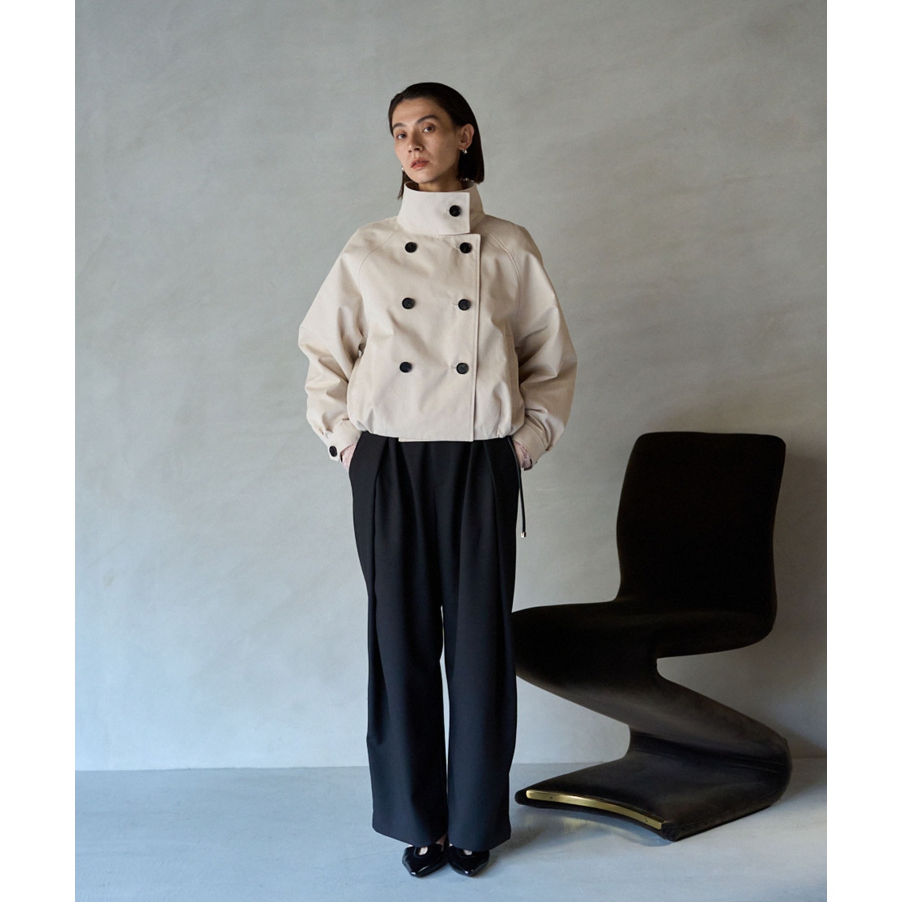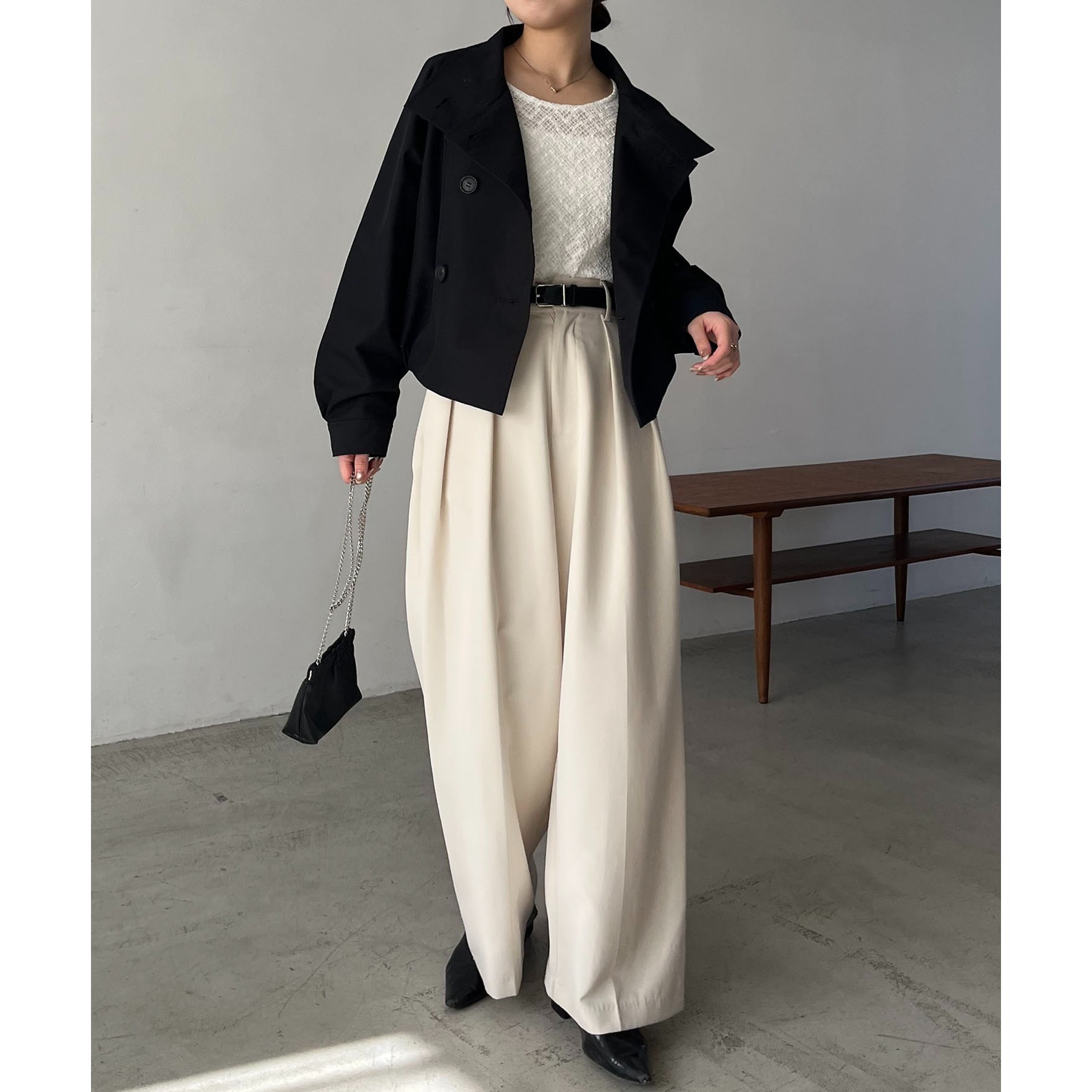・短丈なのでロングスカートやワイドパンツにもバランスよく着られる1枚
