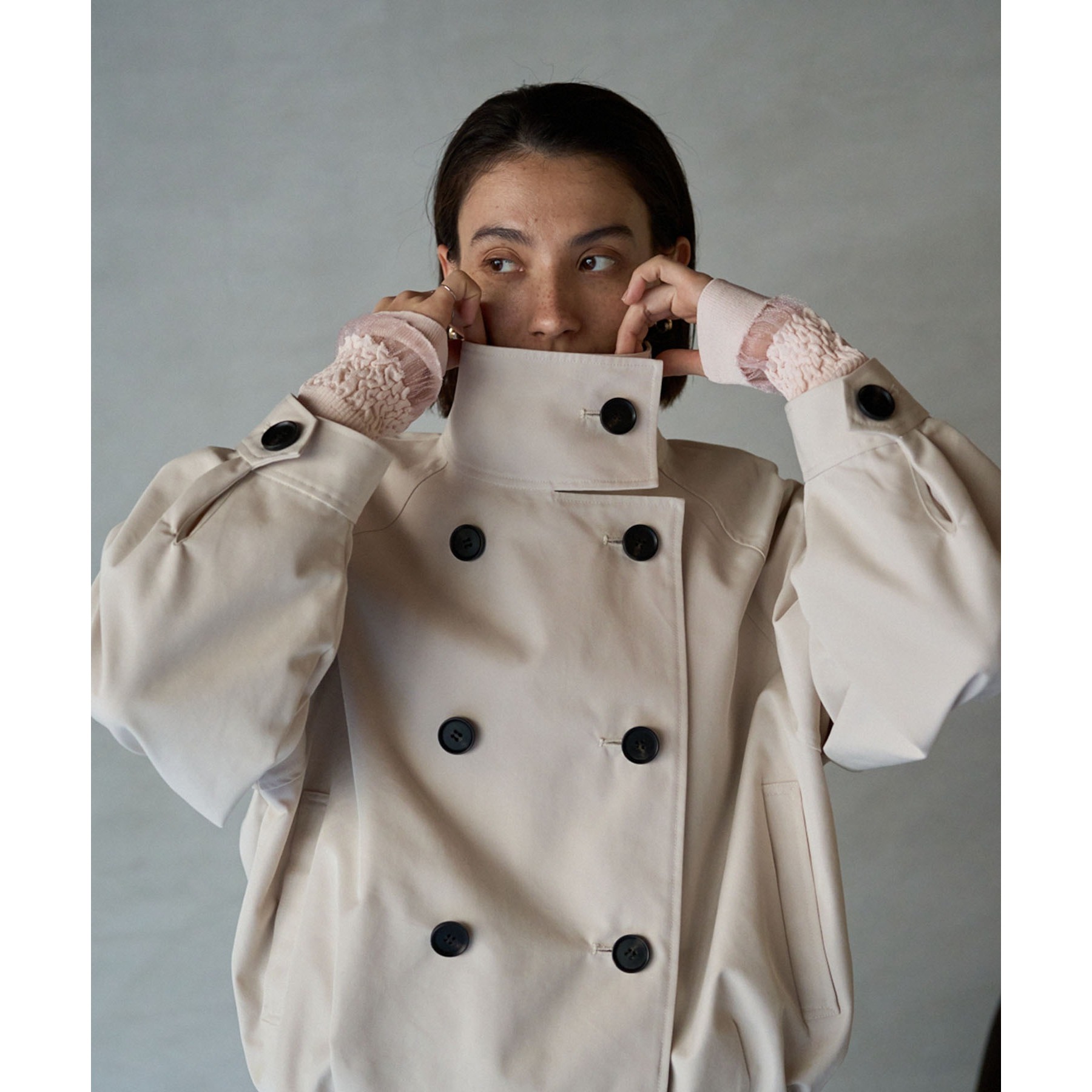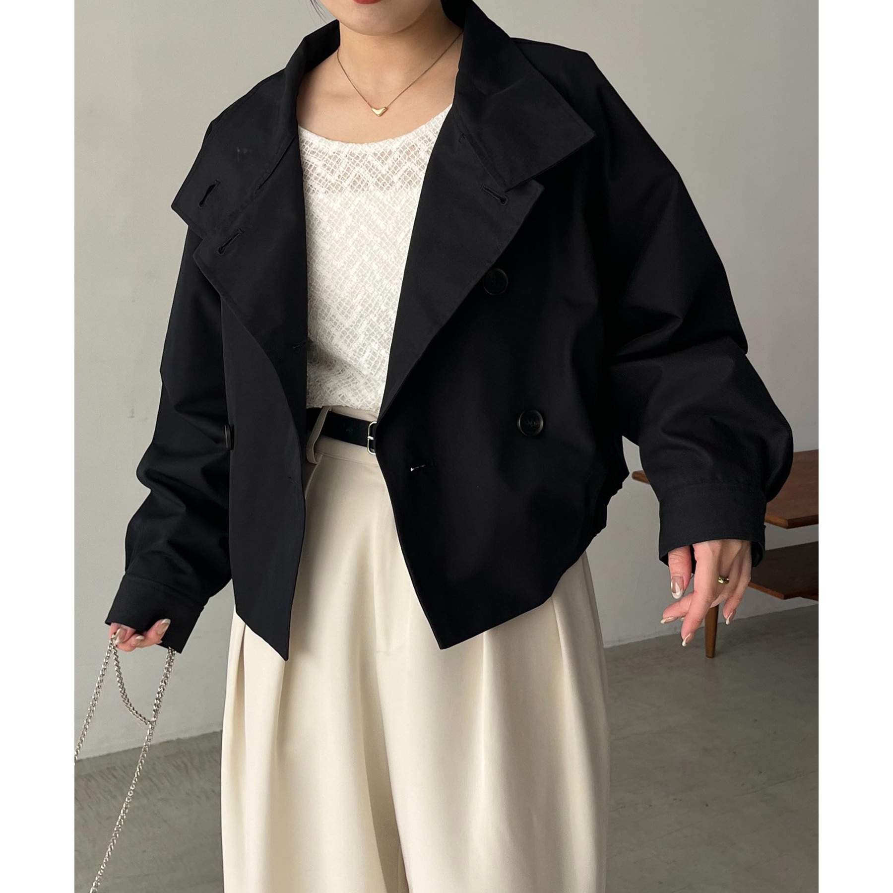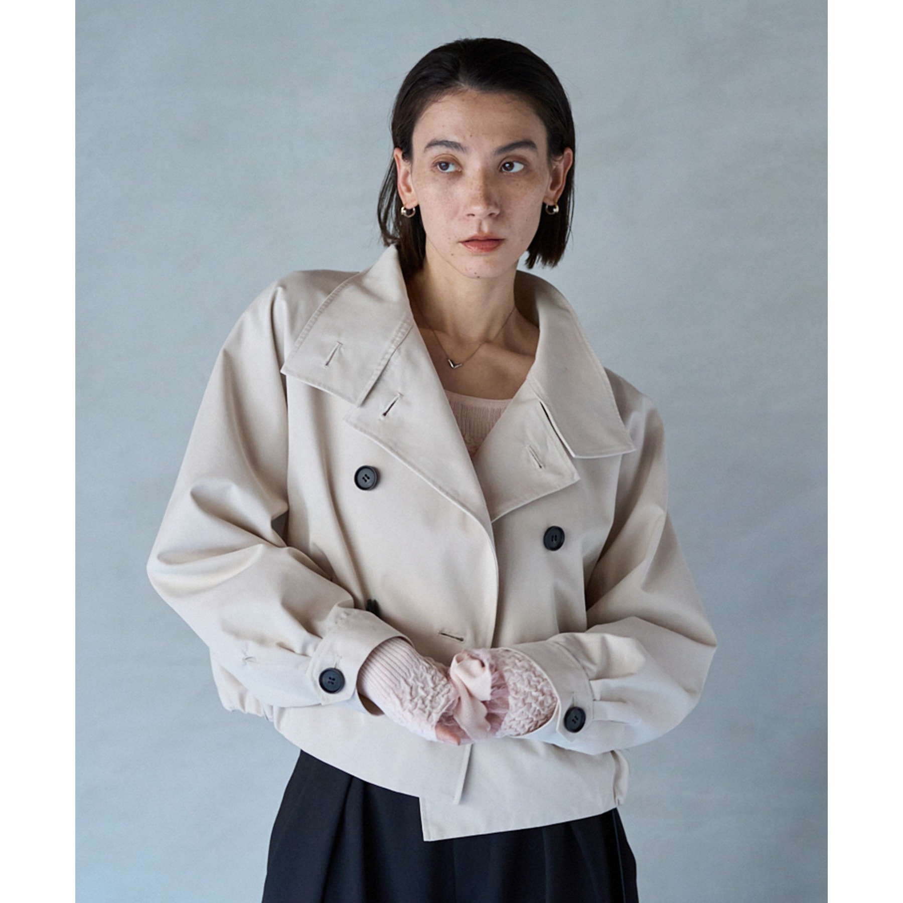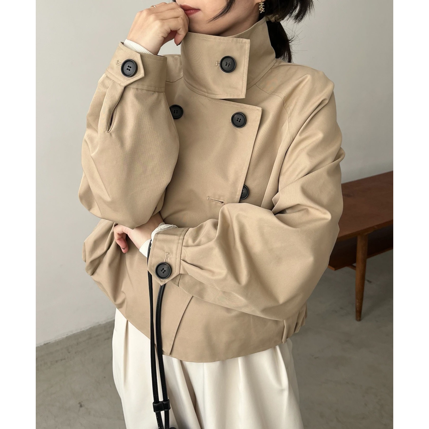 ショート丈がトレンドライクなトレンチコート